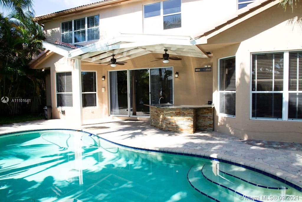 Fall in love with this highly sought after "Emily" model home in Pelican Sound.Beyond your double door entry you will find soaring 20ft ceilings with large windows that allow plenty of natural lighting. The ground level offers a large formal living/dining room that connects to a large family room/kitchen. The master suite is located in the ground level and has a spa like bathroom that has been beautifully updated. The second level boasts a huge loft that can be used as a 2nd family room or play area. Three additional bedrooms upstairs with updated bathrooms. The patio has stunning with views of your pool, lake and lush landscaping. Covered terrace with builtin bar and grilling area. 24 Hr. Guard gated community. Includes high-speed internet and cable. 3 Car Gar-Excellent Schools!