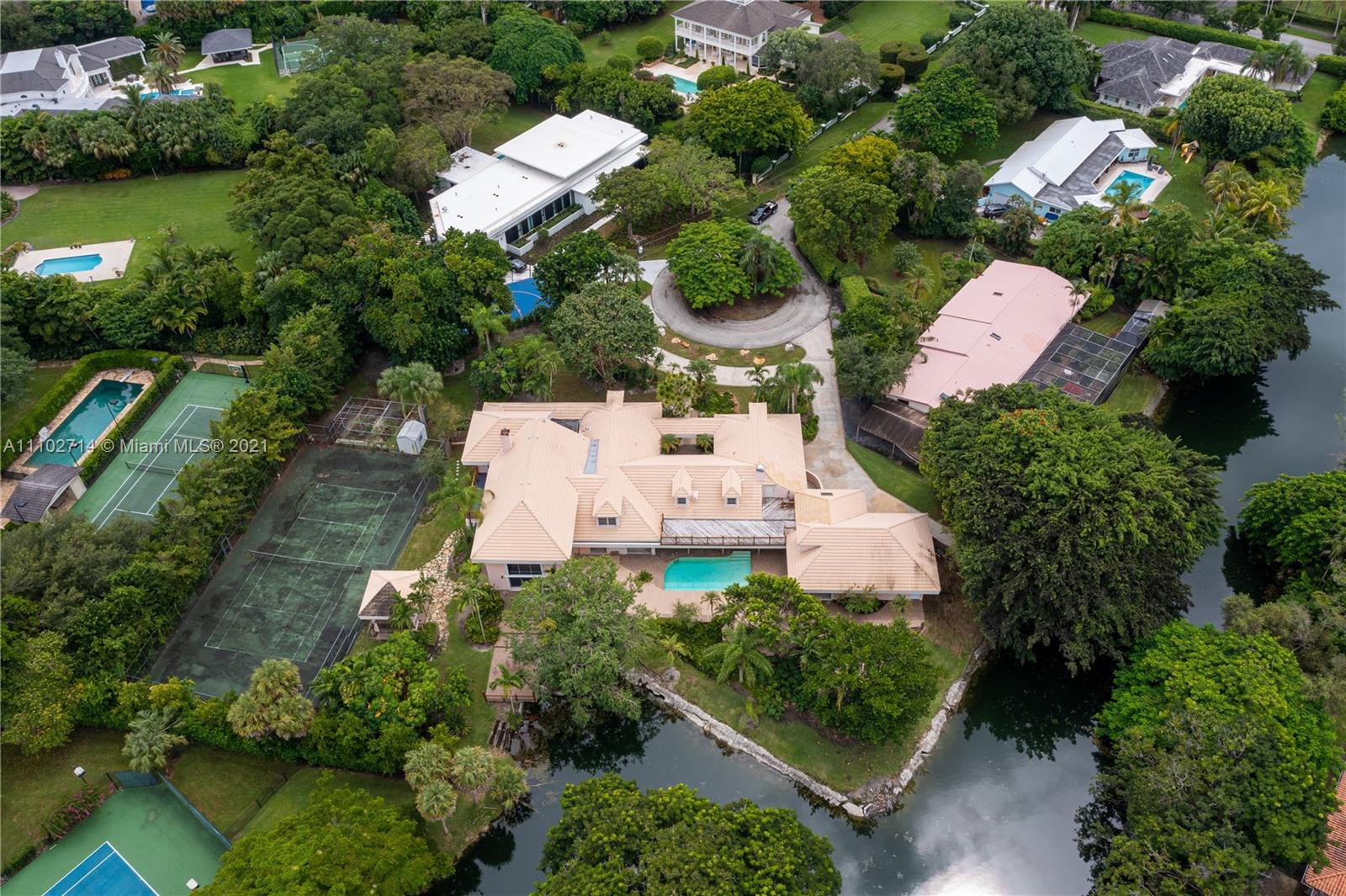 Prime Pinecrest Rare Find! This 6 bedroom, 5 ½ bathroom sprawling 11,231 sq.ft. under air, acre + estate abuts scenic canal at the end of a private cul-de-sac. Expansive living spaces, endless windows & tropical waterfront views abound. Spacious downstairs owner suite with atrium, 4 bedrooms downstairs & 2 up with loft & 2,000+ sq ft. finished attic in main house. Separate two-story pool house/entertainment room w/built-in BBQ overlooks Koi pond, Jacuzzi, & lushly landscaped yard. North/south tennis court with approved lighting, gazebo, & 4 car garage. Meticulously maintained by original owners, this is the opportunity you’ve been waiting for. Add your personal touches to make this estate your dream staycation, entertainment paradise with room for all your friends & family to call HOME!