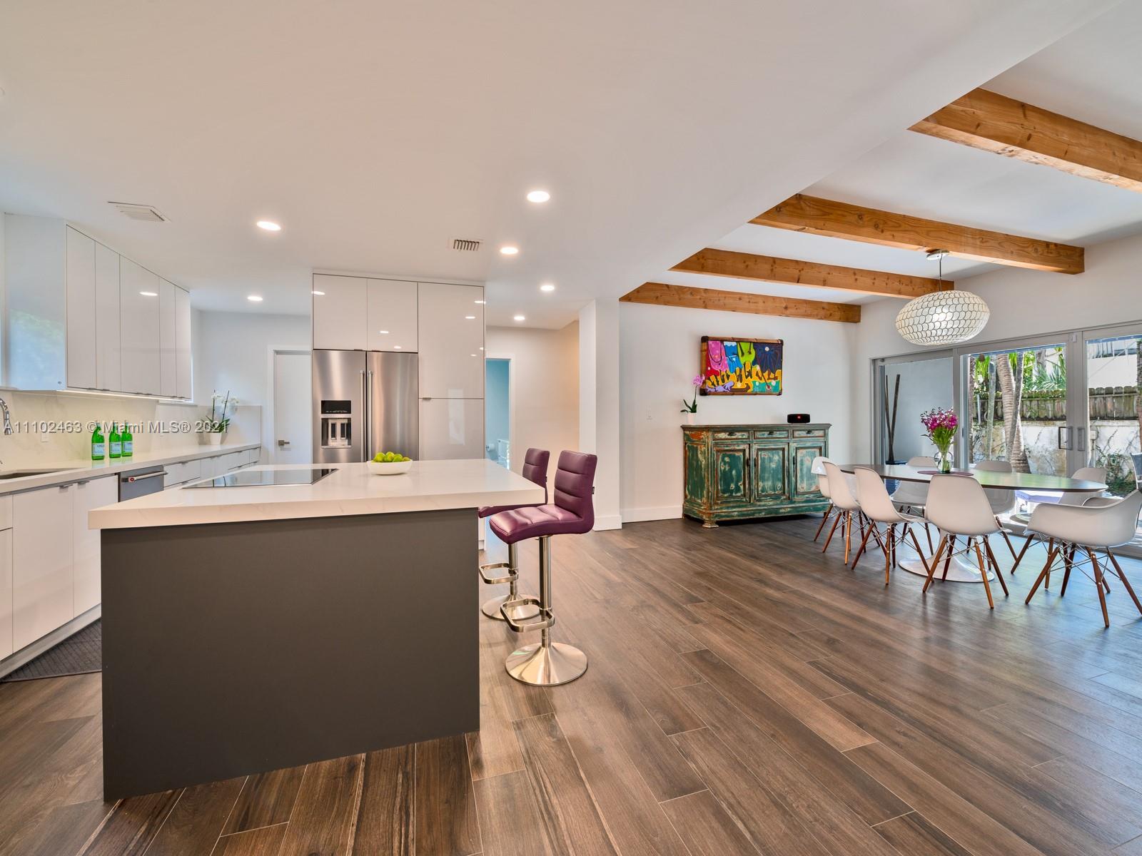 Welcome home to nearly 4,000 sq foot meticulously renovated 1925 Miami Beach residence on prestigious North Bay Rd The 1st floor features voluminous entry w/Catalani and Smith light fixture Formal living room w/working original fireplace. Custom all wood kitchen cabinetry, underlighting, walk-in pantry, Jenn-Air stove, Hans Groe faucets all open to the family/dining room overlooking the tranquil private backyard. Powder room, Huge laundry room, and a bonus bedroom currently used as a family room with a full pool bath. The 2nd floor features 4 spacious bdrms, including a huge master suite with two walk-in closets The manicured exterior features a heated pool & spa, & exterior lighting Other features: Closets Galore, New Impact Doors Windows, Casa Cielo Tiles. Tons of land for two play areas