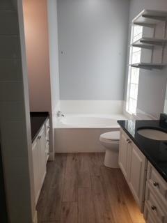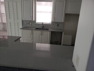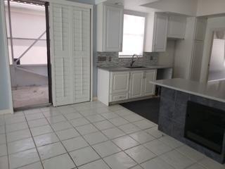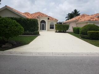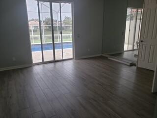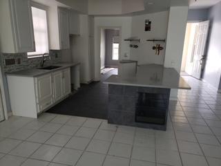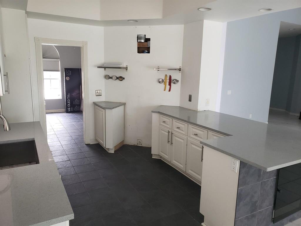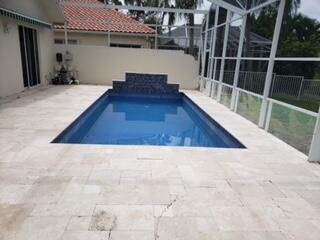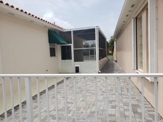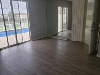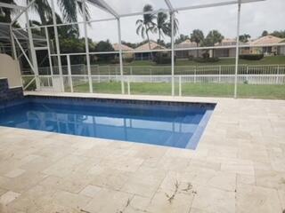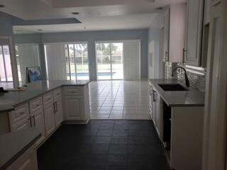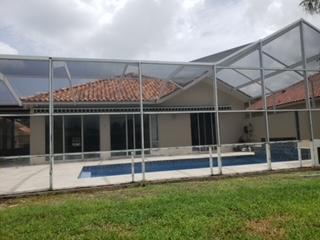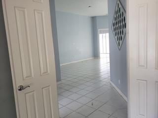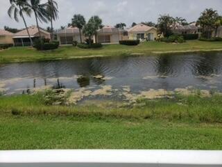Imagine the possibilities w/ this lakefront, pool home in desirable Riverwalk where you can enjoy resort style living without the 'country club' fees in man gated community. Screen entryway. Open floor plan w/ 10 & 12 ft high ceilings. 2 screen enclosed patios w/sliders to pool. Fenced yard. Needs work!No appliances. Tile in living/family room . Plantation shutters.. Laminate flooring in bedrooms. Separate laundry room w/ double sink. Guest bath has glass door shower.Digital ac thermostat. Master bedroom generous closet space w/ slider to pool, Unique double bathroom design, w/ 1 side roman tub, other large shower w/ glass door-2 vanities & toilets . Kitchen white cabinets w/ corrian counter tops. NO appliances!! Screen enclosed pool w/fountain & retractable awning. Handyman Limited water