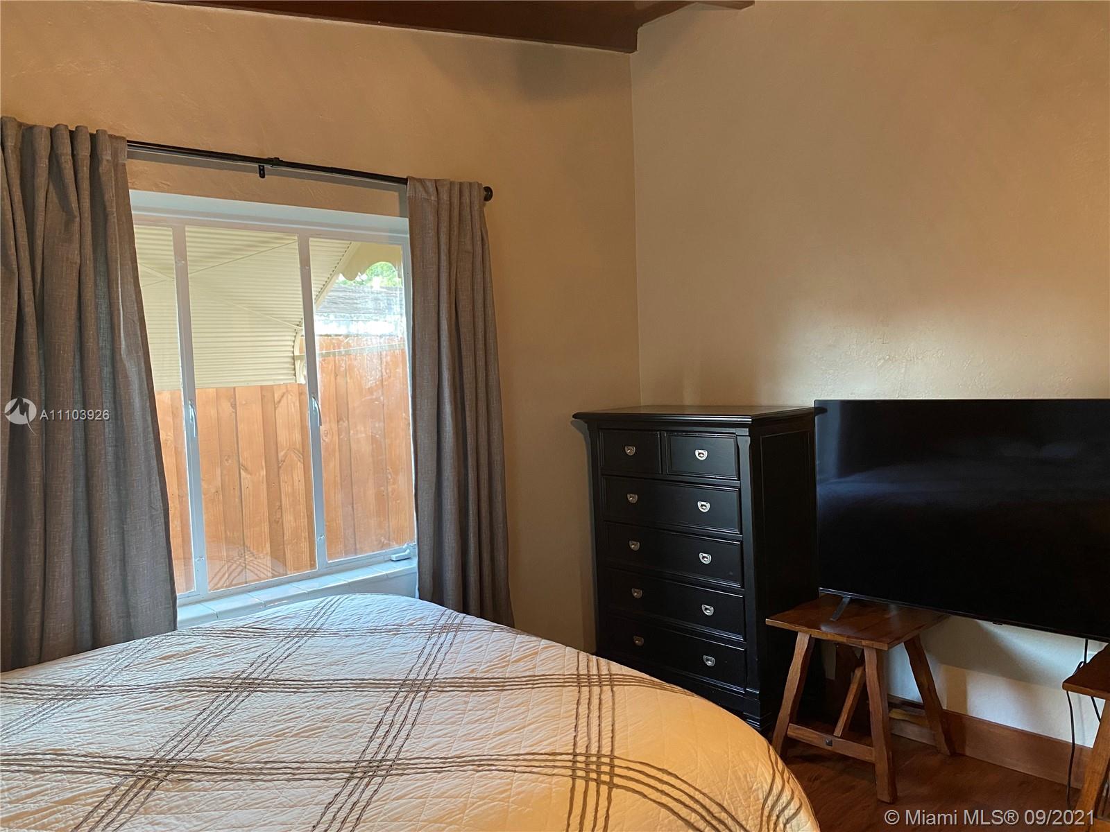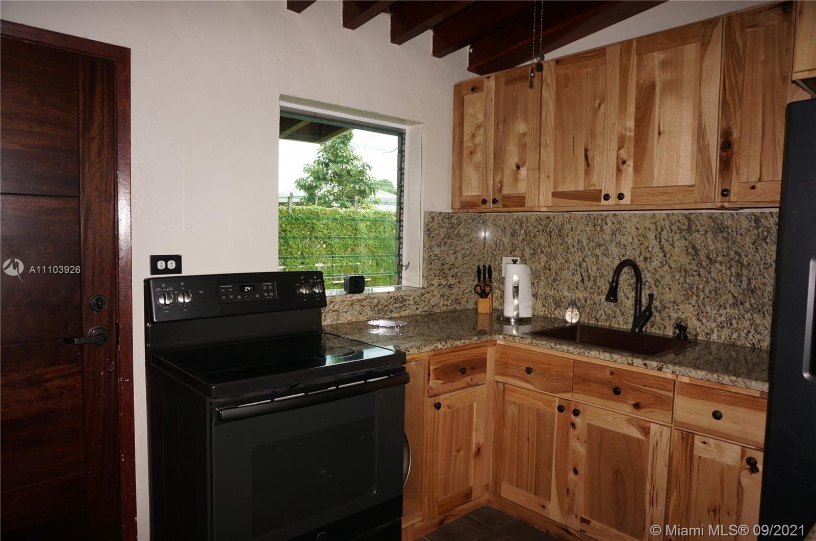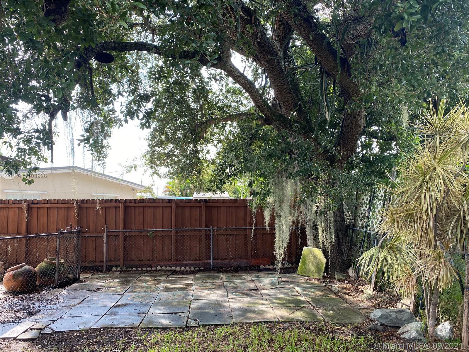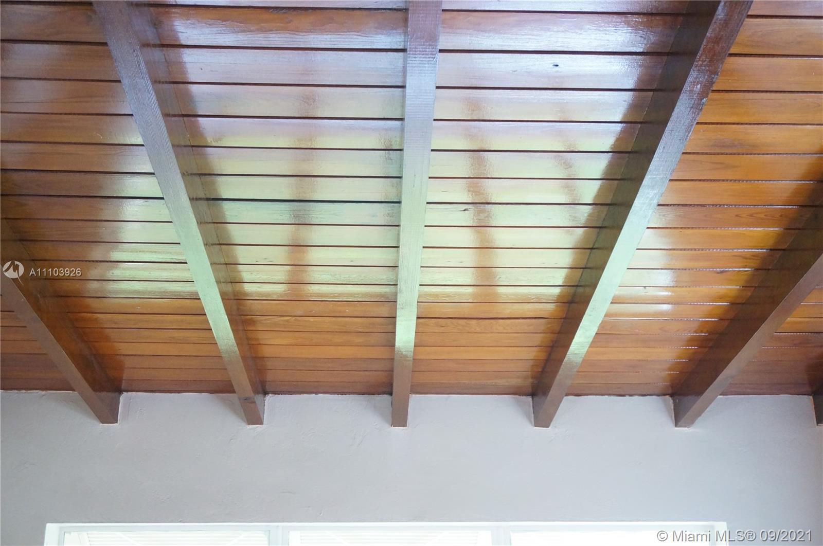 Great 3 bedroom home in Central Hialeah, fully fenced, and landscaped for privacy, home sits back on property, providing a large front yard. Park in the driveway, carport or on the street. Updated kitchen, floors, bathroom, but still maintains mid century character with lovely stained wood ceilings and entry wall. 3 nice sized bedrooms with new interior doors, and hardware. Vaulted ceilings provide a more spacious atmosphere. Walk into a foyer, that separates the living/dining areas. Kitchen boasts beautiful natural wood cabinets, large copper sink, granite countertops with snack bar, and a separate pantry. Back door to large wood privacy fenced back yard with enclosed laundry with washer and dryer,paver patio, room for bbq's and entertaining. Newer roof, electrical panel, w/h, a/c 2020