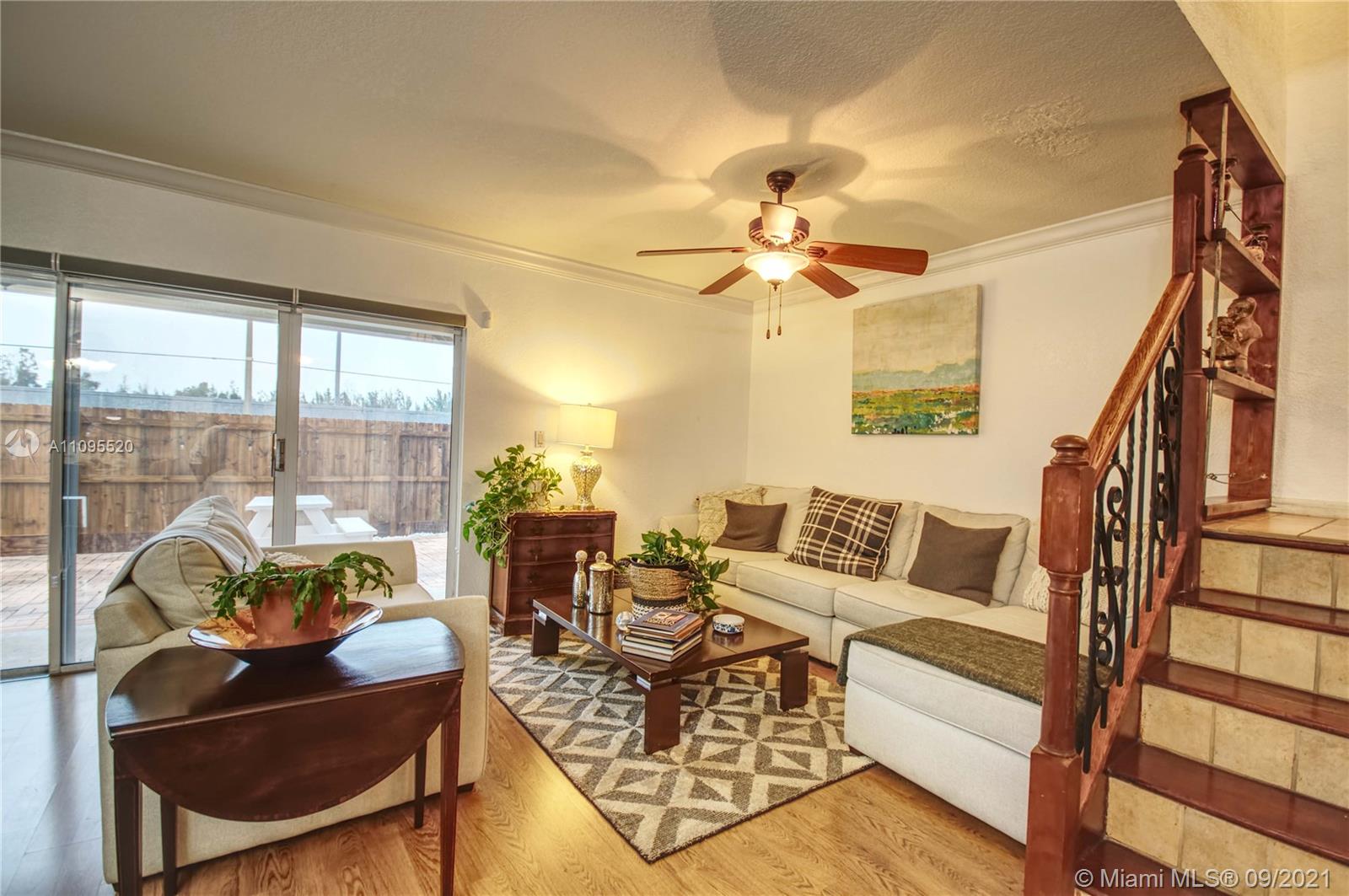 This beautiful 3 bed 2 1/2 bath Townhouse. It is located in a quiet gated community, very close to major schools, parks, shops, and banks. Storage accessible from the Master bedroom Kitchen with stainless steel appliances, ceiling fans in the living room and bedrooms, laminate floors inside, pavers in the huge backyard with storage area. Roofed garage for one vehicle, parking space for 2 additional vehicles. Modern laundry appliances are arranged in the garage area. Excellent location, Located just minutes from great schools, the turnpike, dining, and shopping.