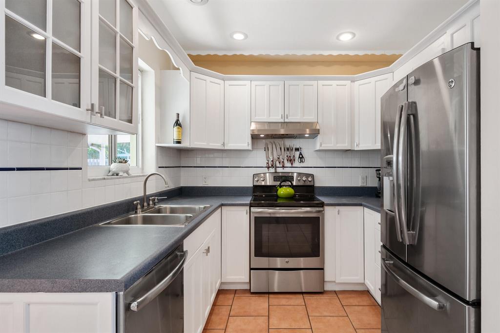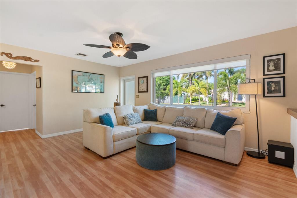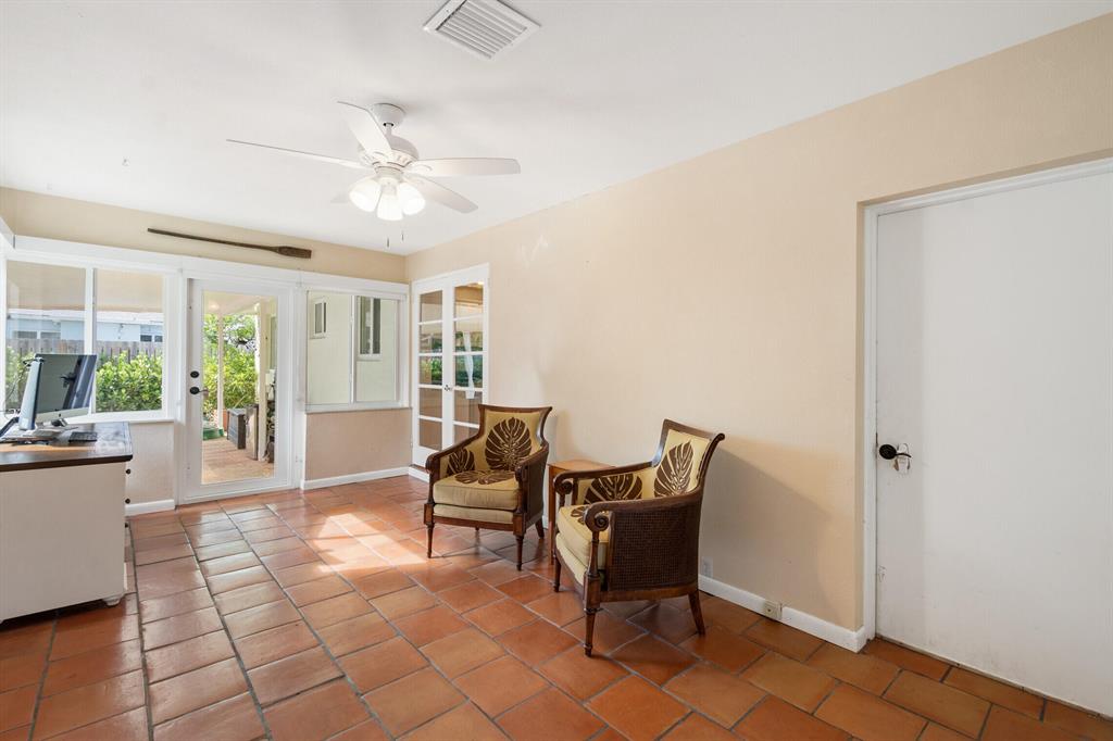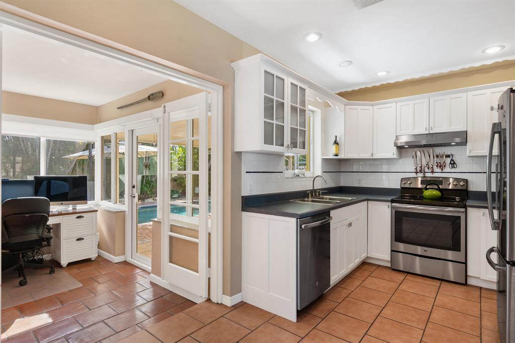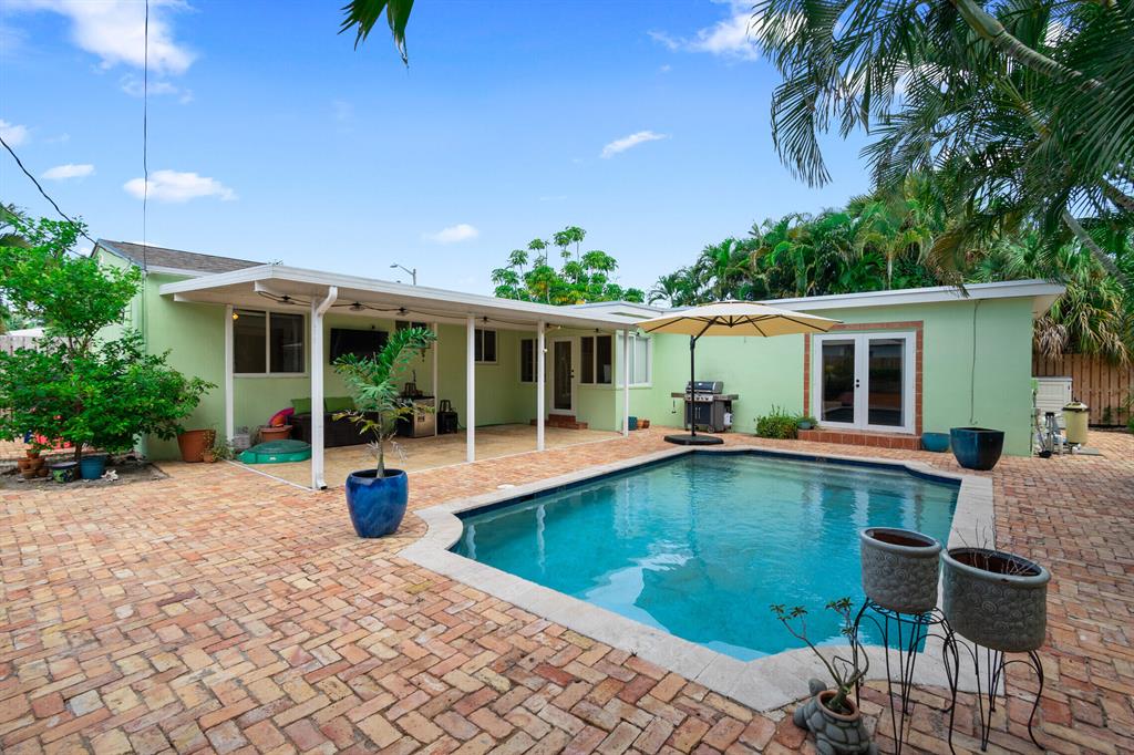 This charming and meticulously maintained CBS pool home sits in a quiet cul de sac in the desirable 'SoSo' district just steps from Flagler Drive and features a split floor plan with 3 bedrooms, 2 newly updated bathrooms and a 1 car garage. This home is equipped with numerous upgrades such as impact windows and doors throughout, roof and sprinkler system were replaced in 2017, tankless water heater in 2018, Pool salt water system and new fence in 2020 and the attic was insulated for FPL's energy credit and so much more! The huge master bedroom overlooks the salt water pool surrounded by the homes original Chicago brick deck. Enjoy South Florida's beautiful weather under the large covered patio that overlooks your private fully fenced landscaped backyard. The front lawn was replaced