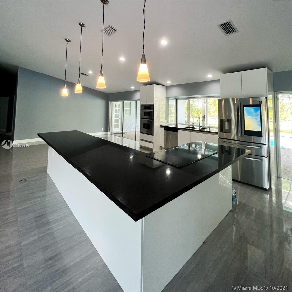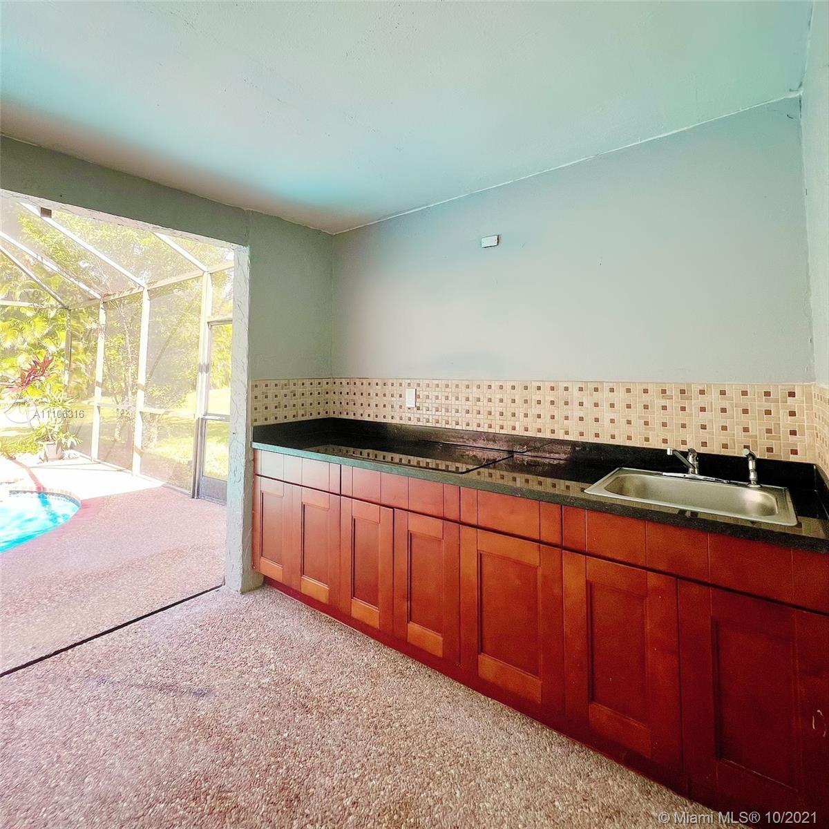 Beautiful and spacious updated 5 bedroom 3.5 bathroom pool home. This home is an instant delight as soon as you see it, full of natural lighting and warmth to compliment the open concept and adding to its spacious feel. You will fall in love with the eat in kitchen, beautiful cabinets, large kitchen island, and its stainless steel appliances. Kitchen and living room space opens up to a large screened pool with custom built-in outdoor kitchen. This house has THE DREAM Backyard. The Primary bedroom has direct access to the patio and pool, with plenty of closets and storage space. This entire home has been freshly tiled and is move-in ready. No HOA fees. A MUST SEE!