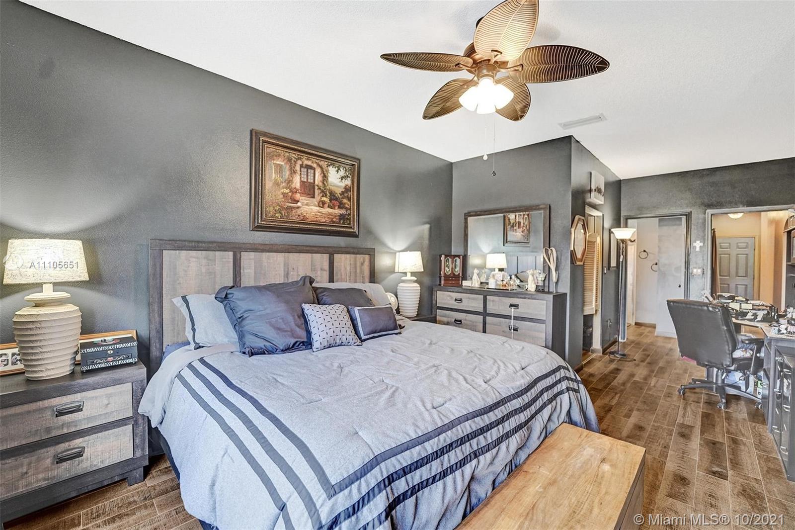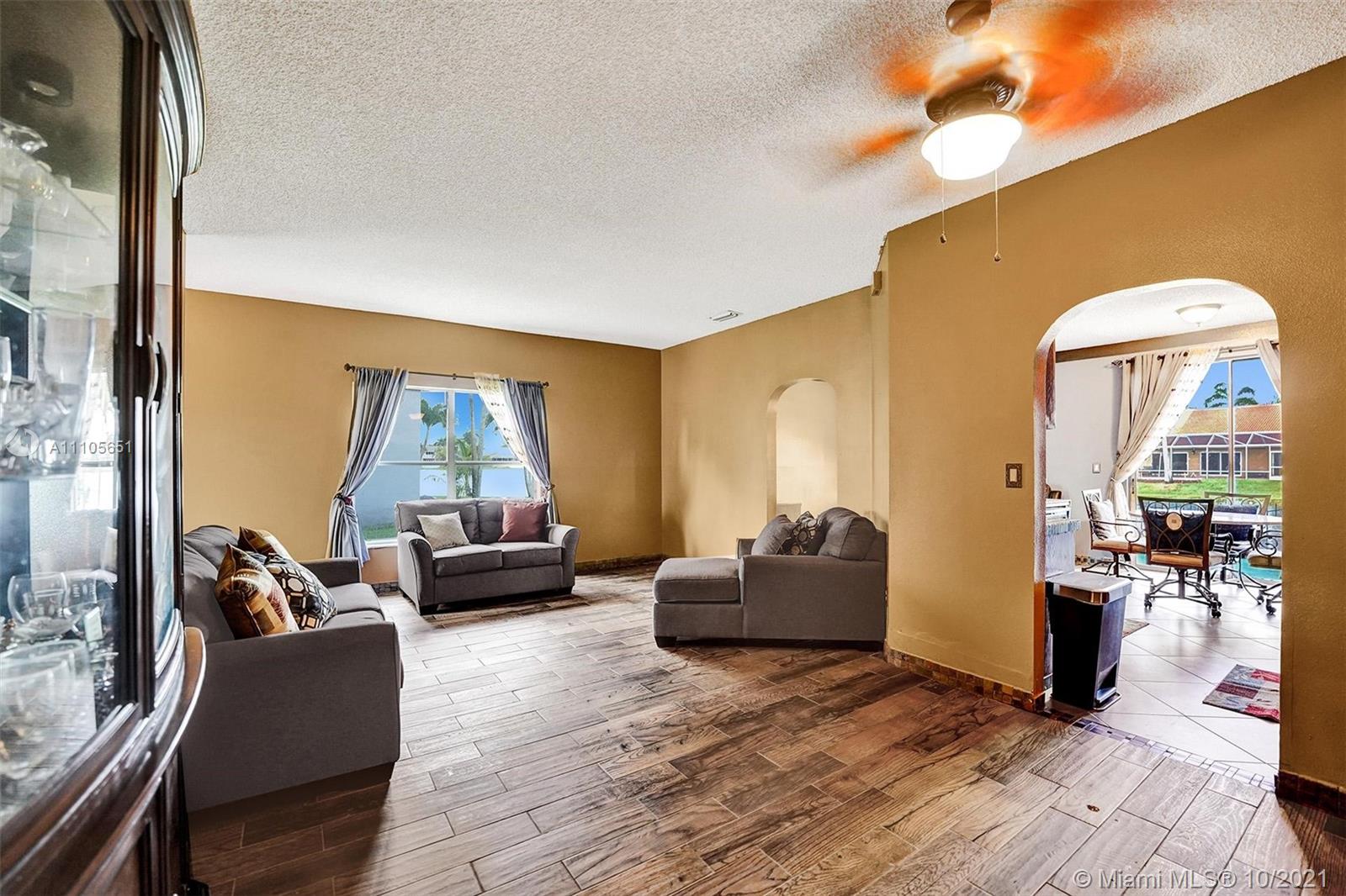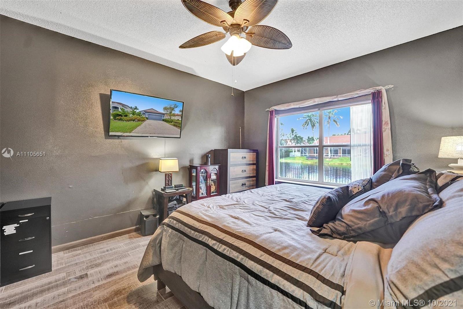 Desirable West Pembroke Pines part of the fabulous Chapel Trail. Put some sweat equity into this 3 bedroom 2 bath home and you will have a real gem! With a direct view of the lake, you will be sitting pretty. Spacious 2 car garage, one level floor plan, oversized rear patio, and wonderful neighbors will all help make this house your perfect home. An open concept kitchen can be opened even further. The primary bedroom suite has a walk-in closet and a walk-in shower. Two additional generous sized bedrooms for guests, family, home office or just your hobbies. A paver driveway, barrel tile roof, and front palladian window add to the charm of this solid, well-positioned home. And sleep well knowing you will reside in a gated community.
