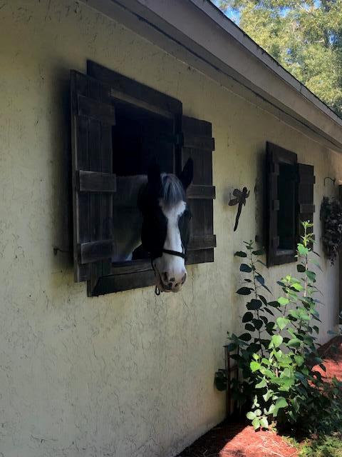 A turnkey, equestrian farm w/a CBS Ranch home, 3 bedrooms & 2 baths on 2.34 acres w/no HOA. Fenced w/privacy hedge on quiet street end. Large screened in FL room w/AC hookup, fireplace, open floor plan & bonus room w/laundry. 4 stall CBS barn includes a tack room w/ceiling fan, saddle racks & bridle brackets, feed/hay room, small lounge area w/fridge, electric, water filtration, matted stalls have fans, lights, hay racks, salt block holders & screw eyes for feed, water & feed buckets and stall guards, halters, bungees to hang blankets & saddle pads. Barn isle is matted w/crosstie area, 2 large tack up areas with sunshades & wash rack area. MAKE SEASONAL INCOME $ w/stalls. 7 Turnout Paddocks, 2 are sand. Secure fencing w/hot wire. Level 1 sand arena. Trails & parks nearby. 30 min from WEF.
