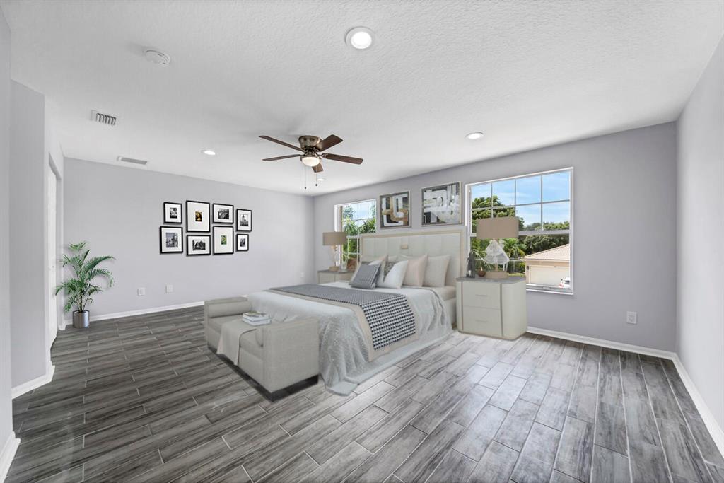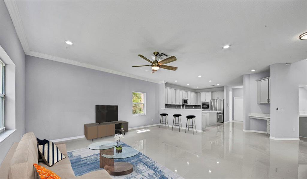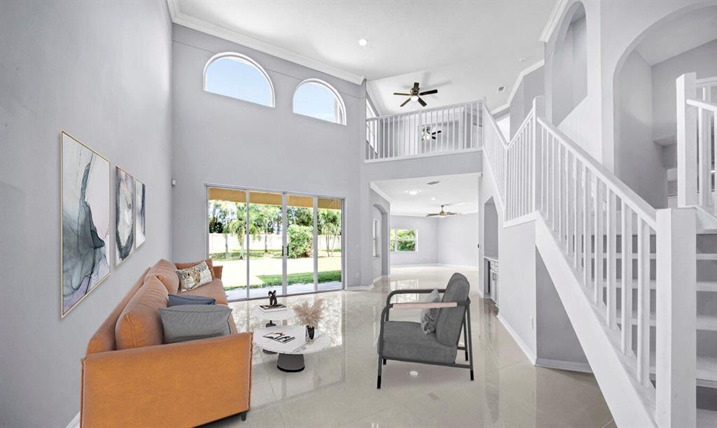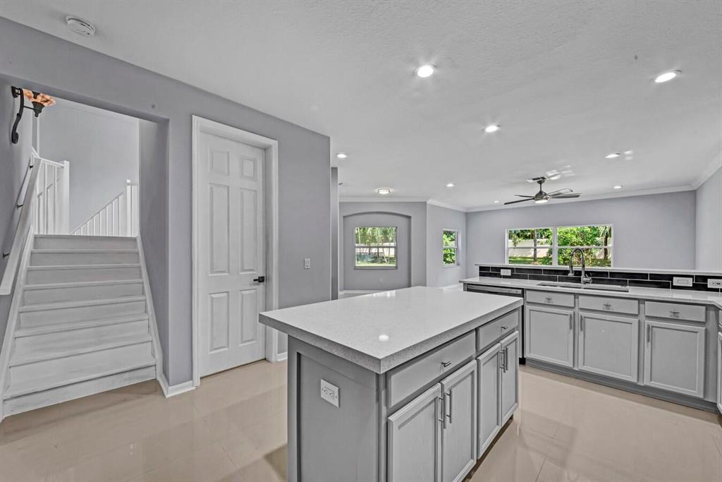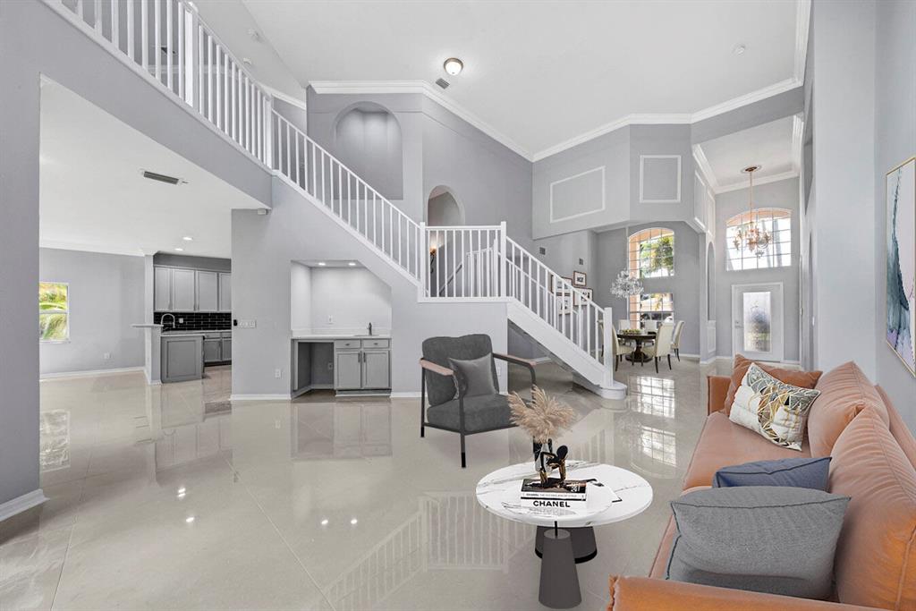 Live the Florida dream in this stunning 5 bedroom, 4 bath, updated home. Dream kitchen with a center island, stainless steel appliances, quartz counter-tops, tiled granite back-splash, snack bar and a menu desk. Master retreat with a coffered ceiling, door to patio, his and her walk-in closets, dual sinks, soaking tub and walk in shower. The inviting covered patio overlooks the large, private yard. This home also boasts a formal living room, formal dining room, family room, loft, neutral flooring, crown molding, a wet bar and a neutral decor. Stonehaven provides first class amenities that incudes a clubhouse, fitness center, gathering room, resort style pool, spa, tennis, and a play area. Located close to shopping, dining, entertainment, ''A'' rated schools, major highways and airport.