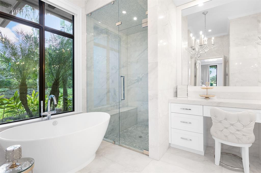 The worlds of chic contemporary design and resort-style comfort find common ground amid a prestigious gated community in Weston. Windmill Ranch Estates, constructed around the waterways that distinguish the landscape in this coveted part of west Broward County, provides an idyllic setting for this beautifully rendered seven-bedroom sanctuary by renowned architect Randall Stofft. Designed on a canvas bathed in brilliant, invigorating whites--like the custom cabinetry in the chef's kitchen and master bathroom (one of eight full baths to go with three half-baths), or the Turkish Carrara marble flooring in the dining area and formal living room--and complemented by rustic earth tones, the layout carries a thread of clean sophistication throughout its two floors.