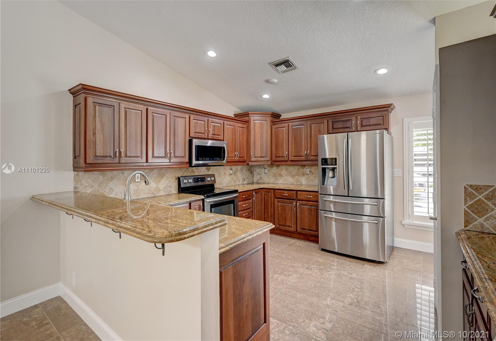 This 3 bedroom 2 bathroom home in the desired gated community of Sanctuary in Kensington is pristine and impeccable! A must see! This home features: Stunning vaulted ceilings, remodeled kitchen with real wood cabinets & self closing drawers, custom granite countertops with natural stone back splash, convenient separate serving area & matching Samsung stainless steel appliances, beautiful 24"x24" porcelain floors, wood plantation shutters throughout, remodeled bathrooms with real wood vanities & granite countertops, master with roman tub & walk in showers with frameless glass, updated LED lighting, Rheem HVAC system with germicidal irradiation lights. Outside you will find an oversized crystal blue pool & spa, fenced in & beautifully landscaped, covered patio deck perfect for entertaining.