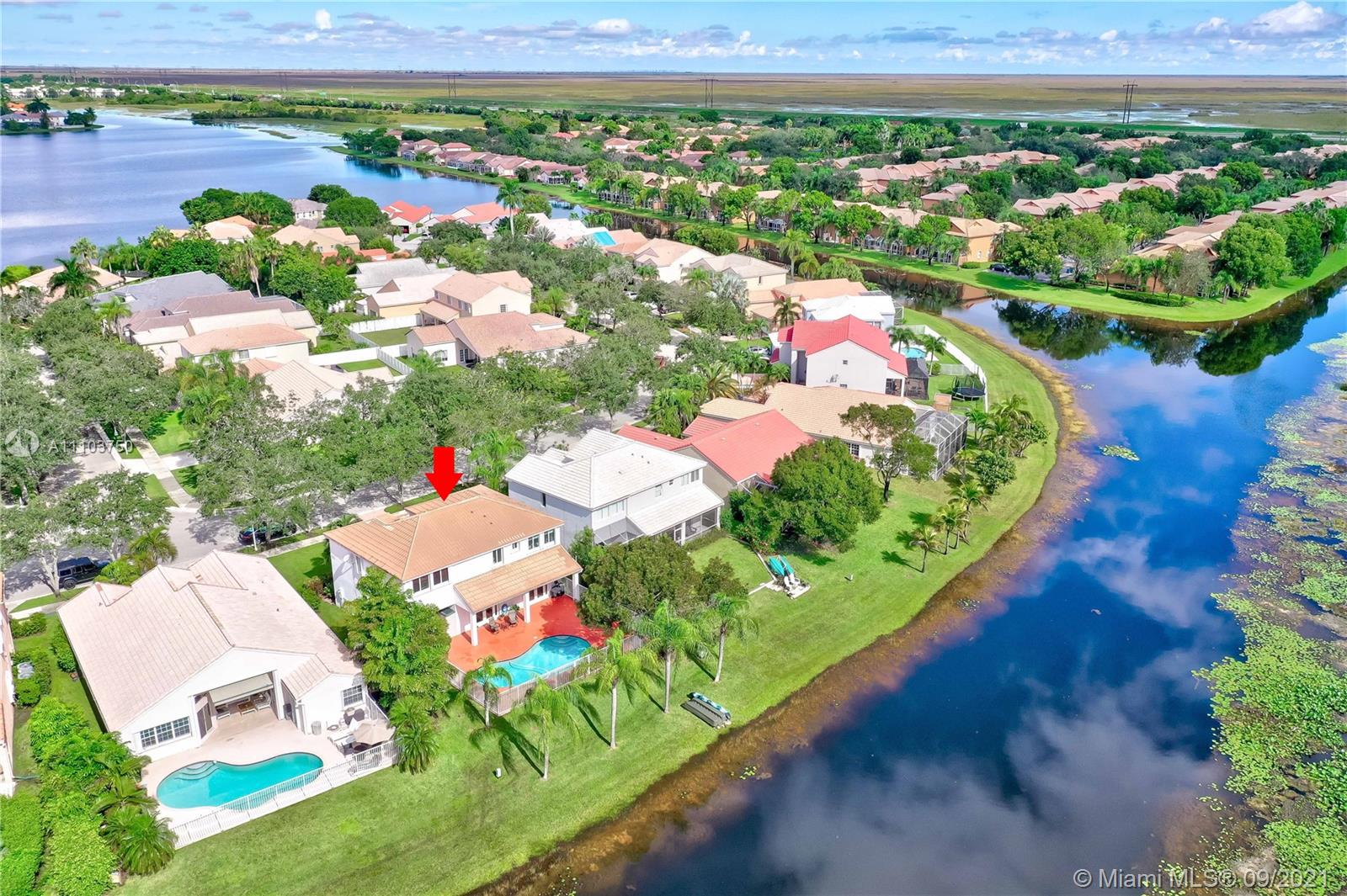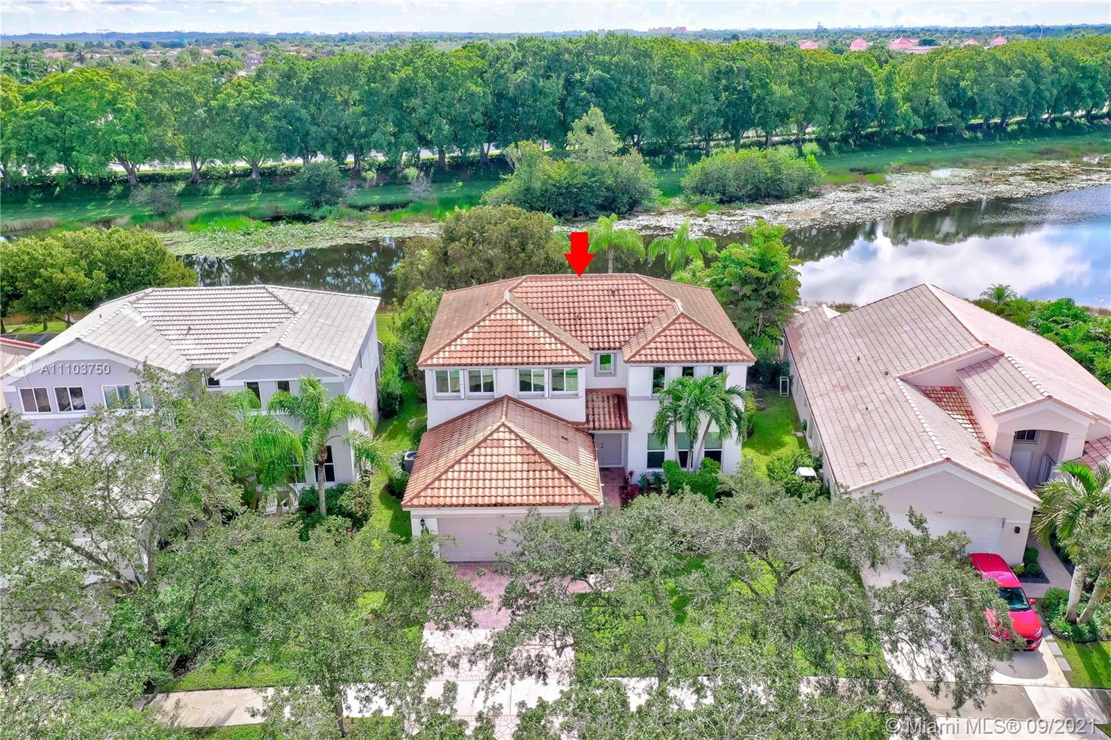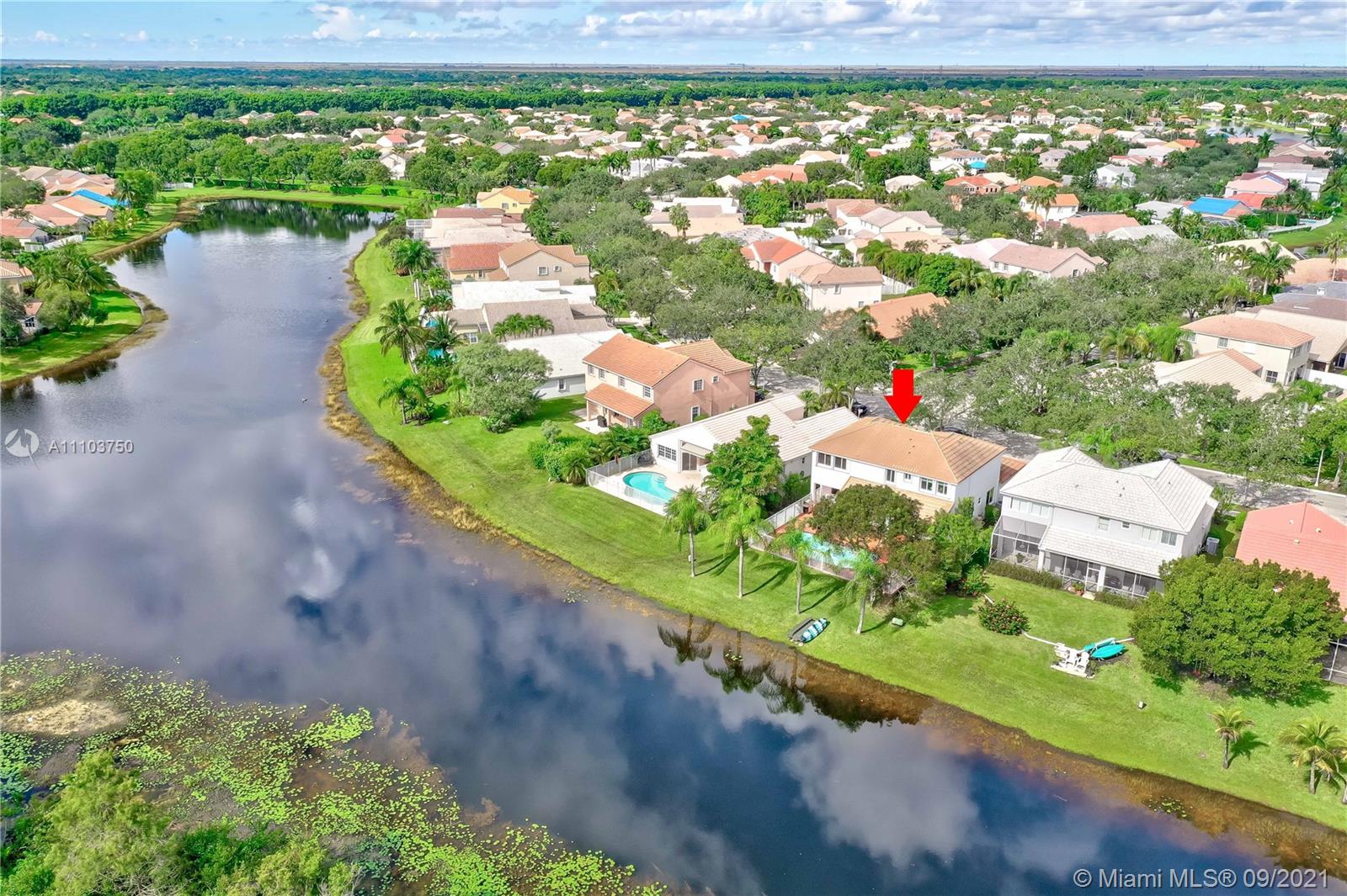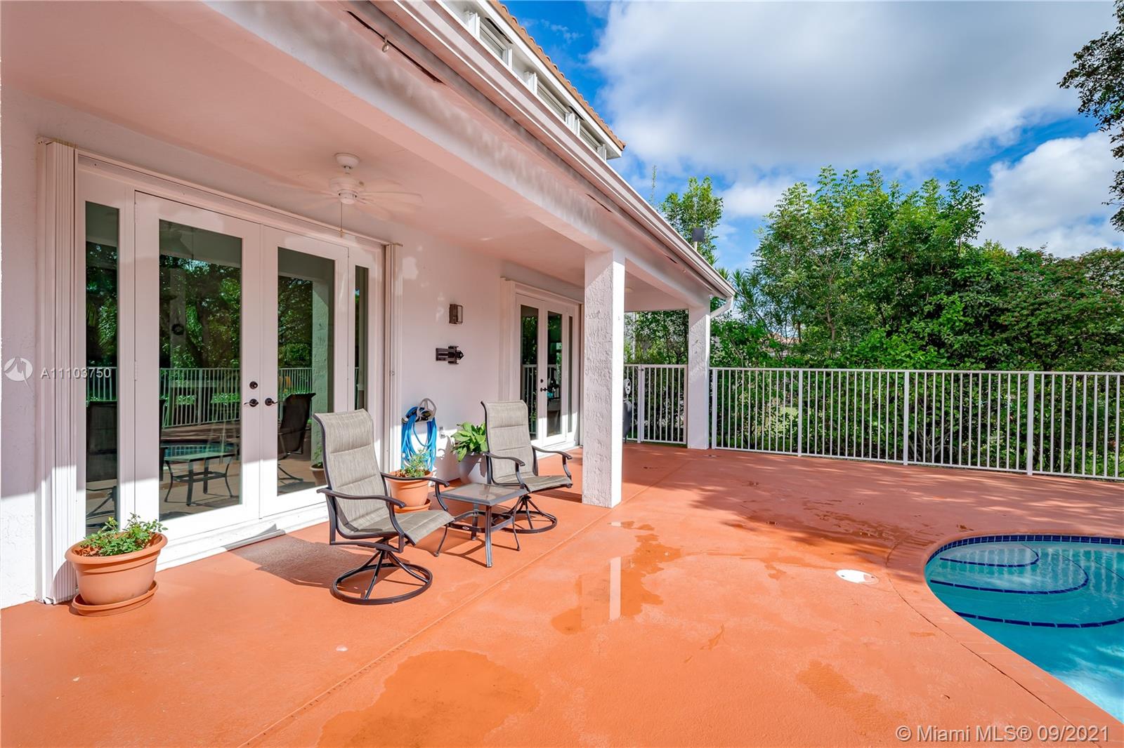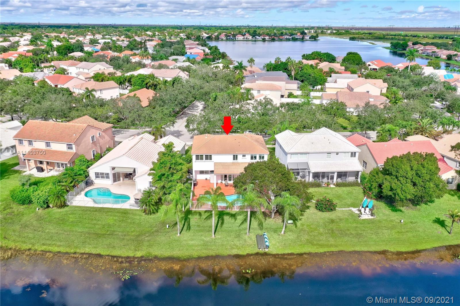 Gorgeous 5/3 plus den, pool & lakefront home located on a cul-de-sac in Guard gated community of The Falls! Impact glass windows & doors installed in 2020! Metal roof 2006. Tile flooring laid diagonally on first floor main living area. Deep baseboards, chair rail, & crown molding throughout. Bedroom & full bath on first floor. Remodeled kitchen features wood cabinetry, granite countertops & new appliances w/induction & convection stove/oven. Master bedroom has two walk in closets/ master bath with double vanity, soaking tub & separate shower w/steam & rain shower head. Additional bedrooms upstairs along w/large den, perfect for a playroom, office or movie room! AC 2016. Water heater 2015. Heated pool. A+ Rated schools. Community features pool, children's playground, full basketball court.
