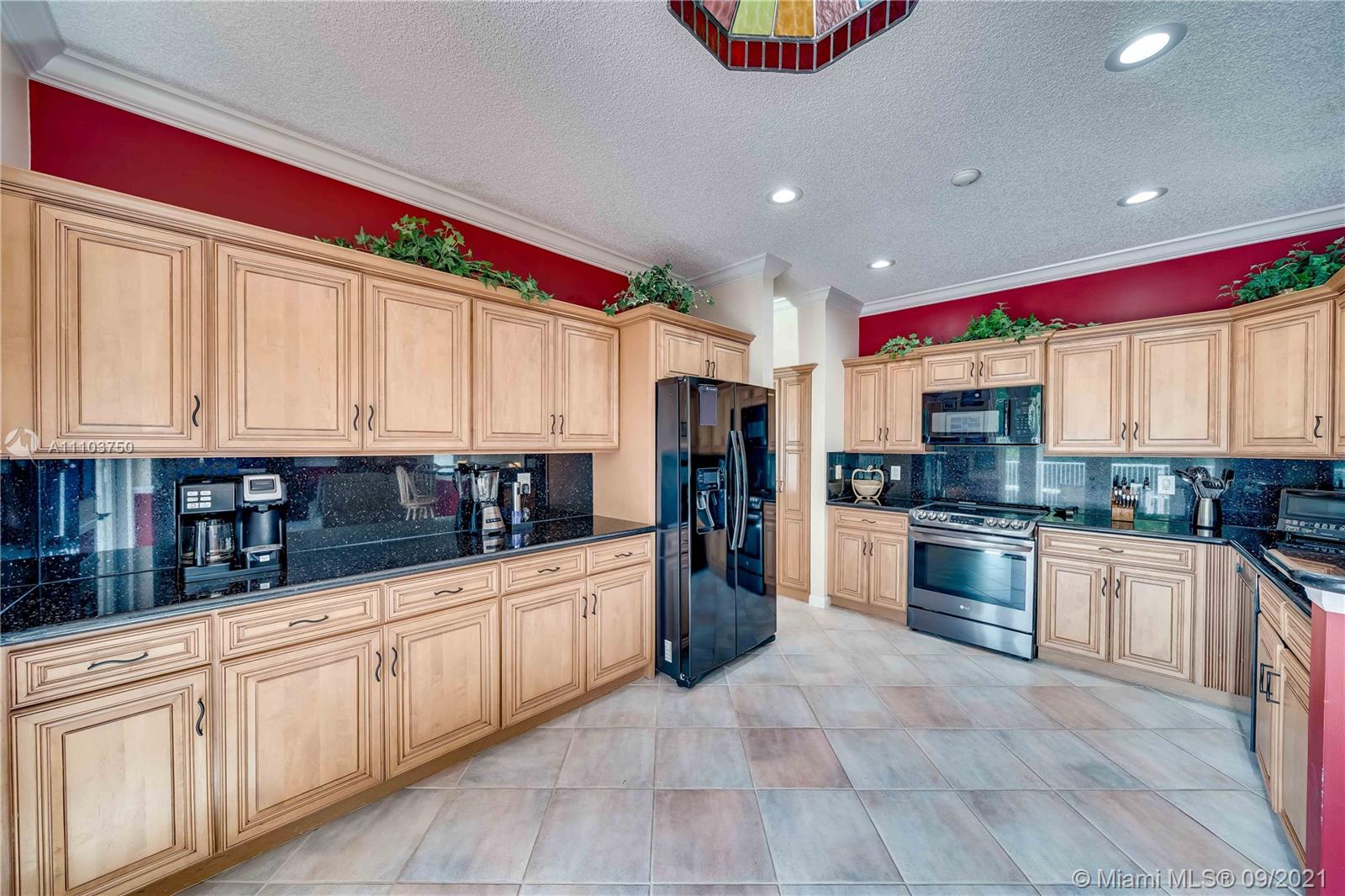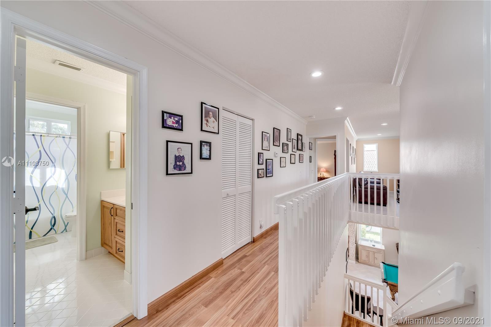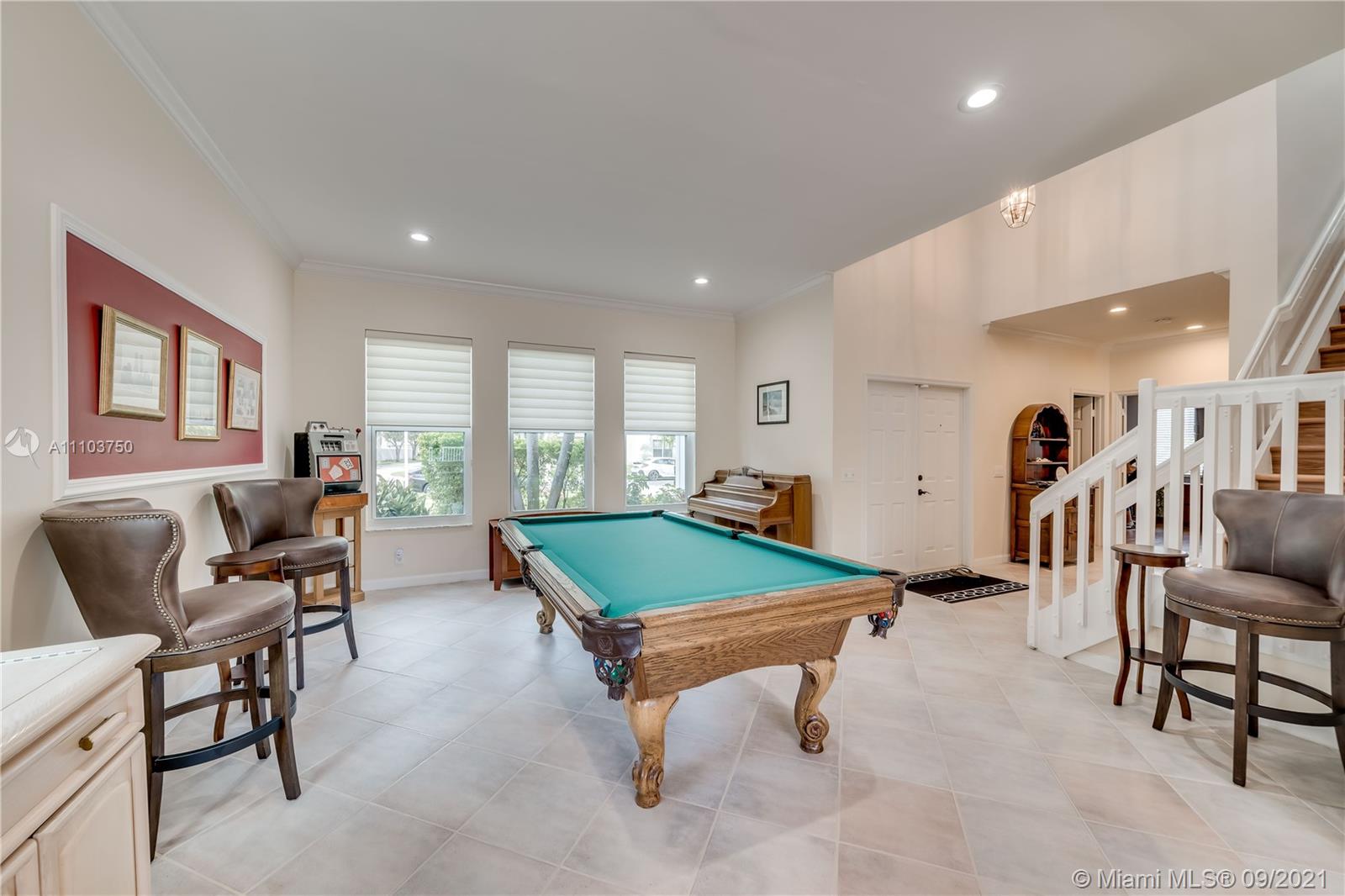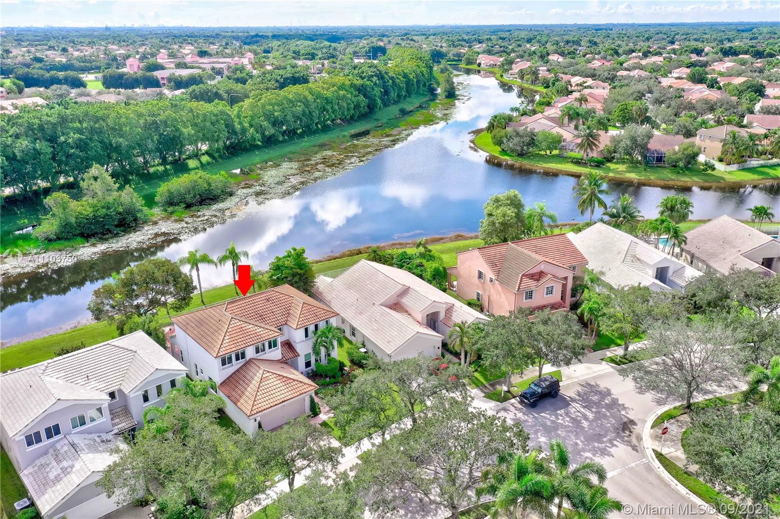 Gorgeous 5/3 plus den, pool & lakefront home located on a cul-de-sac in Guard gated community of The Falls! Impact glass windows & doors installed in 2020! Metal roof 2006. Tile flooring laid diagonally on first floor main living area. Deep baseboards, chair rail, & crown molding throughout. Bedroom & full bath on first floor. Remodeled kitchen features wood cabinetry, granite countertops & new appliances w/induction & convection stove/oven. Master bedroom has two walk in closets/ master bath with double vanity, soaking tub & separate shower w/steam & rain shower head. Additional bedrooms upstairs along w/large den, perfect for a playroom, office or movie room! AC 2016. Water heater 2015. Heated pool. A+ Rated schools. Community features pool, children's playground, full basketball court.