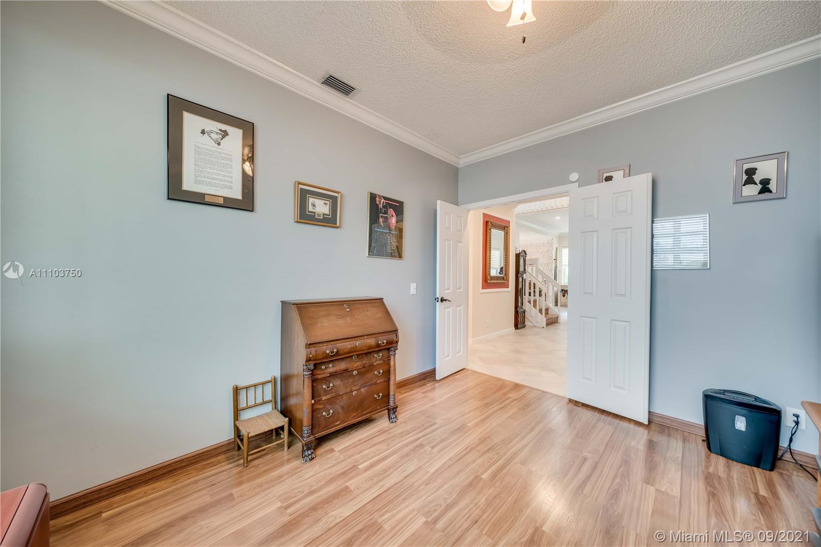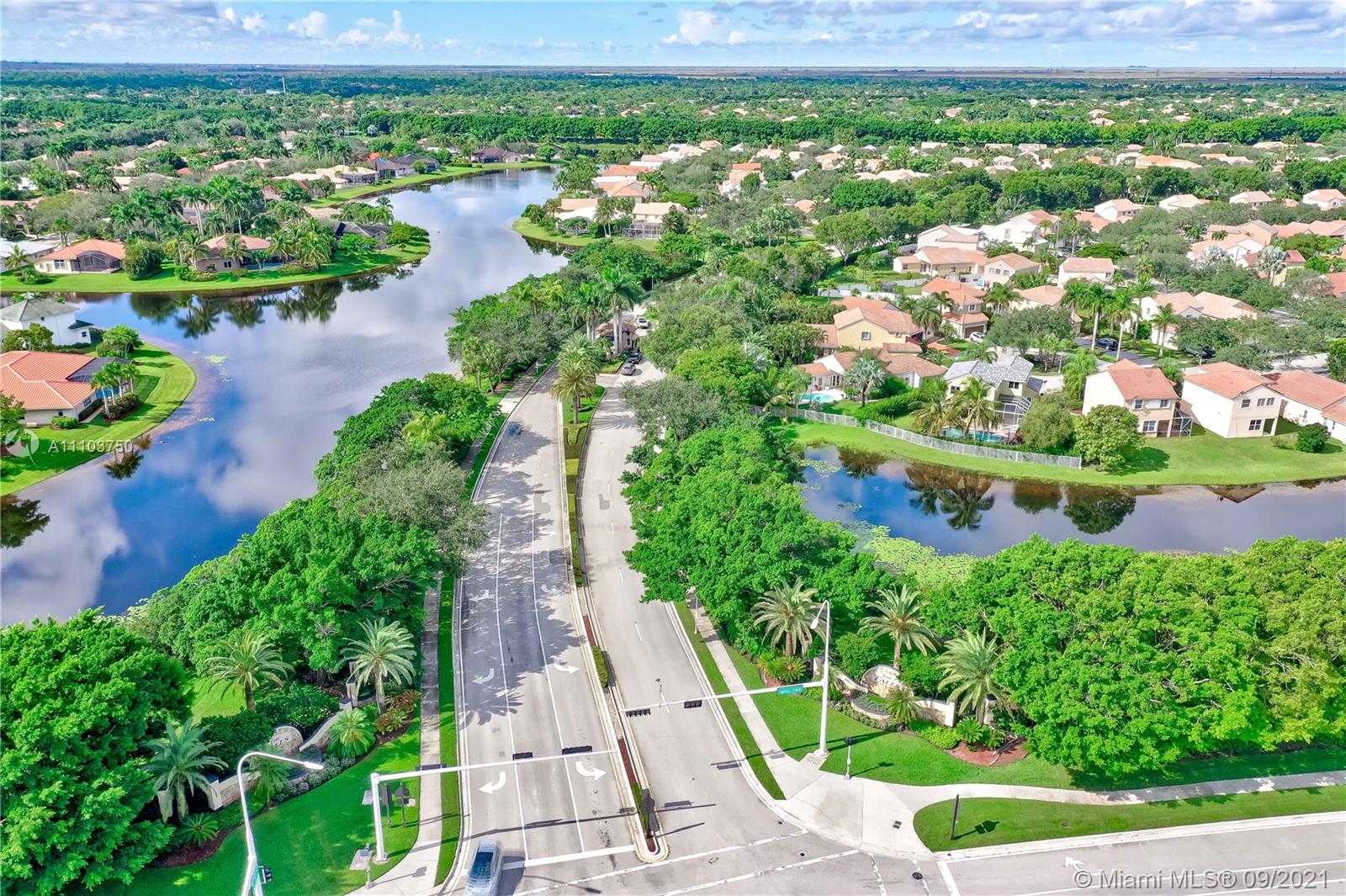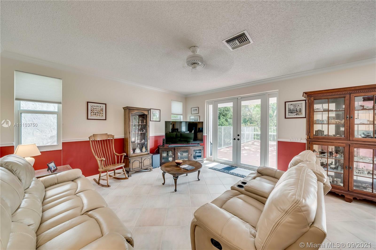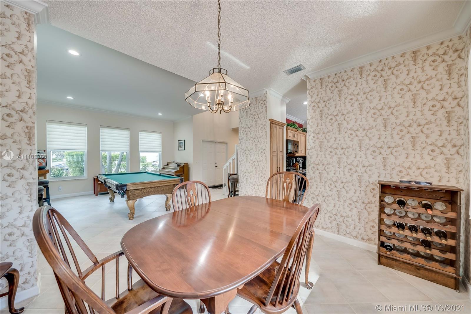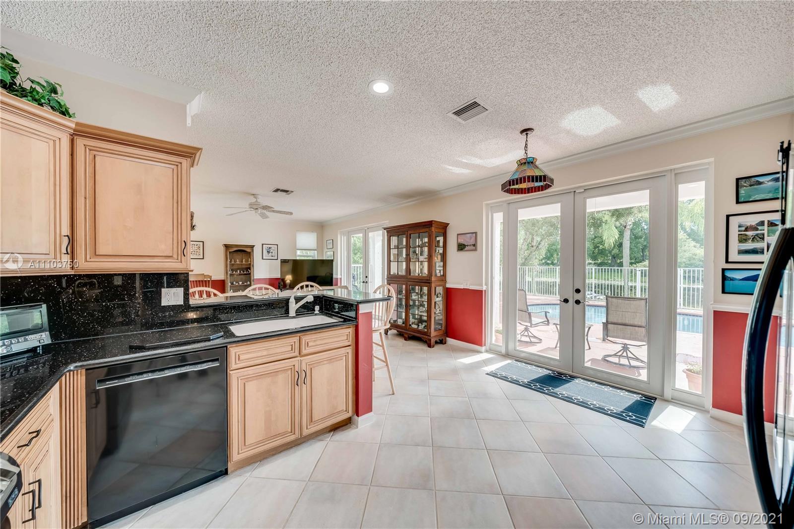 Gorgeous 5/3 plus den, pool & lakefront home located on a cul-de-sac in Guard gated community of The Falls! Impact glass windows & doors installed in 2020! Metal roof 2006. Tile flooring laid diagonally on first floor main living area. Deep baseboards, chair rail, & crown molding throughout. Bedroom & full bath on first floor. Remodeled kitchen features wood cabinetry, granite countertops & new appliances w/induction & convection stove/oven. Master bedroom has two walk in closets/ master bath with double vanity, soaking tub & separate shower w/steam & rain shower head. Additional bedrooms upstairs along w/large den, perfect for a playroom, office or movie room! AC 2016. Water heater 2015. Heated pool. A+ Rated schools. Community features pool, children's playground, full basketball court.