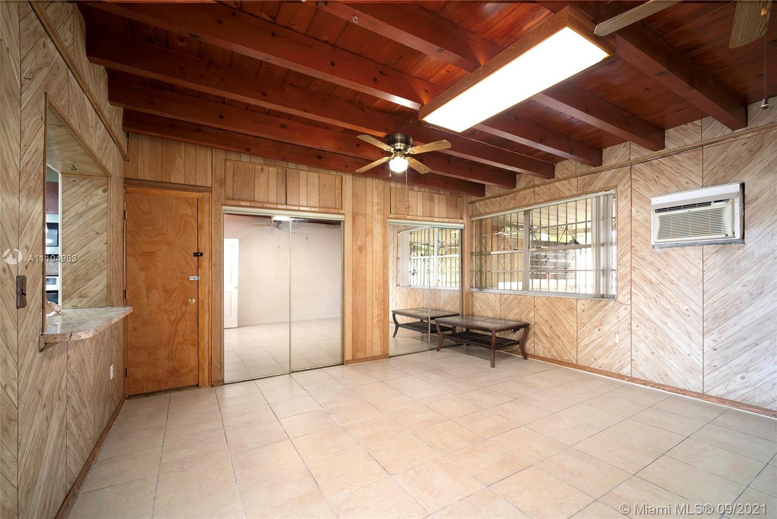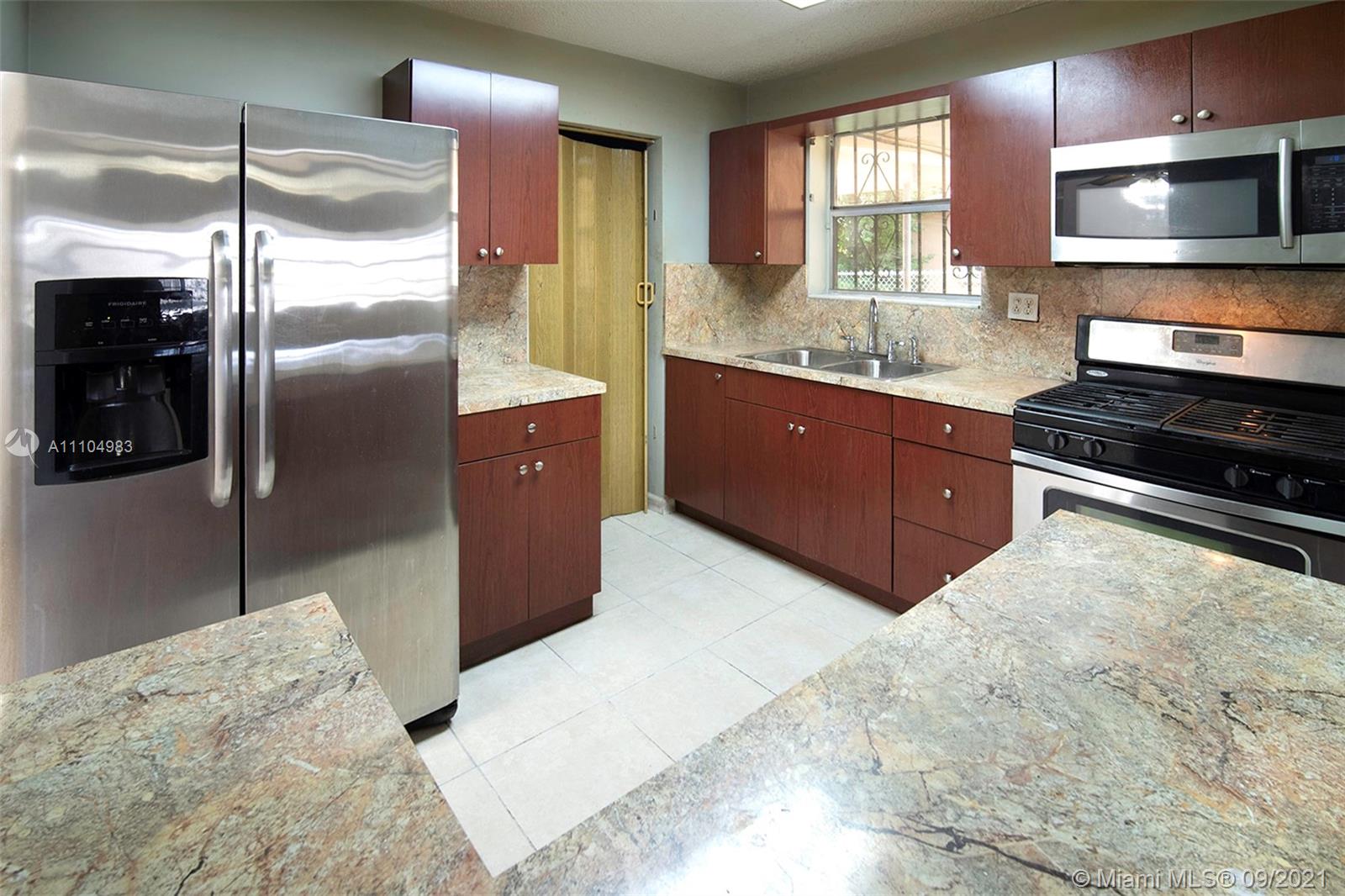 a corner lot house with ample fenced patio at a great location in Hialeah. The house has 4 bedrooms and three bathrooms . The entire lot is fenced by iron fences with electric gate opener to driveway, and with shutter protection for windows. The flat roof has been recently fixed, as well as a new ac unit, a bedroom and bath located on the side can be used as additional income rental. This is " as is" contract and will not be accept any offers with any contingencies . Please provided DU letter as well as approval letter from lender with the offer to be contemplated. Hurry!, this one won't last in a hot seller market of Hialeah
