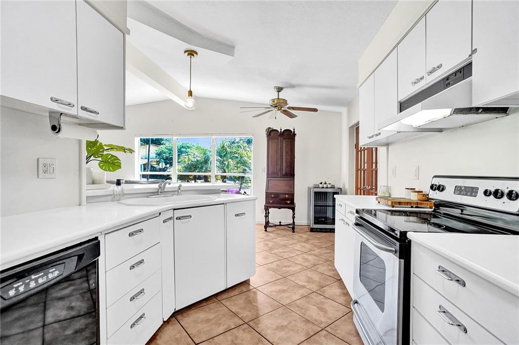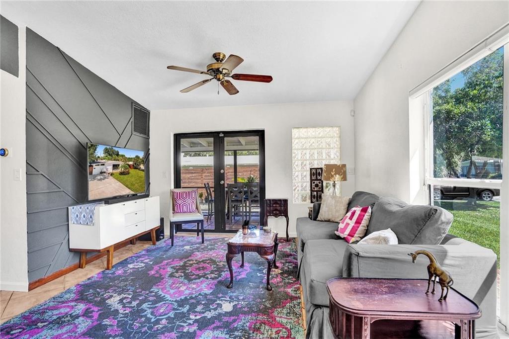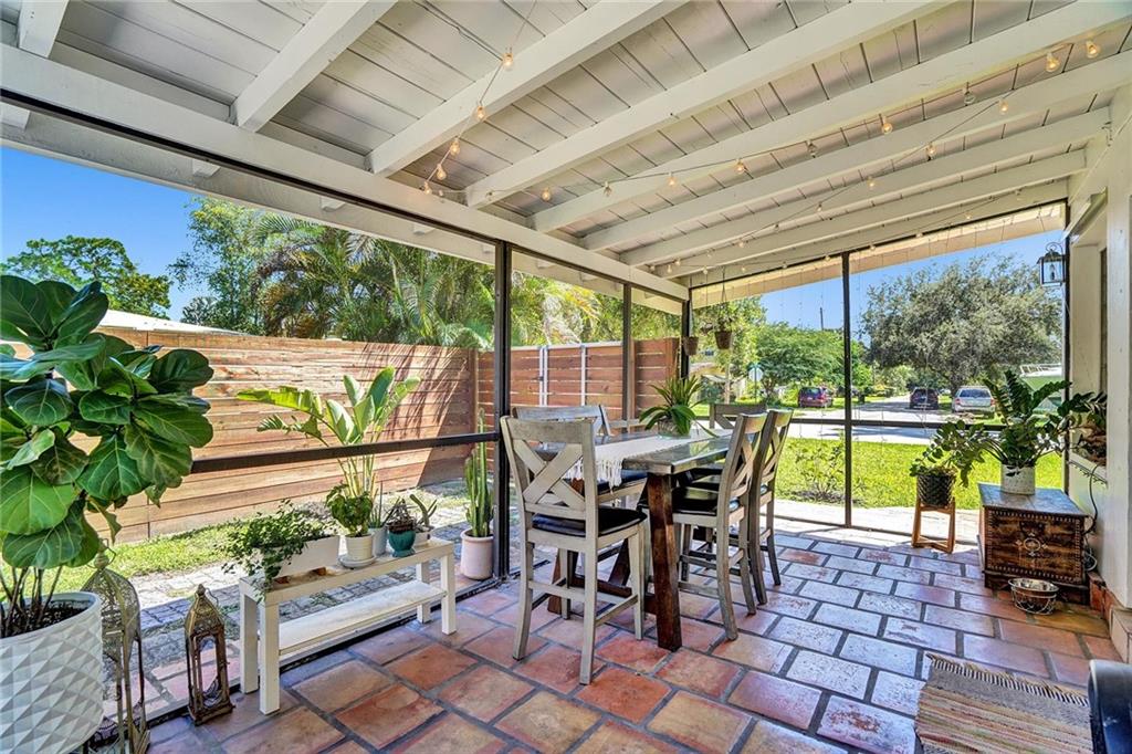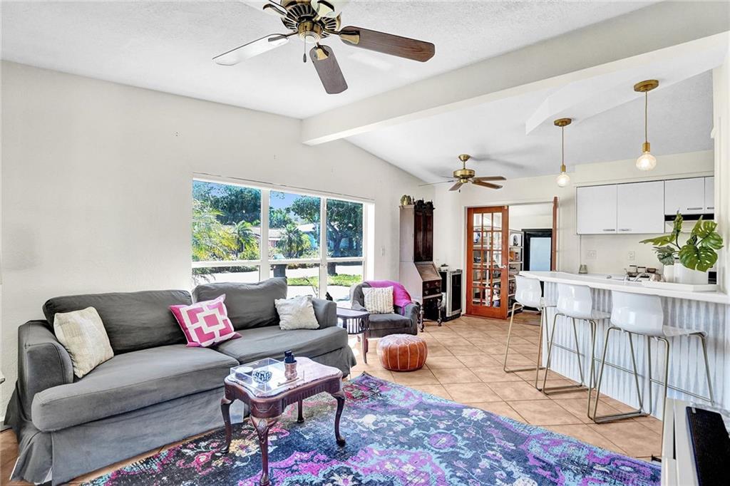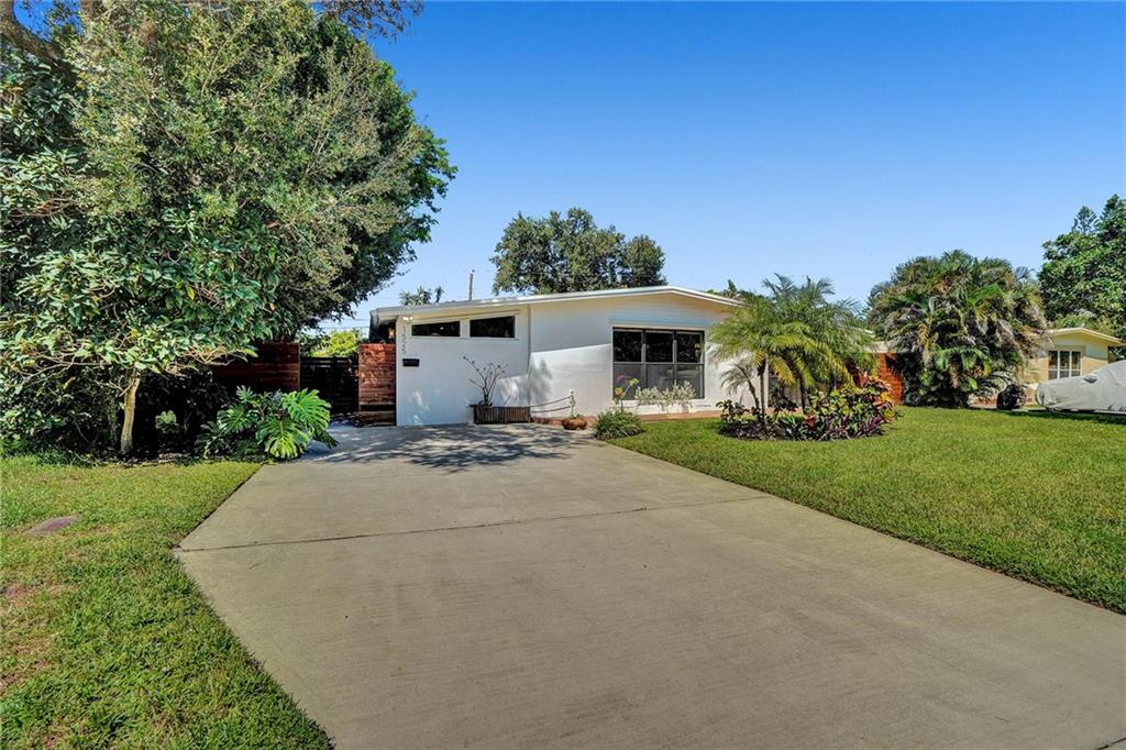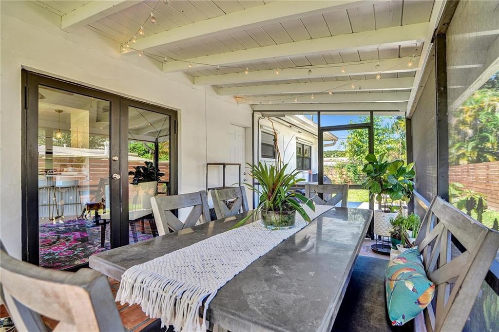 Mid Century Home with Modern Updates throughout. Filled with Natural Light, 2 bedrooms 1 bath plus a flex space for home office or 3rd bedroom w/a large storage area. Custom Blinds, French Doors, Vaulted Ceilings Custom Accent wall in the Living Room. Screened Porch overlooking large yard w/ room for a pool & expansion. Separate Utility/ Laundry Room. New Modern 6ft Privacy Fencing,2018 Electric Panels, 2016 Roof. Open Kitchen w/ Counter Seating & a Pantry. Updated fixtures & Lighting throughout. Nest Thermostat, full alarm system & outdoor security lighting. Shady Banks offers 2 parks with Volleyball, Tennis Courts Walking Paths and a Riverfront Preserve to Paddle Board/Kayak. Surrounded by the New River, with one way in/out this is the hidden gem neighborhood in Ft Lauderdale. A MUST SEE