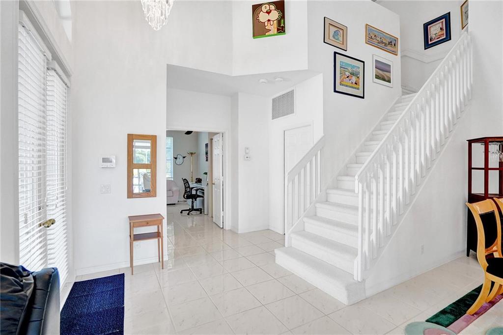 THE SERENTIY OF LAKE AND GOLF COURSE VIEWS CAN'T BE BEAT! This beautiful two story pool home in prestigious Eagle Trace boasts a bright opened floor plan with plenty of natural light, white flooring and cabinetry and lots of room to roam. Ground floor Master Bedroom with oversized walk-in closet and large master bath, second bedroom and second full bath also on ground floor. Beautiful eat-in white kitchen with lots of storage and one of kind granite counters and island bar. Loft, two bedrooms and full bath on second floor. Step outside to the oversized pool with a coral stone pool deck, waterfall and custom retractable awning that overlook the expansive Eagle Trace golf course. Accordion shutters, A Rated Schools, close to Shopping and Highways. Don't miss this opportunity!