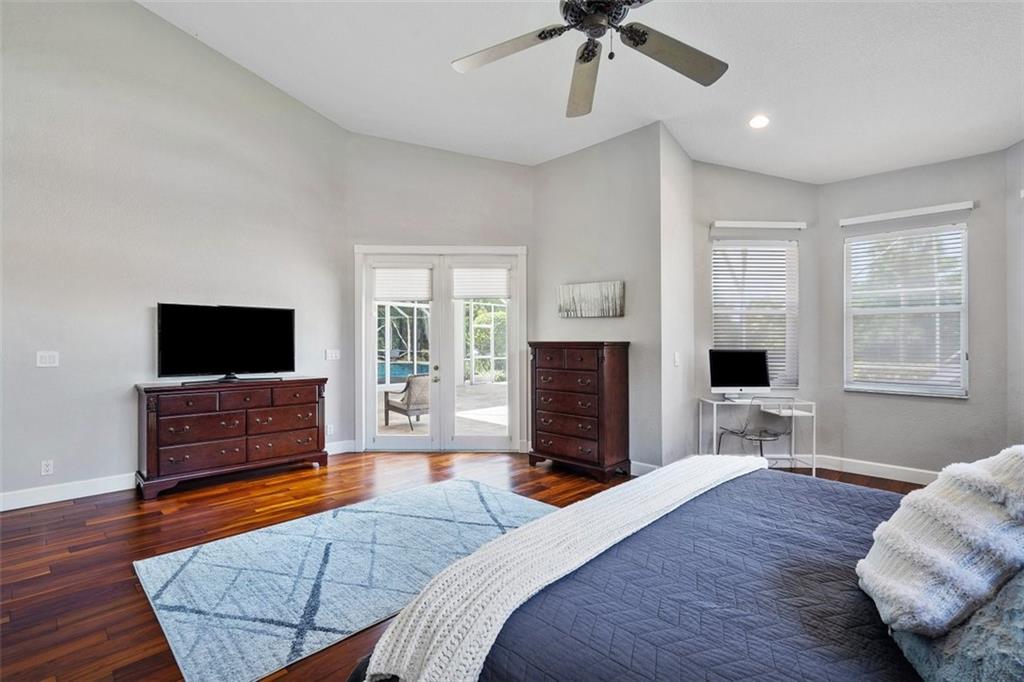 Simply a beautiful estate home with an idyllic setting. A welcoming "rocking chair" front porch adds to the home's splendor. Upon entering, you are greeted by a light & airy interior, Soaring vaulted ceilings & Expansive glass doors/windows allowing for glorious views of the heated pool area & manicured grounds. A huge kitchen/family room area is perfect for large-scale gatherings & seamlessly flows to a very large screened pool area. The kitchen features fine light wood cabinetry, granite, gas stove, newer double oven, walk-in pantry & a breakfast nook with walls of butted glass which is the perfect spot to start your day. The spacious primary suite is a retreat with a peaceful sitting area, stunning wood floors, spa-like bathroom, & large closets. Generator, New pool heater, fruit trees