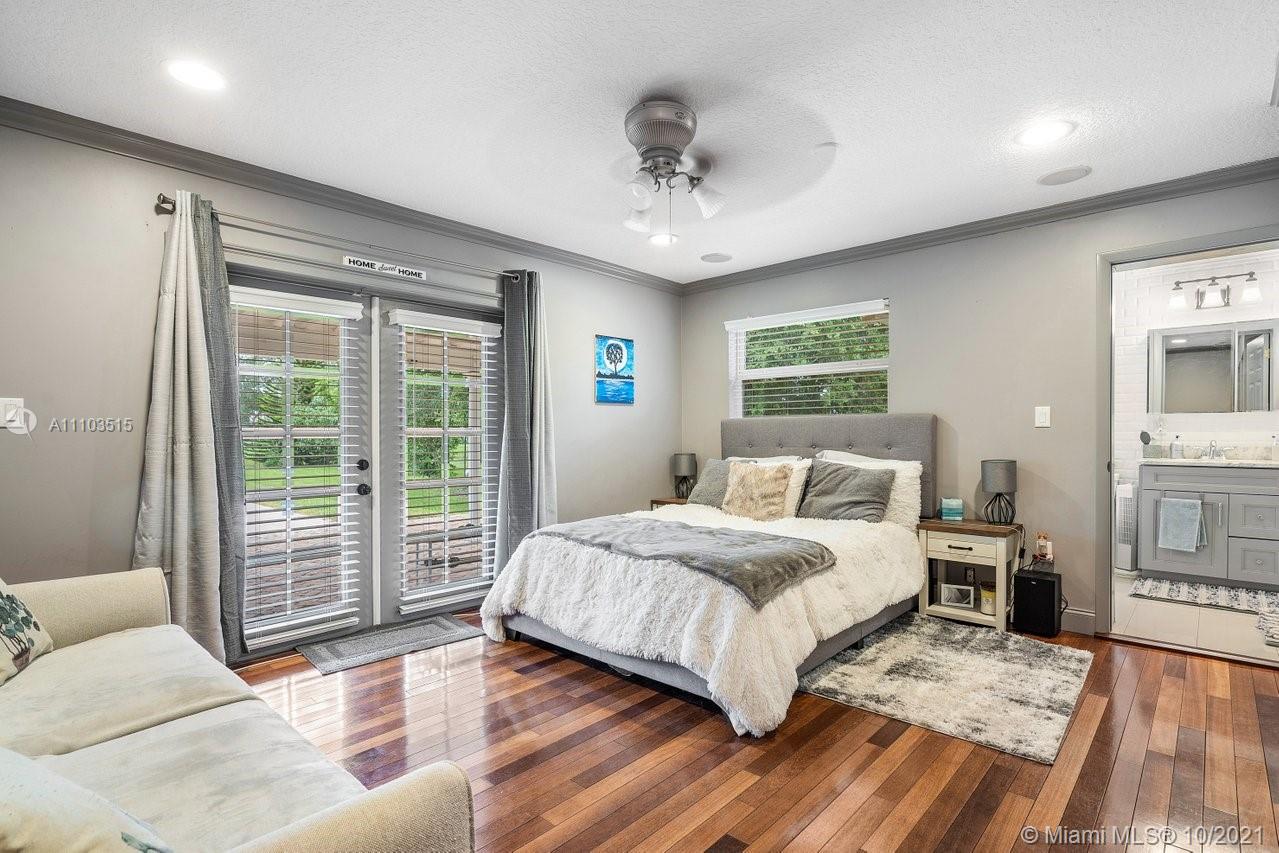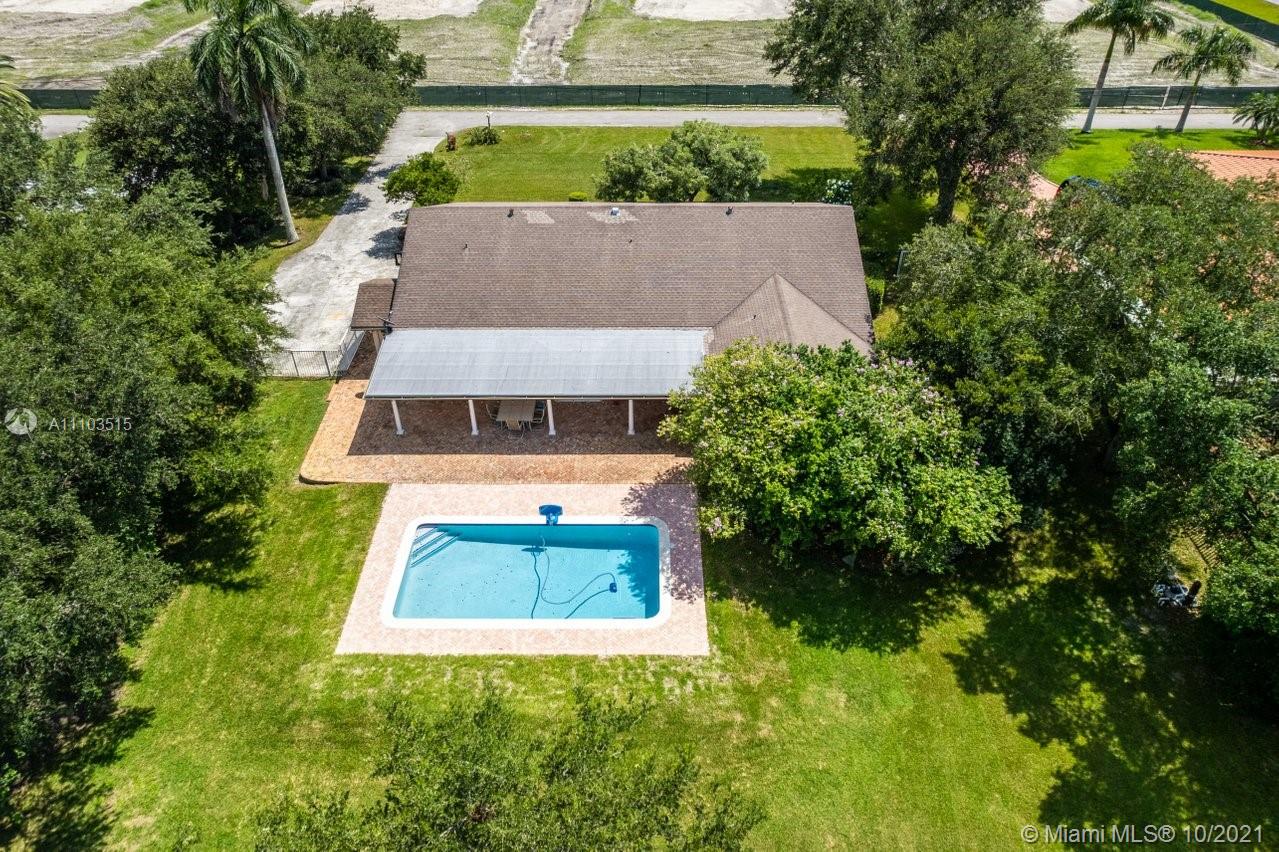 Live the Lifestyle! 4 BR 3 BA 3069 SF SW Ranches waterfront with new pool, separate in law entrance for 1/1 with split bedroom floor plan. Finished with High end Interior features. Huge Chicago bricked patio over looking pool. 1.27 fenced acre. Lush landscaping with avocado and mango trees. New water system. Private cul de sac. Lg Master w/ stunning spa like bath with jacuzzi tub, subway tile and marble. Walk-in closet. French doors lead to small private patio off Master BR. Beautiful trim work, chair railing, custom cabinetry and combo of travertine and real wood floors. Open Kitchen overlooking family room and dining room. Wood cabinets granite countertops. Front formal living rm/office with built in cust cabinetry. Home is in top A rated school district. Build a barn bring your horses!