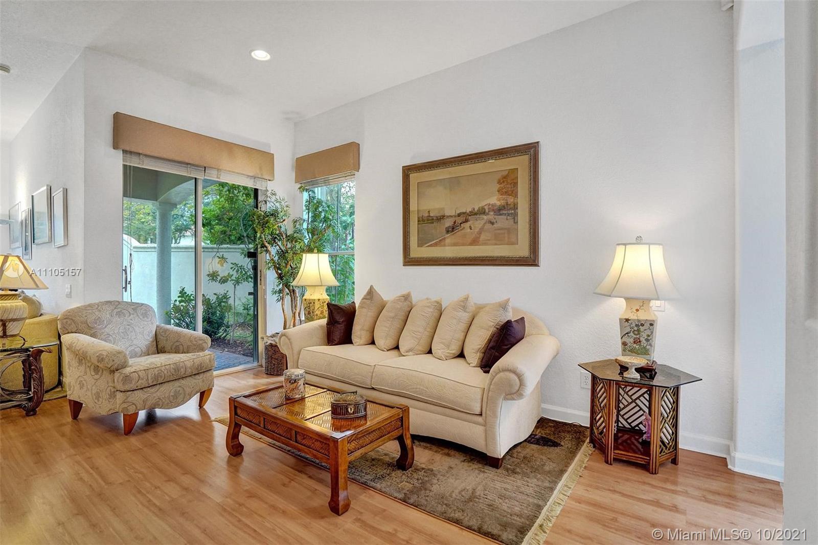 One-story corner townhome in popular guard-gated Harbor Islands is immaculate, bright and spacious with high ceilings, large open kitchen with dining, formal dining area and living room that leads to a private patio and large yard. The main suite has two walk-in closets, separate vanity sink areas and huge separate tub and shower. The three bedrooms, one converted to office/den but easily converted back, wood flooring, many windows with streaming light, private laundry room, two-car garage with driveway and accordion hurricane shutters create a home-like experience within the country club lifestyle community of Harbor Islands. Enjoy pools, clubhouse, gym, tennis courts, park, private marina and a location convenient to the beach, shopping, airports and downtowns. Pet friendly.