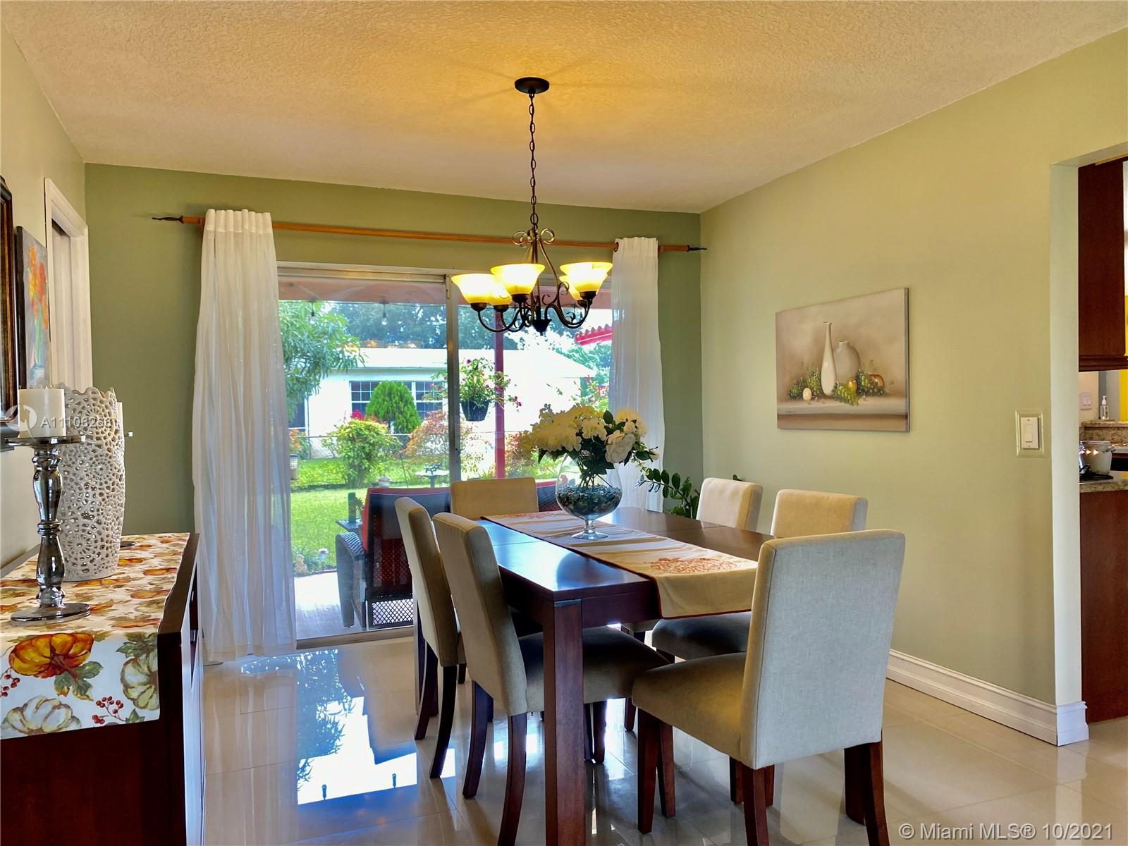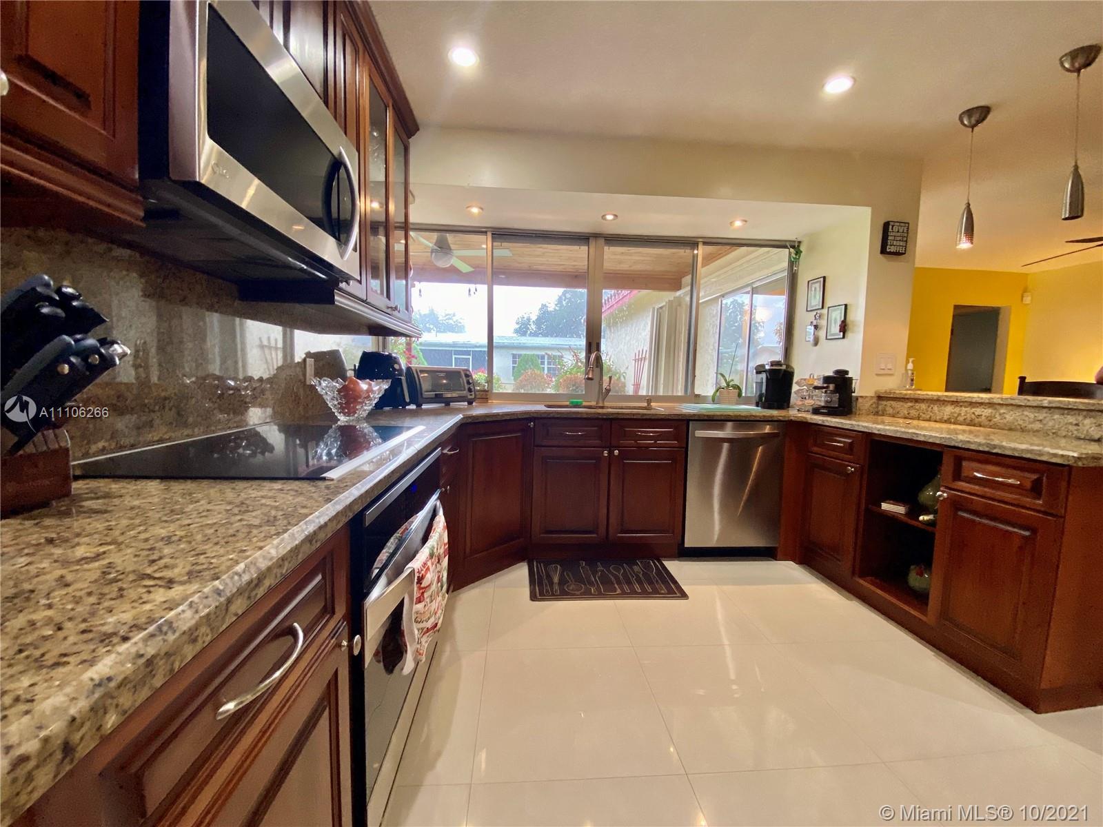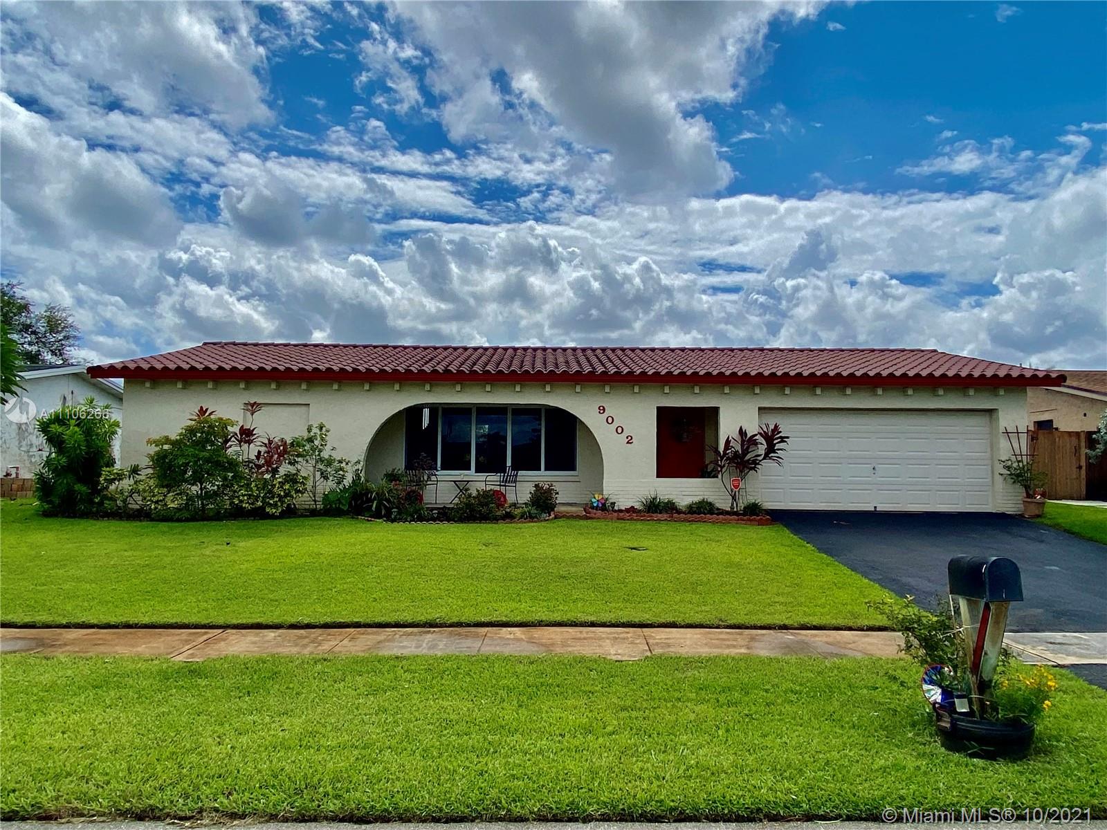 Lovely 4 Bedroom, split plan, 2 Bathroom House, located at a very desirable location in Pembroke Pines. The master bedroom is fully equipped with a walk in Closet and private bathroom, additionally, impact windows and ceramic floor. The home comes with a beautiful fenced patio with fruit trees, mango,pineapple, bananas. Also bromelias, and jasmines flowers for decoration, The Kitchen is finished with wood cabinets, granite and backsplash, and Stain steel appliances, Not to mention plenty of impact windows, and glass doors that allows lots of light , and two car garage, family room. covered patio, < no home owner association dues, new AC and water heater, and you must SEE IT!! The home is elevated and does not required flood insurance.