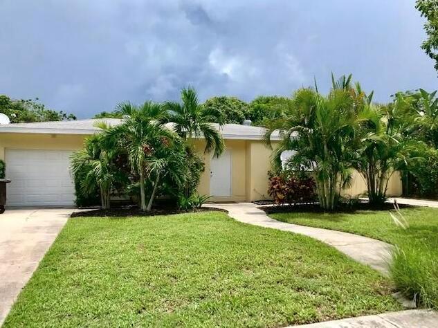 Location. Location. Location. This well kept 2 bed/1 bath home, on a friendly & tree-lined street, rests on an enormous double lot, EAST of Poinsettia, just 1 block from the Intracoastal & mins to downtown. It has terrazzo floors, 2 huge living areas, dining nook, kitchen with real wood cabinets, & a very cool retro bath. Full size front load W/D are in the attached garage. There are 2 driveways for plenty of parking. The back yard is completely fenced with doublewide gates, perfect for pulling in your boat or camper. It also has an open patio, just right for BBQing with friends. The back storage structure can easily be converted to an in-law suite, or add a pool & make it a pool house. No HOA & non-historic designation make this house a rare gem.