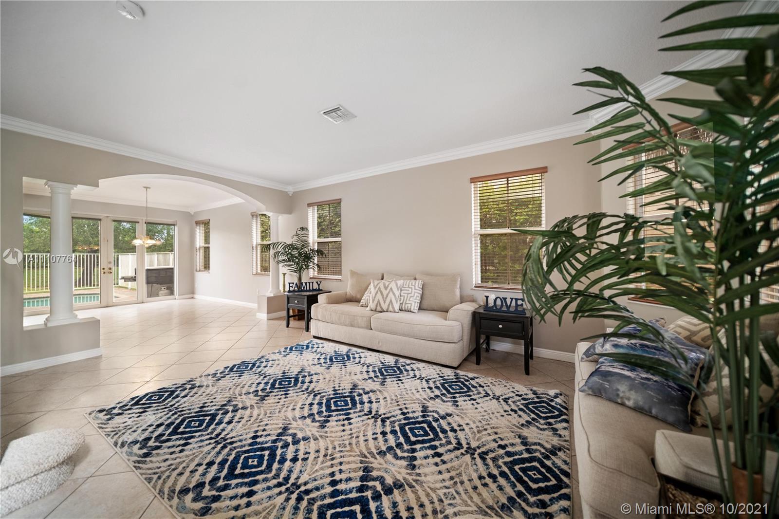 Gorgeous 2 story home with just under 4,000 square feet of living space with 3 car attached garage. This home boasts 4 large bedrooms (master suite), 4 bathrooms, formal dining room, living room, family room and open kitchen (island) with breakfast area. Kitchen features beautiful corian countertops throughout, dark cherry cabinets, off-white tile floors, and crown molding. Downstairs features beautiful tile floors throughout, wraparound staircase, open concept and drenched in natural sunlight. Backyard features custom brick layout, large pool, BBQ area and room for entertaining.