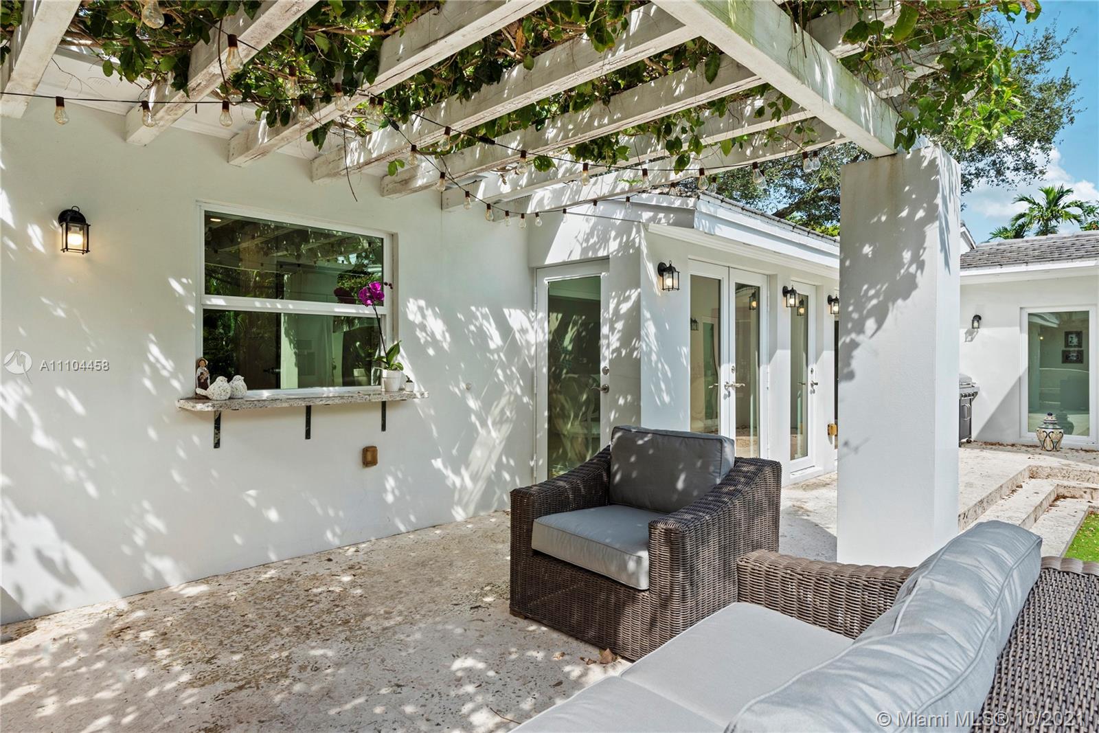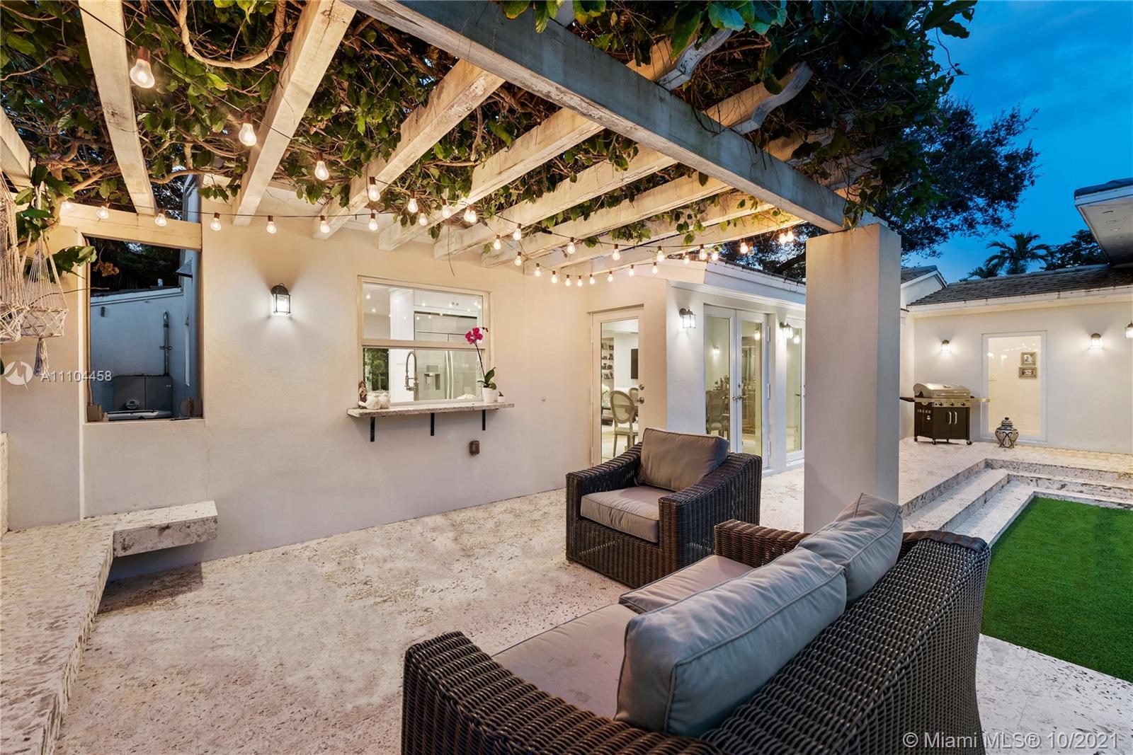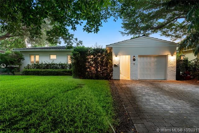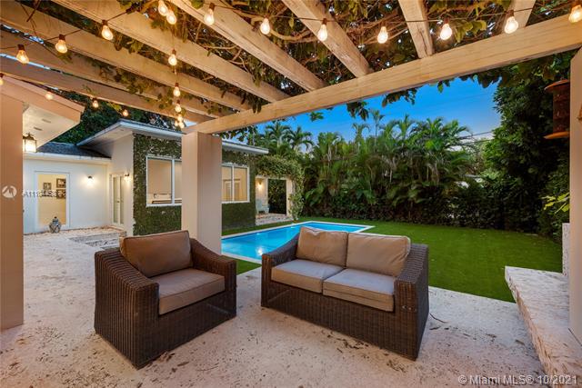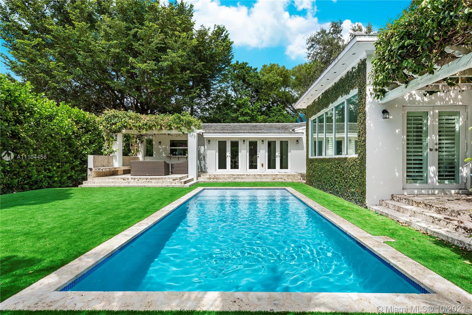 South Gables location at its best. Sitting on a 9,375 sqft lot, this 4 bedroom and 3 full bathroom home was fully renovated in 2017. A Master suite was added with 12 ft ceilings, 2 walk-in closets, a gorgeous marble bathroom with 2 vanities. A brand new salt water heated pool was completed in 2021 surrounded with artificial turf throughout provides for a clean look. A charming pergola with coral rock flooring completes a beautiful and relaxing outdoor setting. Other features include: impact windows/doors, classic style kitchen with stainless steel appliances, all natural color pine hard wood floors, new electrical, PVC plumbing and a 1 car garage. Across the street from the neighborhood family park. Jaycee Park amenities include: basketball, tennis, walking/exercise path, and much more