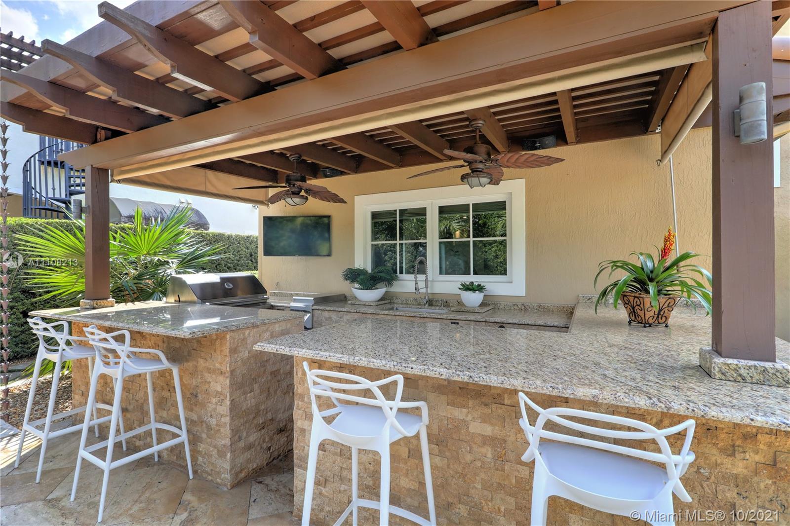Elegant, Spanish-style home perfect for entertaining & comfortable living. Extensively renovated in 2009 and every detail was meticulously selected. Highlights include high ceilings & light-filled living spaces, formal living & dining rooms, gourmet kitchen w/ island connected to the beautiful family room with glass doors opening to the pool area, 2 BD with a Jack & Jill BR downstairs, 2-en suite BD upstairs. The pool patio is surrounded by privacy hedges offers lovely summer kitchen & covered pergola with fireplace. Additional features marble floors throughout staircase & downstairs, wood floors upstairs, W/D upstairs, new plumbing, electric & septic tank, hurricane impact doors & windows. Ideally located near parks, UM, The Biltmore Hotel and the Riviera Golf Course. A true gem!