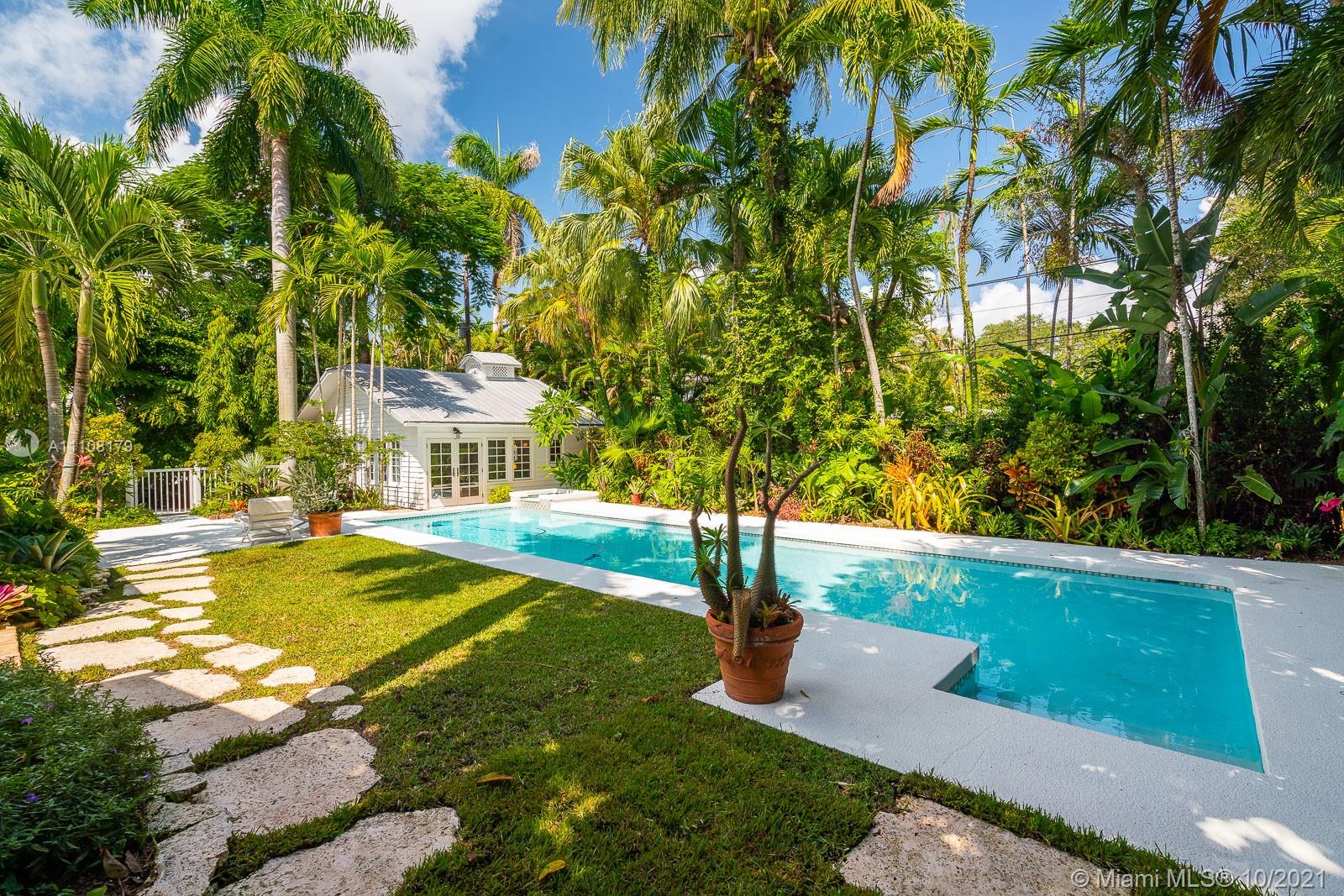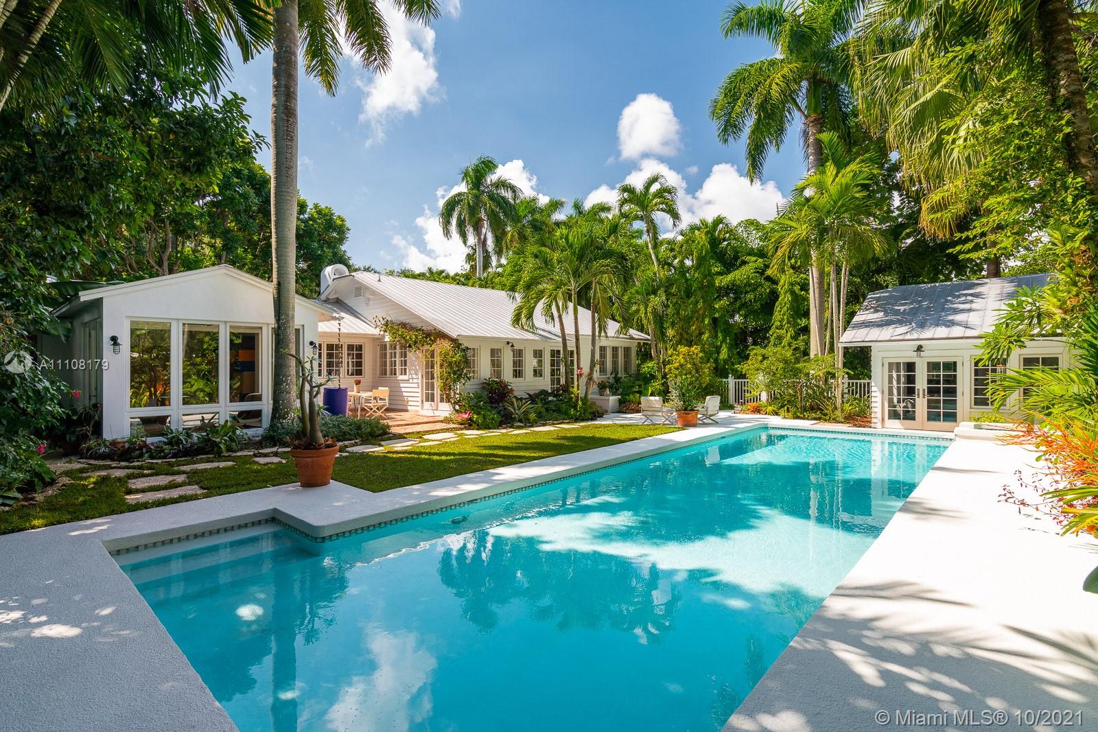 Enchanting Old Florida style pioneer home (estimated to have been built in 1918) with a Coral Gables address and a Coconut Grove vibe. Completely turn-key 3/2 + 1/1 separate guest house. 44 ' lap pool. 100 X 140 lot with recent major installation of native plants/trees. New kitchen with Meile, Wolf & Liebherr appliances. Completely new main bath with Waterworks tile, Penhaglion cast iron tub & Barber Wilsons faucets & shower fixtures. New impact glass doors & windows (some original windows preserved & protected with roll-down type shutters). Original Dade County pine floors. Wood burning fireplace. Formal dining room. Den/office/library. Bike, Uber or walk to Grove restaurants, Merrick Park, Fairchild Gardens, Commodore Trail. A home with character, history & flawless, turn-key condition.