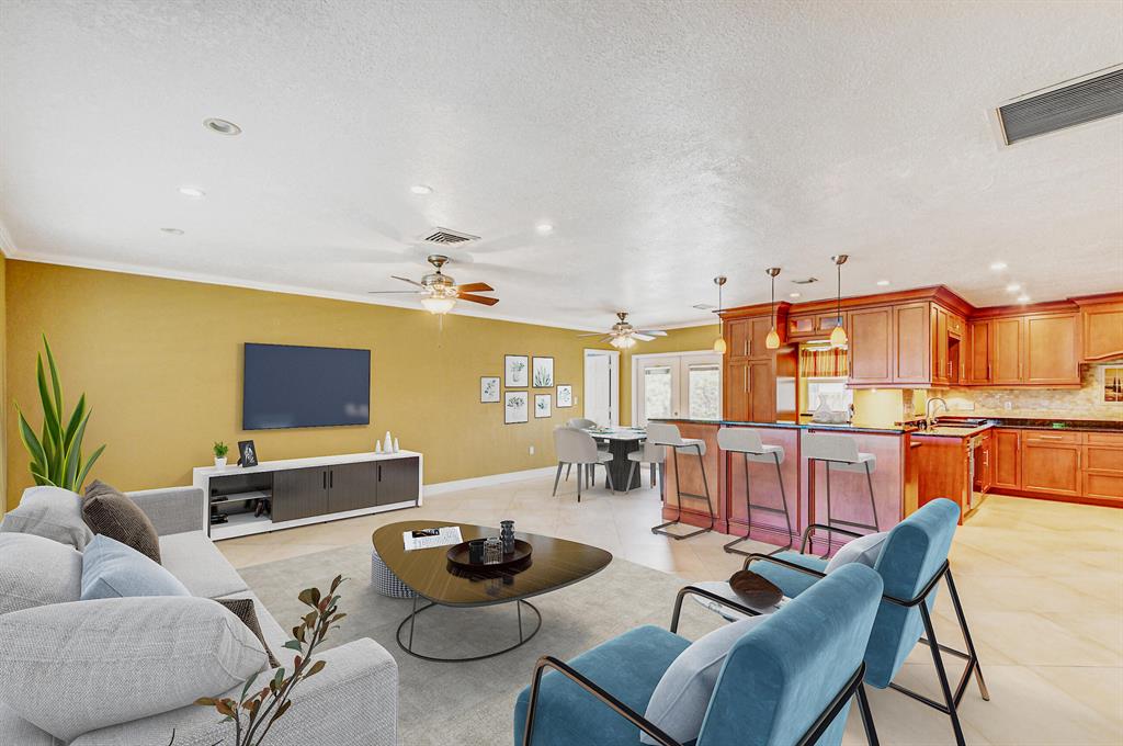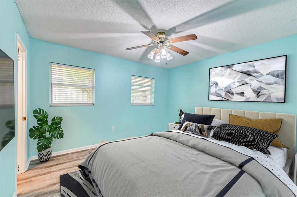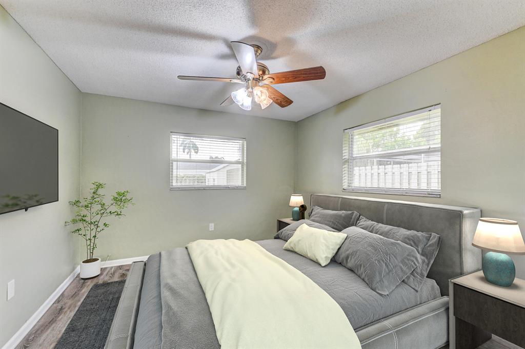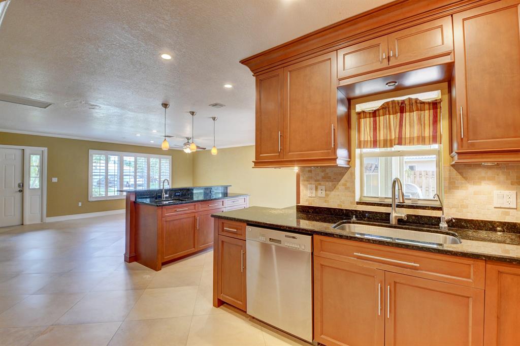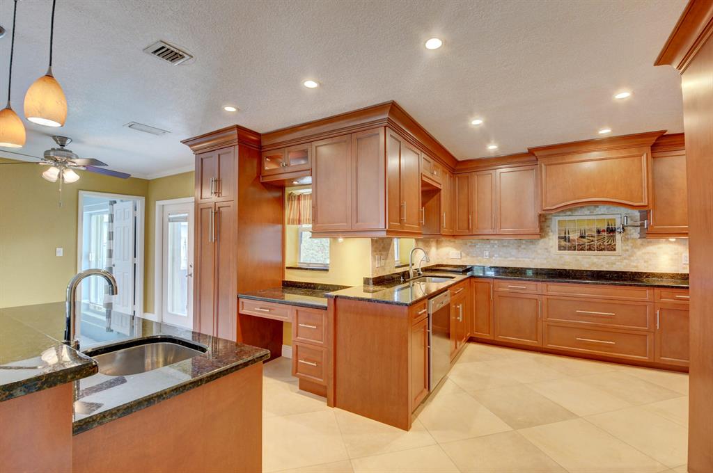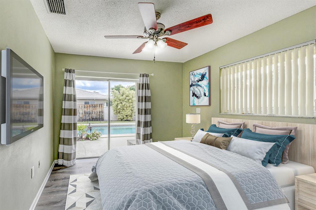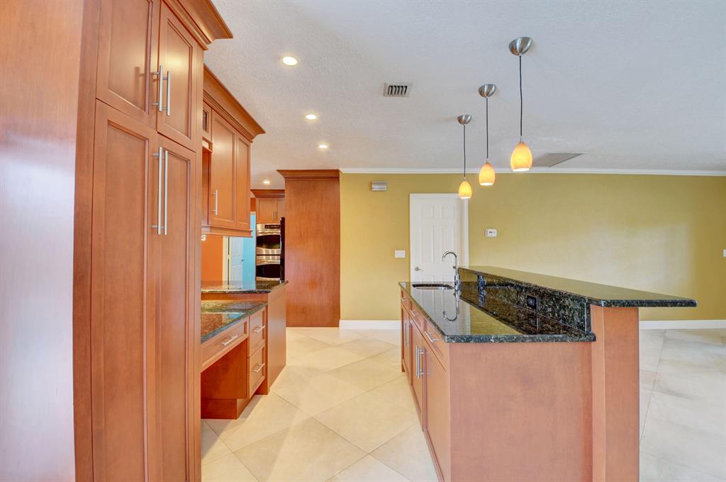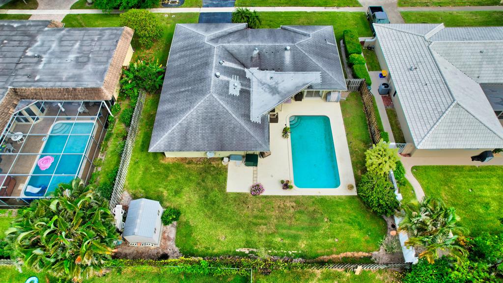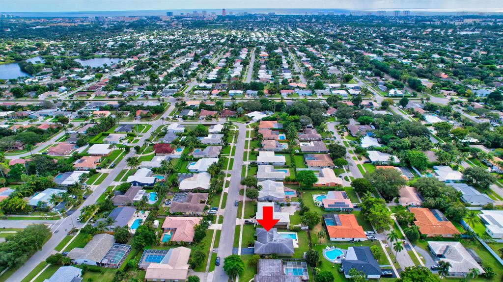 True 4-bedroom pool home with a 2-car garage in the popular community of Boca Raton Square. No HOA, zoned for A rated Addison Mizner (.9 miles), Boca Raton Middle (1.9 miles) and Boca Raton High Schools (2.4 miles) and just 10 minutes to the beach! The home has complete hurricane protection, is wired for a generator and has no overhead power lines! The spacious kitchen is open to the living/dining area and has plenty of storage including a pantry with pullout drawers, double wall ovens, wood cabinets, pot filler faucet, granite counters and an island with sink. The living areas have neutral porcelain tile floors and all bedrooms have wood-look vinyl plank floors. Plantation shutters decorate the windows in the living room and primary bedroom and French doors lead from the dining area to