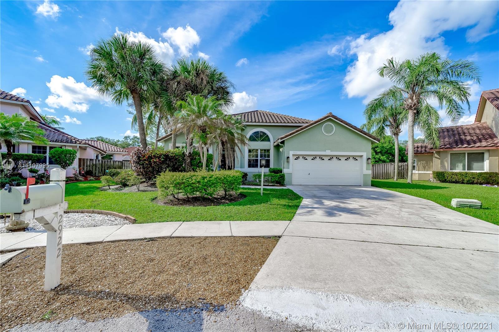 Location Location Location!!!! TOP SCHOOLS IN BROWARD COUNTY! Don't miss this 3/2.5 plus den, 2 car garage, CULDESAC LOT, single story home with room for a pool in the desirable EMBASSY LAKES. Spacious, open floor plan, split bedrooms, updated baths, chair rail in formal areas, high ceilings, updated kitchen, upgraded laminate floors and ample closet space. Roof 2010, Water Heater 2019, A/C inside 2016 and outside 2020. Home is priced to sell. Embassy Lakes is a resort style community, no approval process, 24 hr guard gated, community heated pool, clubhouse, volleyball courts, multiple playgrounds, gym, tennis/pickleball and basketball courts.