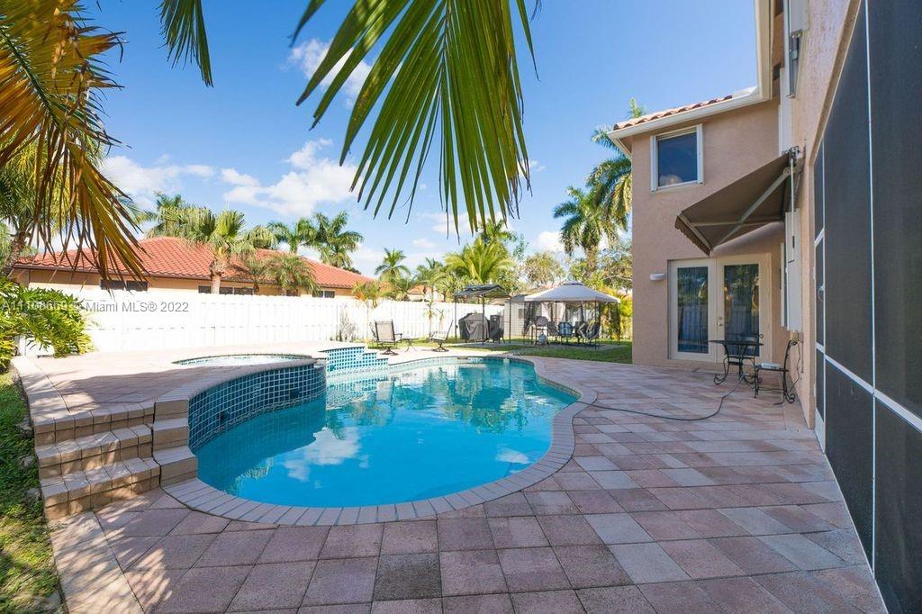 Welcome to your new home! This amazing 4 bed/3 bath corner lot pool home in Windsor Palms in west Miramar boasts 20 ft ceilings, an oversized master suite with dual showers & his/her walk-in closets, 3 car garage, heated salt water pool/spa & large patio for entertaining. Open upstairs loft area with bar. 1 bed/bath en-suite downstairs. Gated with 24- hour security, HOA only $155/month. All new/recent: both A/C units (2020), tankless water heater, irrigation/sprinkler pump, pool pump, exterior paint. The home was built in 1999 & has been well maintained. 4,050 SQFT (per Appraisal) provides 2,288 downstairs and 1,762 upstairs living space & sits on just under 1/4 acre. Bring your clients... and send your offer.