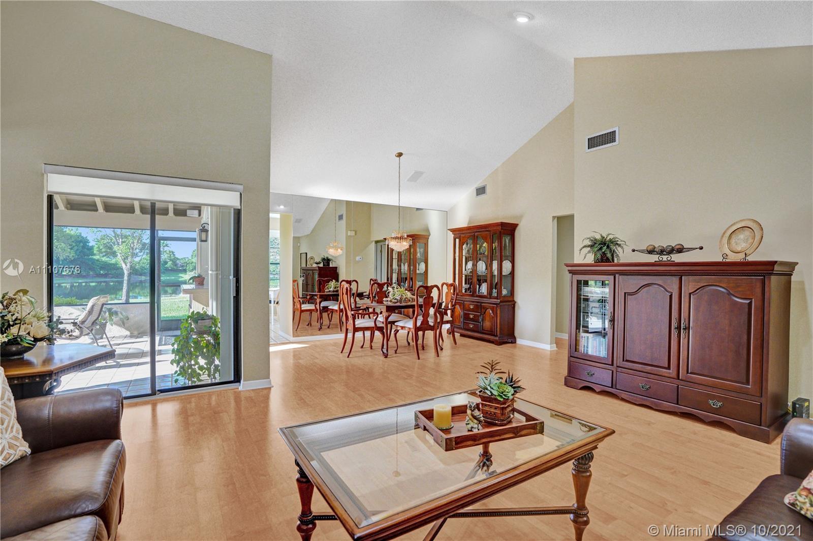 Stunning lakefront home where you can relax and kick back in this highly sought-after neighborhood of Country Isles. A spacious screened and tiled patio is a perfect retreat to sip your morning coffee or enjoy an evening dinner. Wood-grain flooring and vaulted ceilings in this home showcase a beautiful great room and a Modern Kitchen making it perfect for entertaining and family gatherings. Immaculately maintained home has newer appliances including, Stainless Steel Appliances, air-conditioner. The low maintenance fee covers lawn maintenance, community pool, and reserves. Within easy walking distance to three passive parks and highly rated Weston schools with quick access to major highways. A Perfect Lakefront Home that won't last!! Note:(actual date to appear on MLS was 10/7/2021)