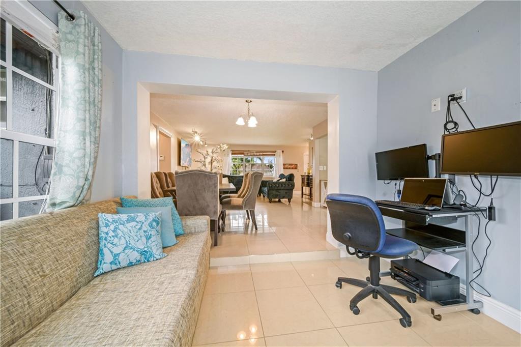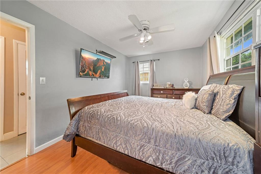 Beautifully updated home with pool in a quiet and family-oriented neighborhood. Renovated bathroom, porcelain floors, and new kitchen with stainless steel, high-end, Samsung appliances. Tankless water heater for great energy savings and a large and completely fenced-in backyard with a amazing above ground pool and legal outdoor shed. New pump and fully-functioning sprinkler system. Florida room was partly used as a third bedroom.