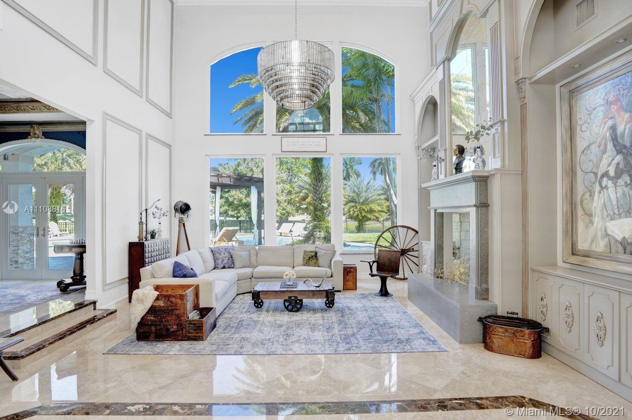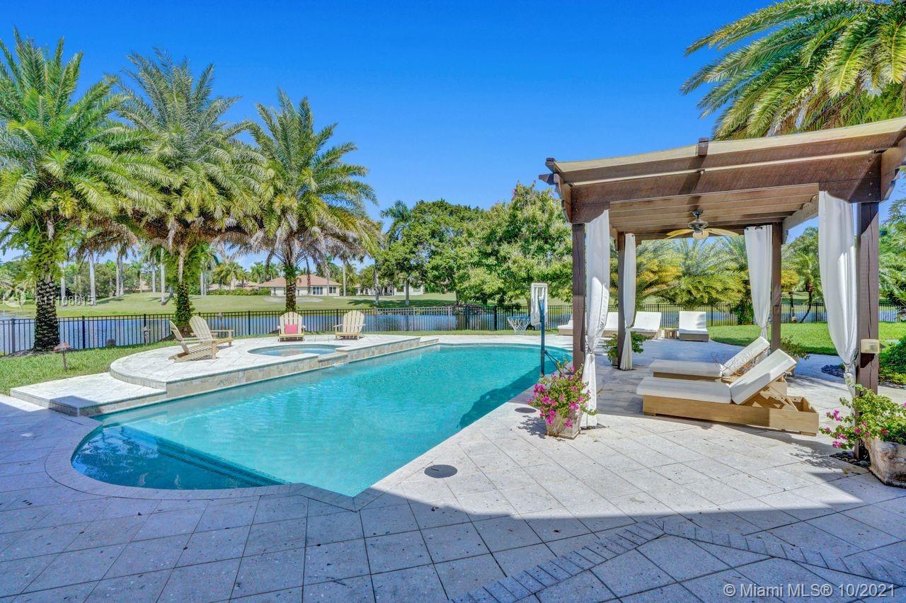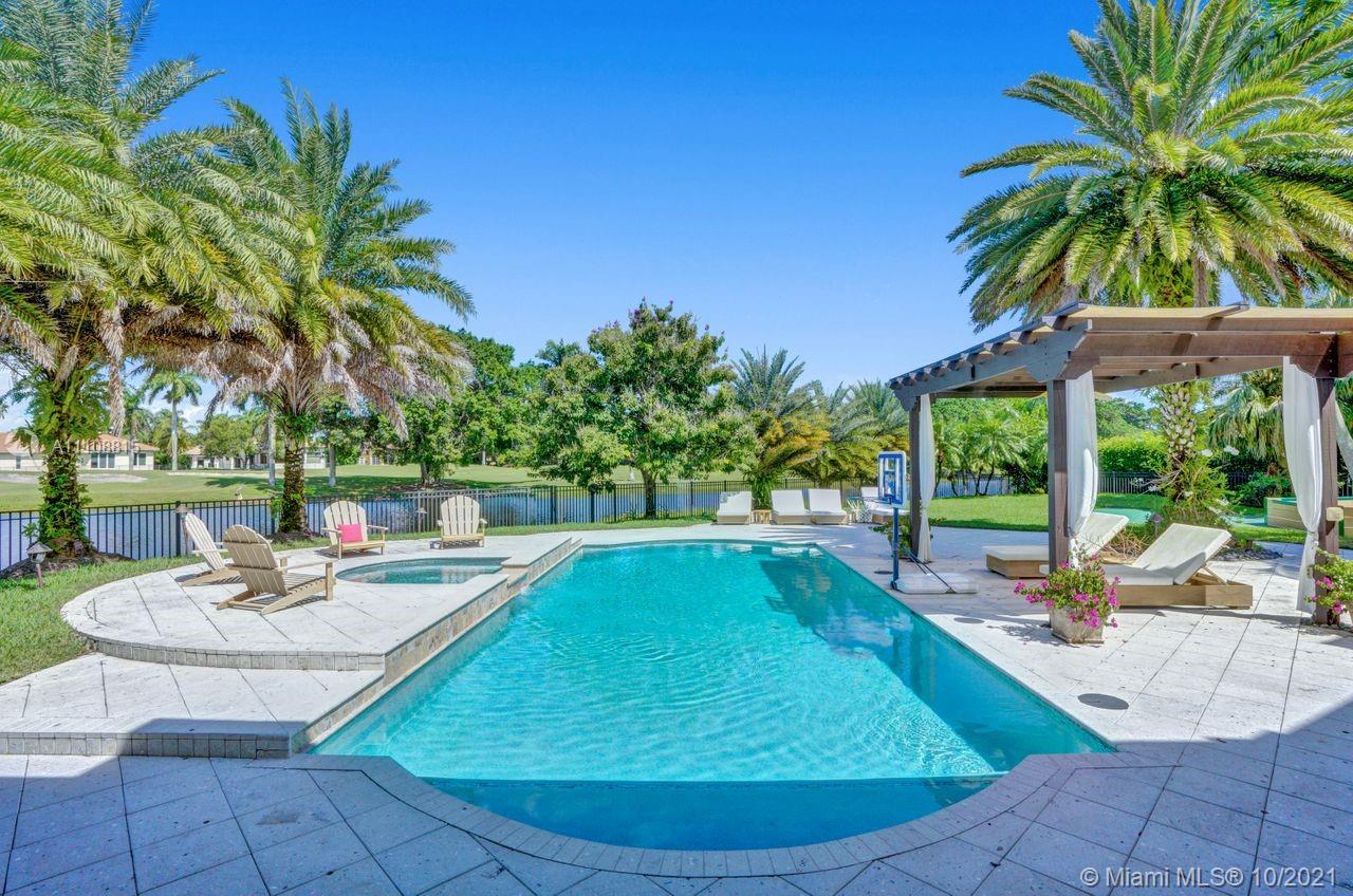 Absolutely STUNNING estate perfectly placed on a magnificent cul-de-sac lot surrounded by water with endless golf views! Located in the exclusive neighborhood of Riviera in Weston Hills Country Club this immaculate home boasts 6 bedrooms, 7 baths, 2 half baths PLUS expansive office, home theater & home gym. Features include: unparalleled finishes through-out, living room with coffered ceilings, butler's pantry, one of the MOST beautiful kitchens you can ever imagine with large center island & top of the line appliances open perfectly to the family room with tranquil views of the property. In addition, Master bedroom suite with balcony & luxurious bath, a perfectly designed children's wing with loft, a summer kitchen, resort style pool, basketball court, impact glass & a newer roof!!