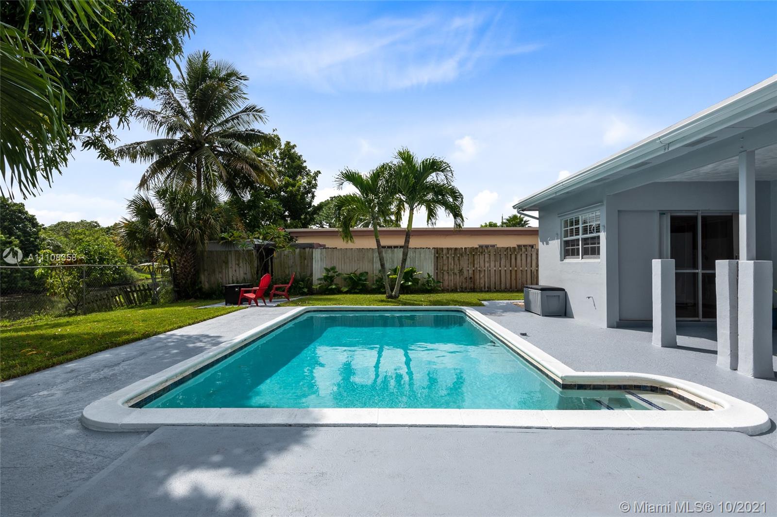 Spacious home on oversized corner lot (10,204 SQFT) in Sunrise with no HOA features 2 bedrooms, 2 bathrooms (1 as Cabana Bath), 2-car garage, pool (resurfaced in 2019), and is on the water with a fully fenced back yard. Interior features include a huge living room with lots of natural lighting, separate dining room, kitchen with updated wood cabinets and sliding door access to the covered patio and pool area. Additional features include newer AC (2yrs old), freshly painted exterior, driveway with pavers, courtyard area, covered patio and a great outdoor space with fruit trees perfect for entertaining and outdoor living.