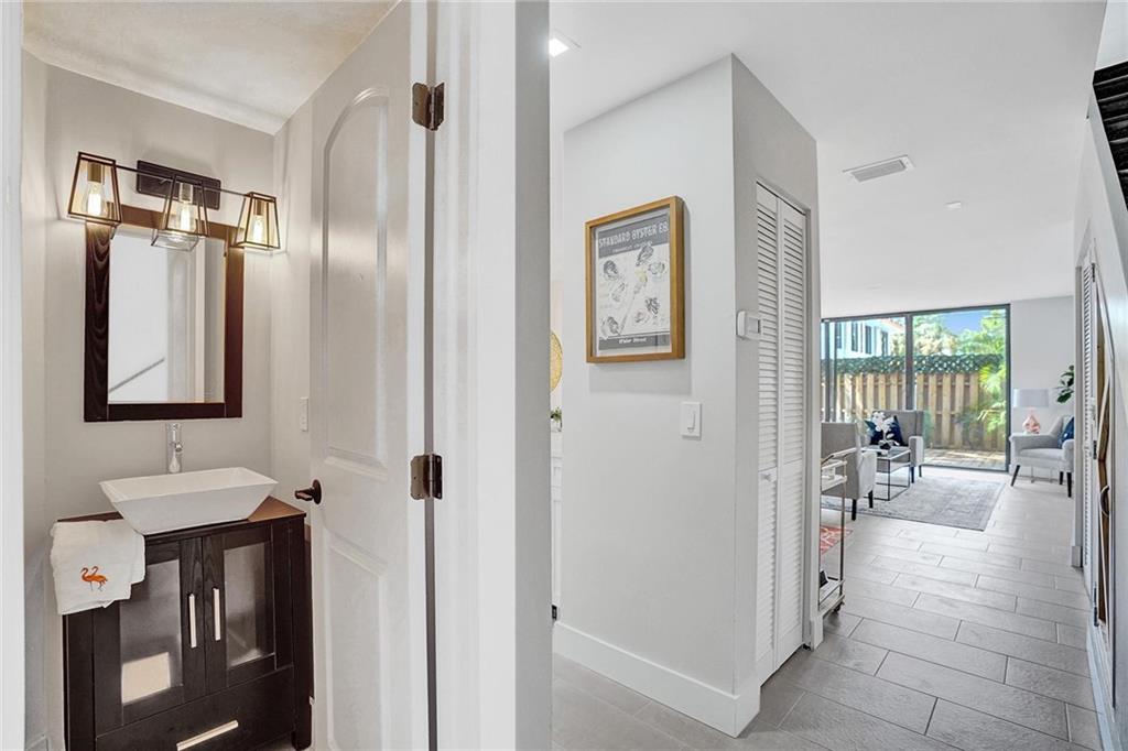 Spectacular and completely renovated 2 bed, 2.5 bath, corner-unit townhome located in East Ft. Lauderdale! Large and spacious open floor plan with an extensive wrap-around back yard, perfect for entertaining. This turn key townhouse consists of a brand new, freshly remodeled kitchen, bedrooms and bathrooms, a plethora of natural light and direct access to the pool area. Other new features include: All Samsung stainless steel appliances, Carrera quartz countertops with custom white maple wood cabinetry, new water heater, custom kitchen nook, walk-in closets, French doors and 2 deeded parking spaces. The location is perfect, as you can walk to local shops, restaurants, bars and much more. Walk/Bike to the beach and many other entertainment venues! *Showings at Open House this Saturday*