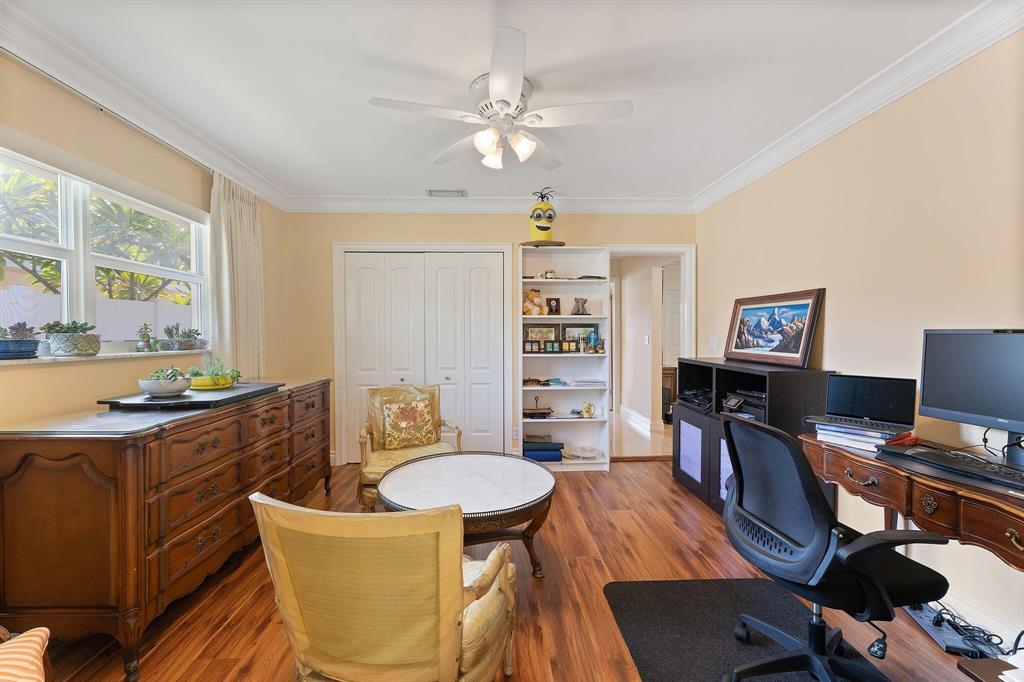 Location, location, location! Fantastic turn-key 3 bedroom/ 2 bath pool / 2 car garage home in highly desirable east Boca Raton! Just one block from Addison Mizner Elementary and Middle School and cycling distance to the immaculate Boca Raton public beach parks (less than 2.5 miles!). Super close to shopping, entertainment, and easy access to major roads. As you walk through the front door, you can appreciate how this impeccable home is filled with natural light. This house has been cherished by its owner who is now moving out of state and it shows. All crown molding and large baseboards through this home, 23 x 23 Jerusalem Stone tiles in the living areas and laminate flooring in all bedrooms. Windows have plantation shutters, Hunter Douglas window treatments, and custom drapes.