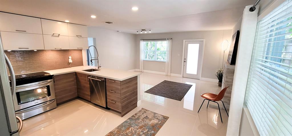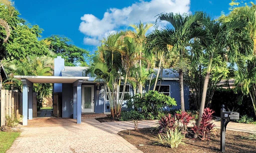 Welcome to Bungalow Blue! Hot South Middle River/Progresso location. Wilton Drive entertainment just blocks away & Fort Lauderdale Beach minutes from the door. This Midcentury gem is the turnkey primary or vacation/income property you've been looking for! Open concept living/dining, 2/1 w/bonus rear sunroom/office/den/guest space. Private, fully fenced and gated back yard with room for a large pool. Garden views from every room. 24X24 porcelain floors throughout. All impact windows & doors, modern lux kitchen w/stainless appliances, frosted glass interior doors, custom closets, laundry/storage, covered patio and carport, circular driveway, lush, mature tropical landscaping and a well-fed sprinkler system. Total interior reno in 2016, all new HVAC 2017 & new roof 2018. Owner/Agent.