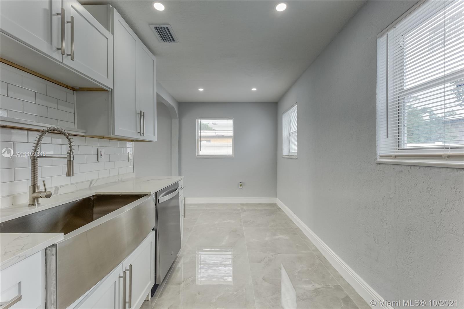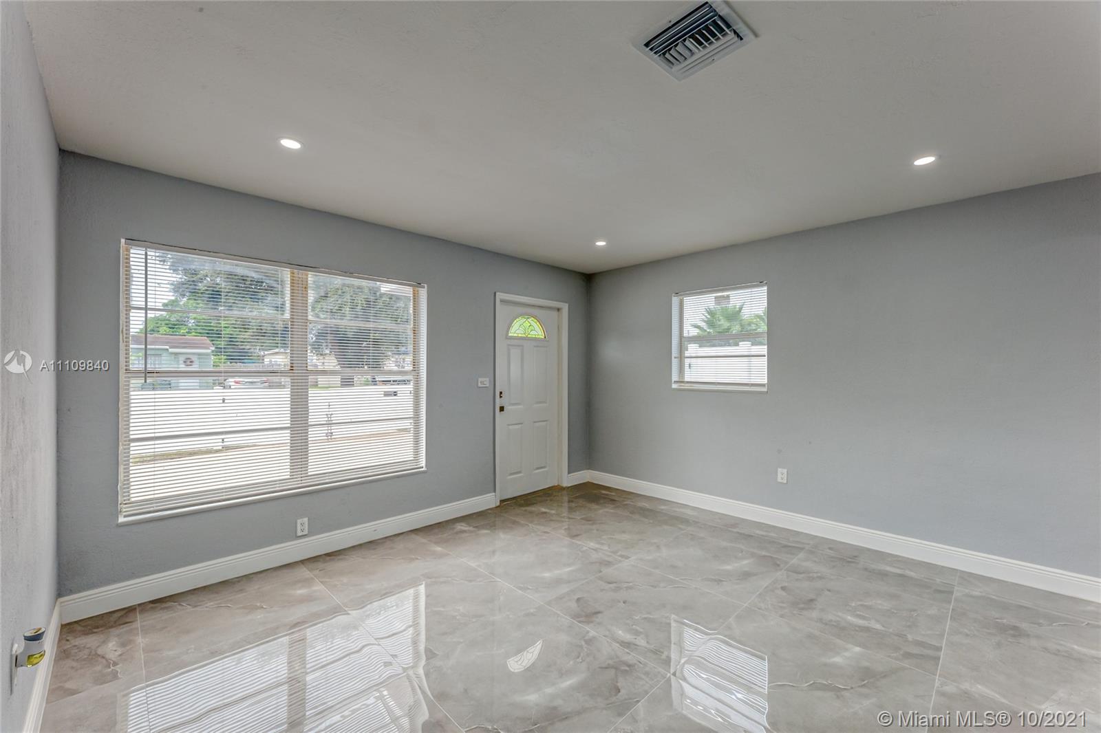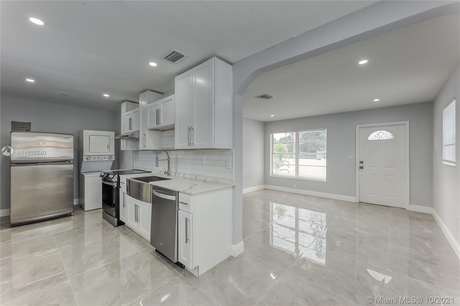 This is a charmingly updated home that offers 3 bedroom and 1 bath, quartz counter tops, farmers sink, ss appliances, new shaker kitchen cabinets, recessed lighting, tile floors throughout, ceiling fans in all bedrooms, organizers in the closets, freshly painted interior and exterior, circular driveway with plenty of parking, and a newer pvc privacy fence with two entrances big enough for a boat, rv, large truck...etc, and a spacious backyard. This home is a jewel and won't last long. Close to highly rated schools, 441, the Turnpike, I95 and other major highways for easy access throughout South Florida.