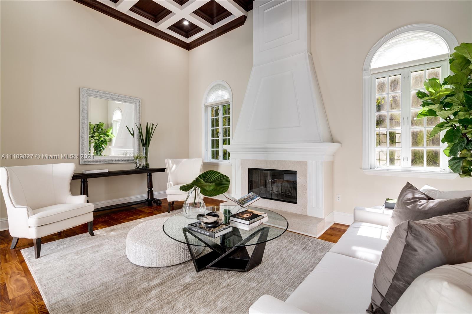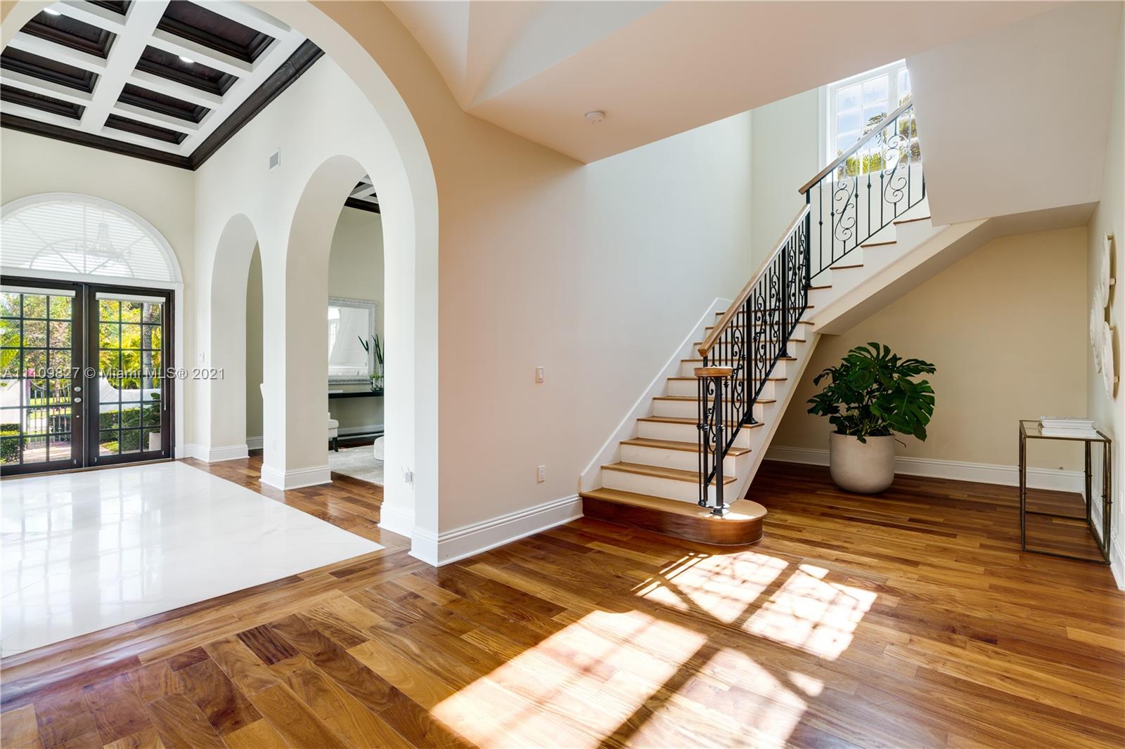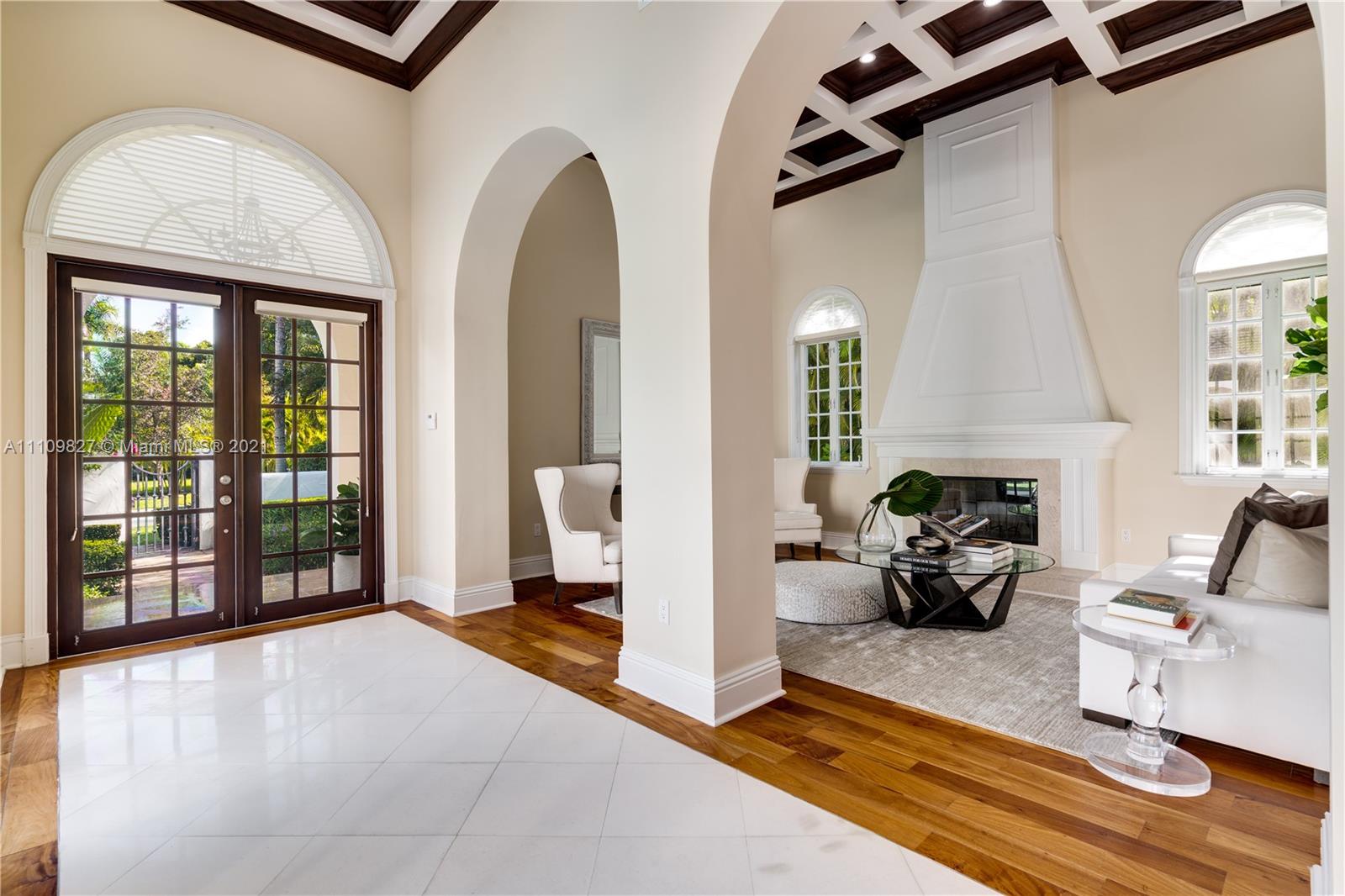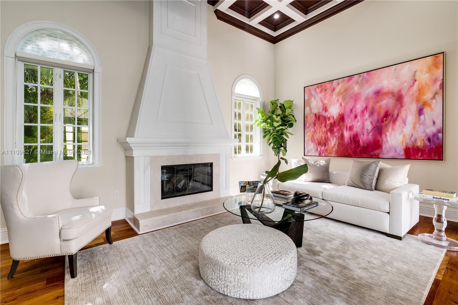 There's a magical intersection where Coral Gables and Coconut Grove meet, there you'll find this Tuscan-inspired residence that plays tribute to classical Mediterranean architecture while embracing modern sensibilities. Built in 2008, this handsomely designed two-story home impresses all with gleaming hardwood floors, fireplace, coffered ceilings, bold arches, and a charming ambiance. The formal dining room is large and gracious and adjoins a large kitchen/family room with an eat-in bar. All bedrooms are ensuite. The primary bedroom has two full baths and two generously sized walk-in closets - perfect for storing copious amounts of resort wear that you will undoubtedly wear year-round in the glorious pool and patio area. Impact doors/windows & room for elevator. A Very Special Home.