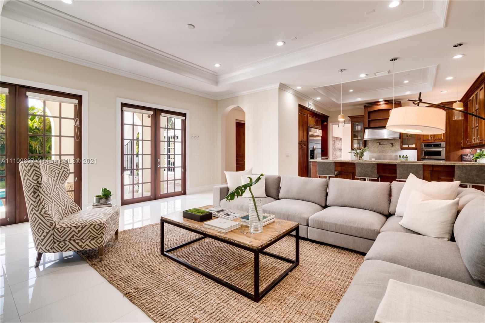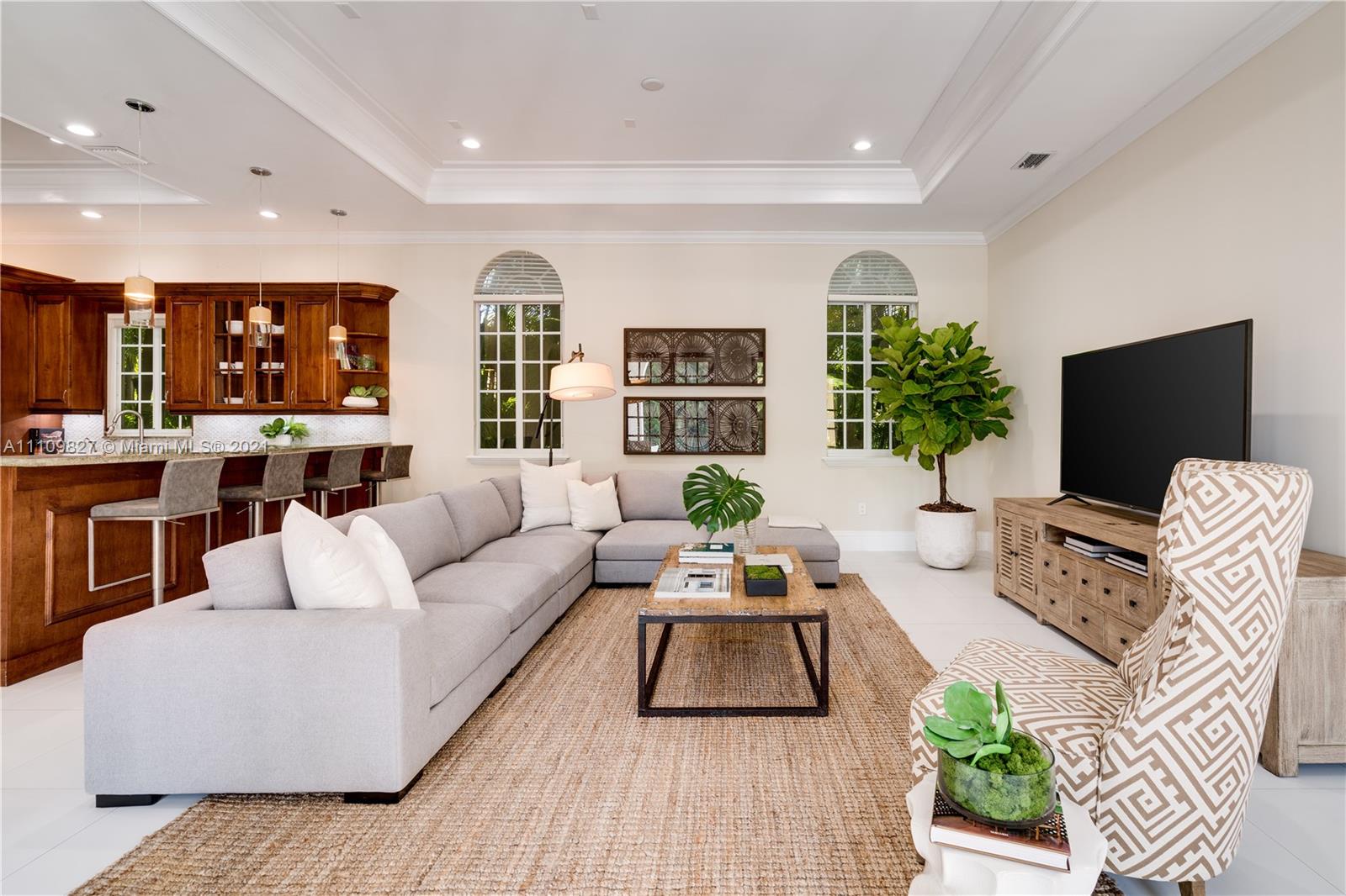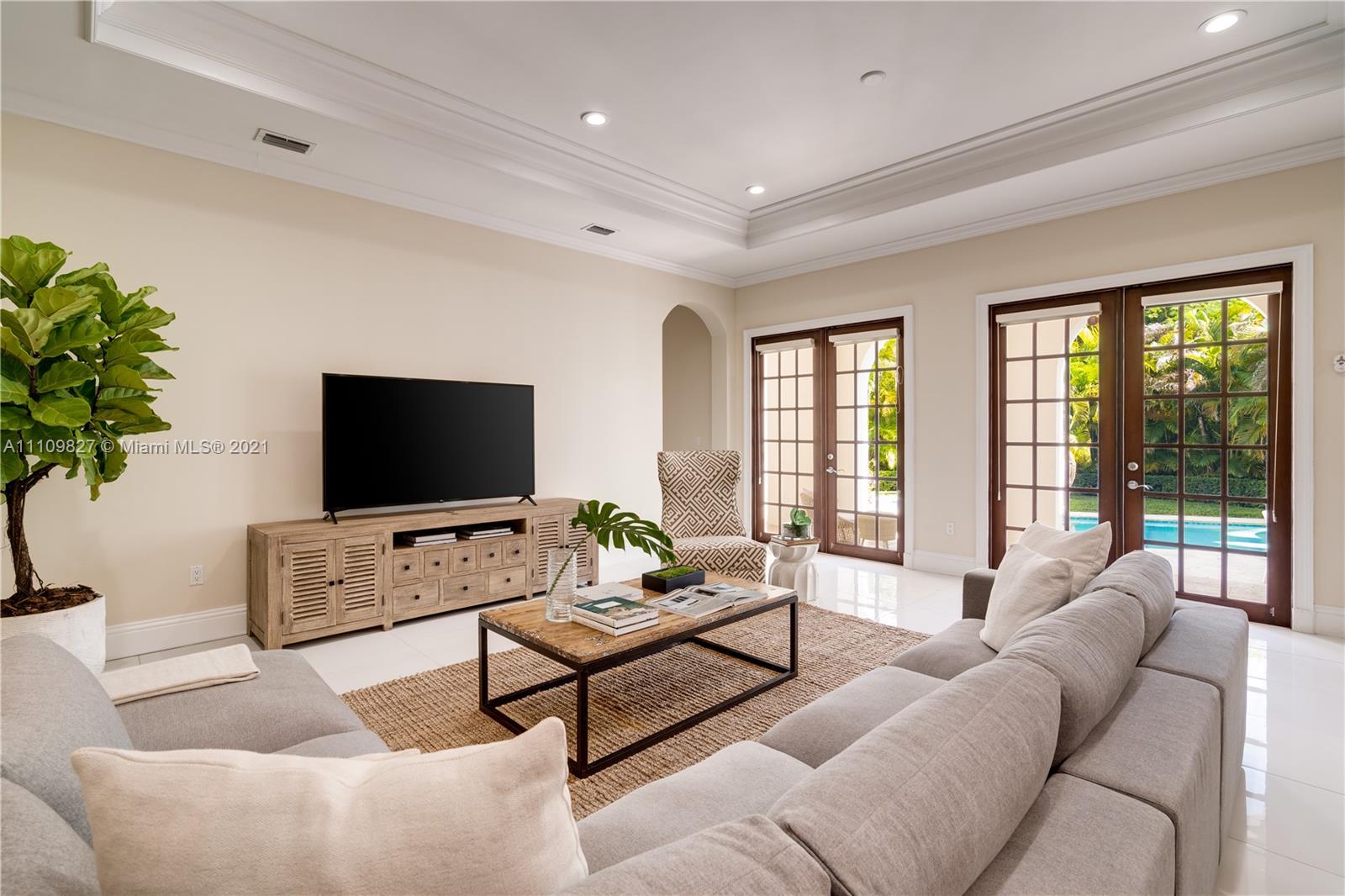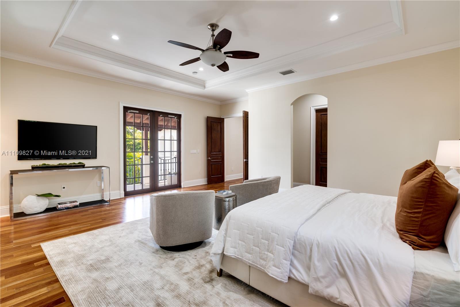 There's a magical intersection where Coral Gables and Coconut Grove meet, there you'll find this Tuscan-inspired residence that plays tribute to classical Mediterranean architecture while embracing modern sensibilities. Built in 2008, this handsomely designed two-story home impresses all with gleaming hardwood floors, fireplace, coffered ceilings, bold arches, and a charming ambiance. The formal dining room is large and gracious and adjoins a large kitchen/family room with an eat-in bar. All bedrooms are ensuite. The primary bedroom has two full baths and two generously sized walk-in closets - perfect for storing copious amounts of resort wear that you will undoubtedly wear year-round in the glorious pool and patio area. Impact doors/windows & room for elevator. A Very Special Home.