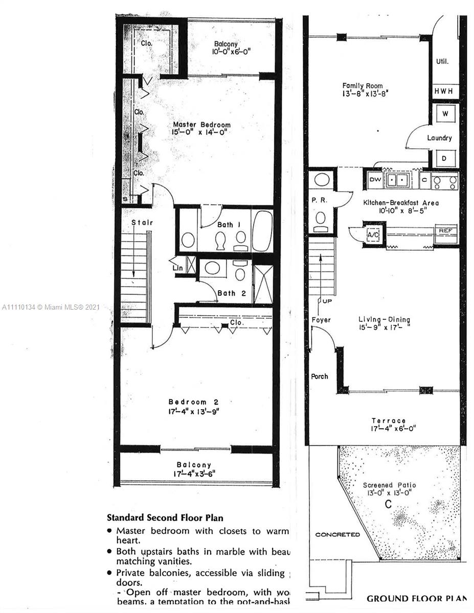 Originally a 2 Bedroom / 2.5 Bath 2 story townhouse converted to 3 bedrooms/2.5 baths. Can be returned back to original layout. All tile floors, updated kitchen, 2 assigned parking spaces. Tenant occupied. Live in a garden townhouse steps from the beach, one of Key Biscayne's most sought after communities. Can be shown on Sunday mornings only based on tenants requirements. Next available showing is for Sunday October 31, 2021 from 9:00 am to 11:30 AM. Current tenant lease till April 15, 2022. Please review the 360 walkthrough photos in virtual tour link.