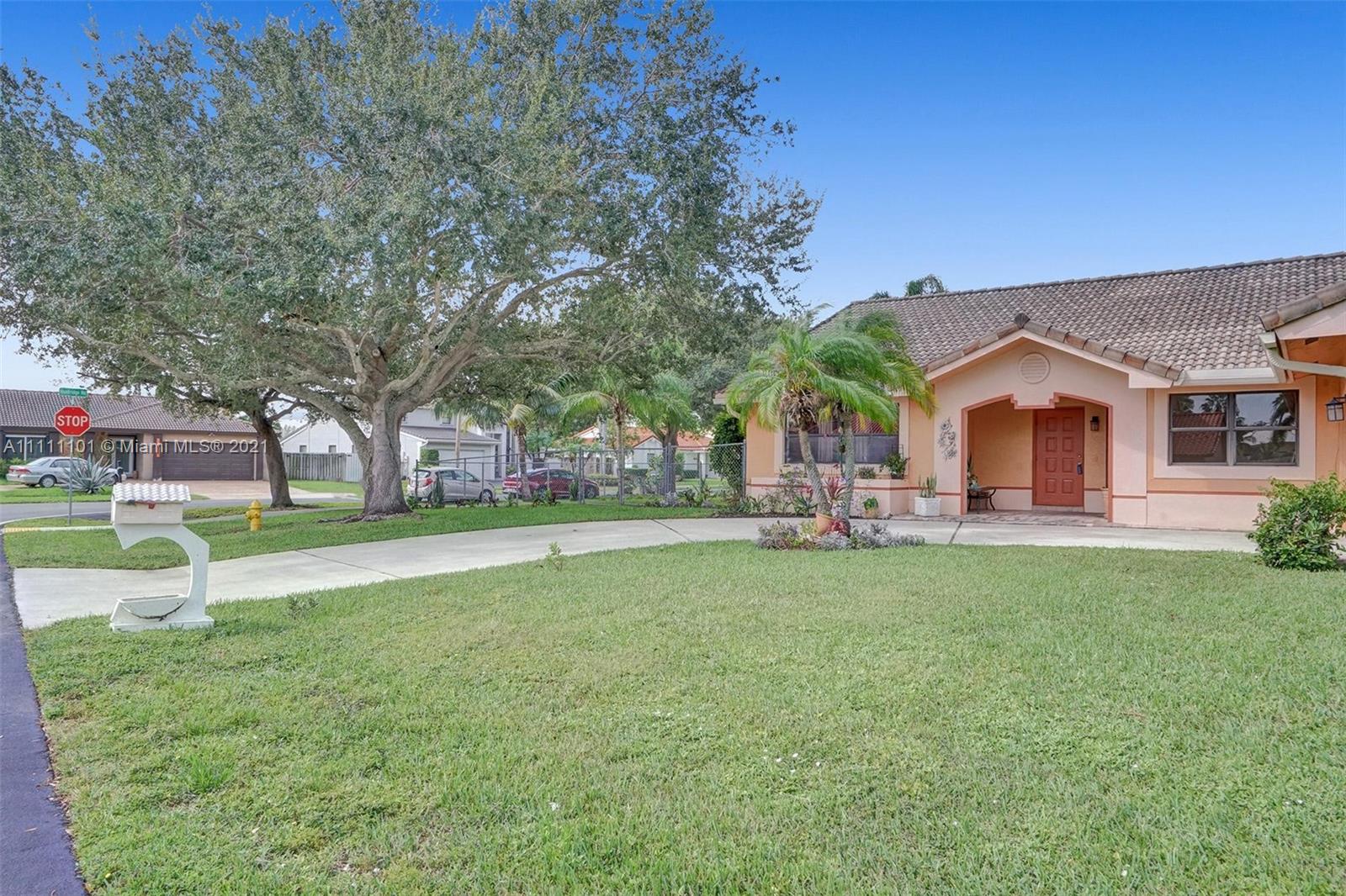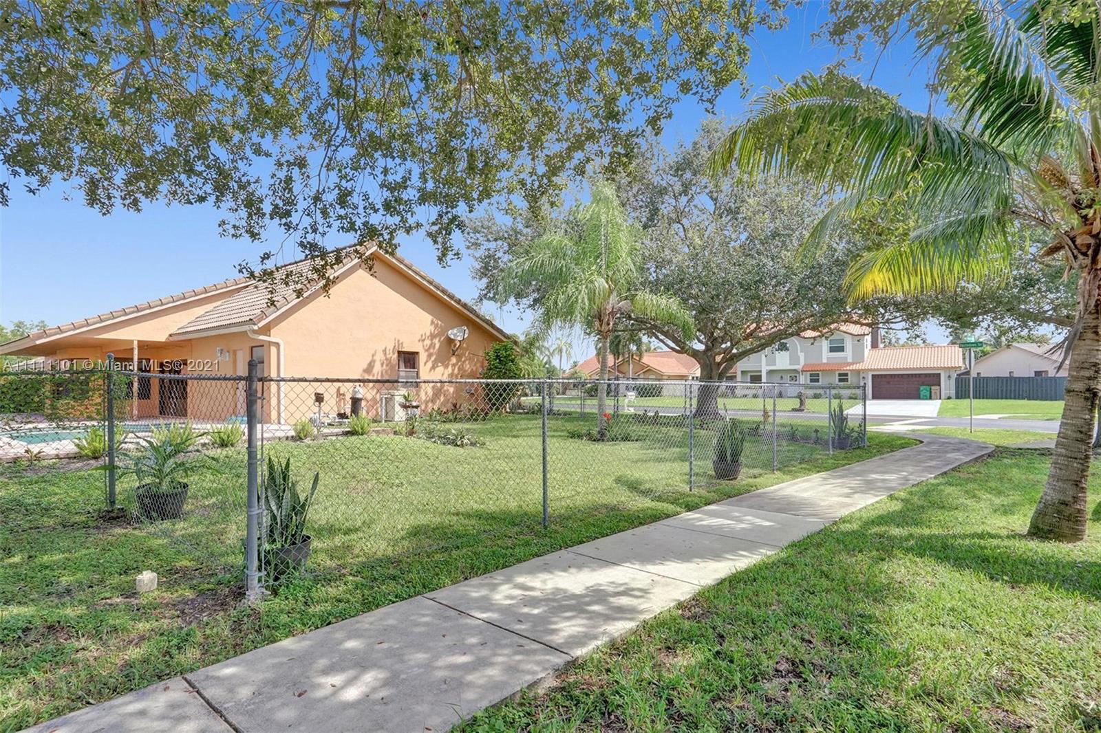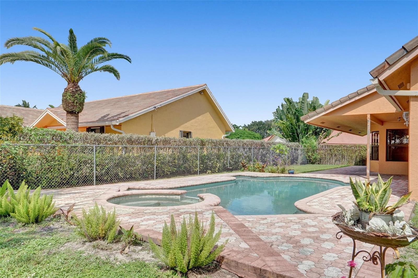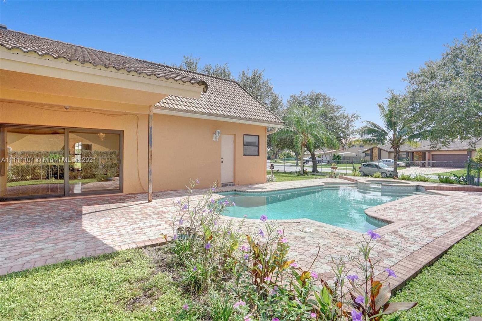 Stunning 3/2 single-family home on an oversized fenced-in corner lot in one of Davie's most desirable neighborhoods, Ivanhoe at Hawks Bluff. Feel at home pulling into your semi-circular driveway. This lovely home has the perfect layout for multi-family living with a split-bedroom floorplan and a separate in-law/guest suite. Fall in love with this bright freshly painted home. New carpet recently installed in all bedrooms. The main roof is from 2008, a new pool pump was recently installed, and the sliding door off the living room was recently upgraded to an impact door. Step outside to a beautiful backyard oasis. Entertain to your heart's delight on a covered patio leading out to an enormous backyard and refreshing pool and spa. Close to A-rated schools, shopping, dining, and I-75.
