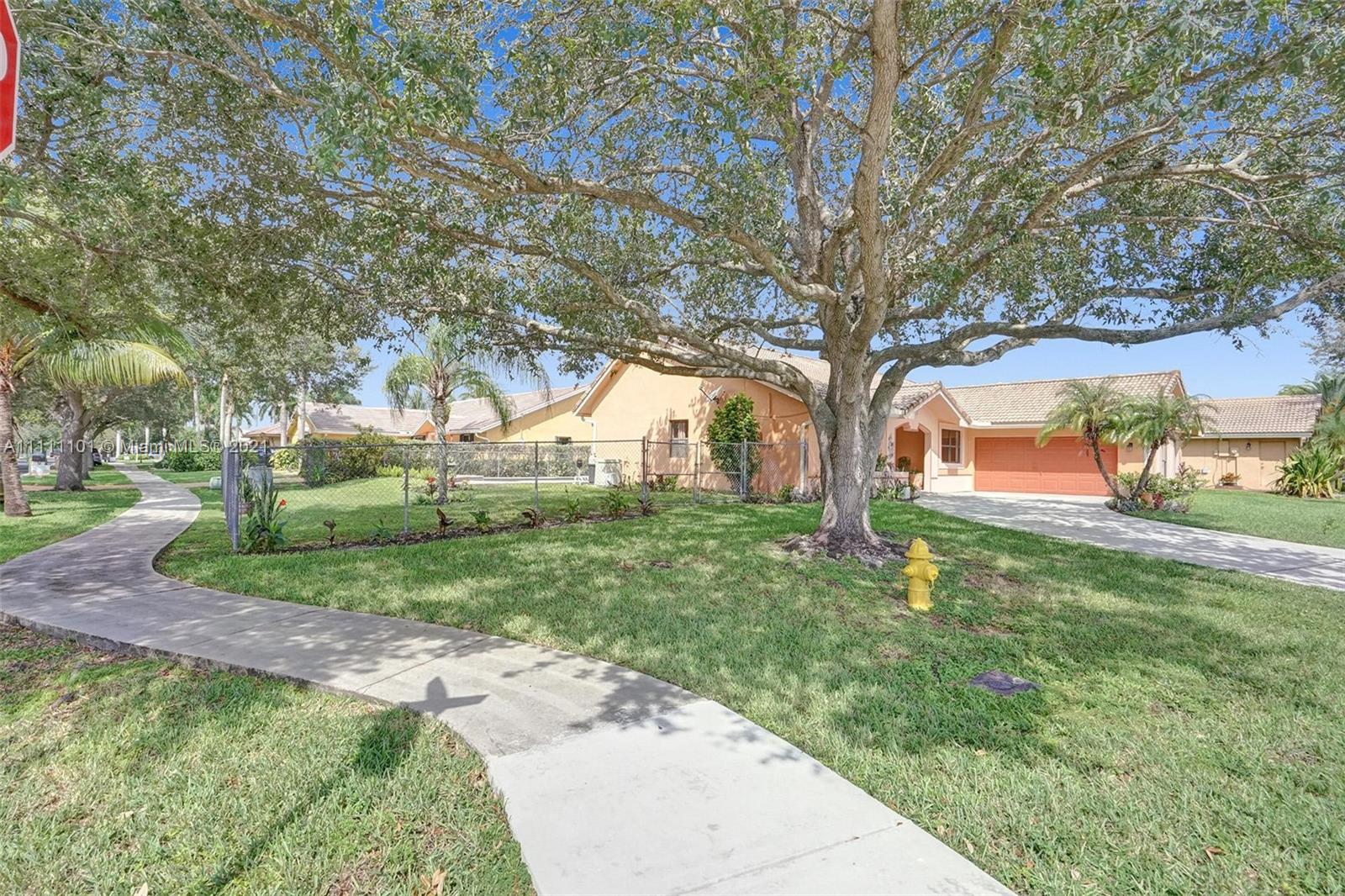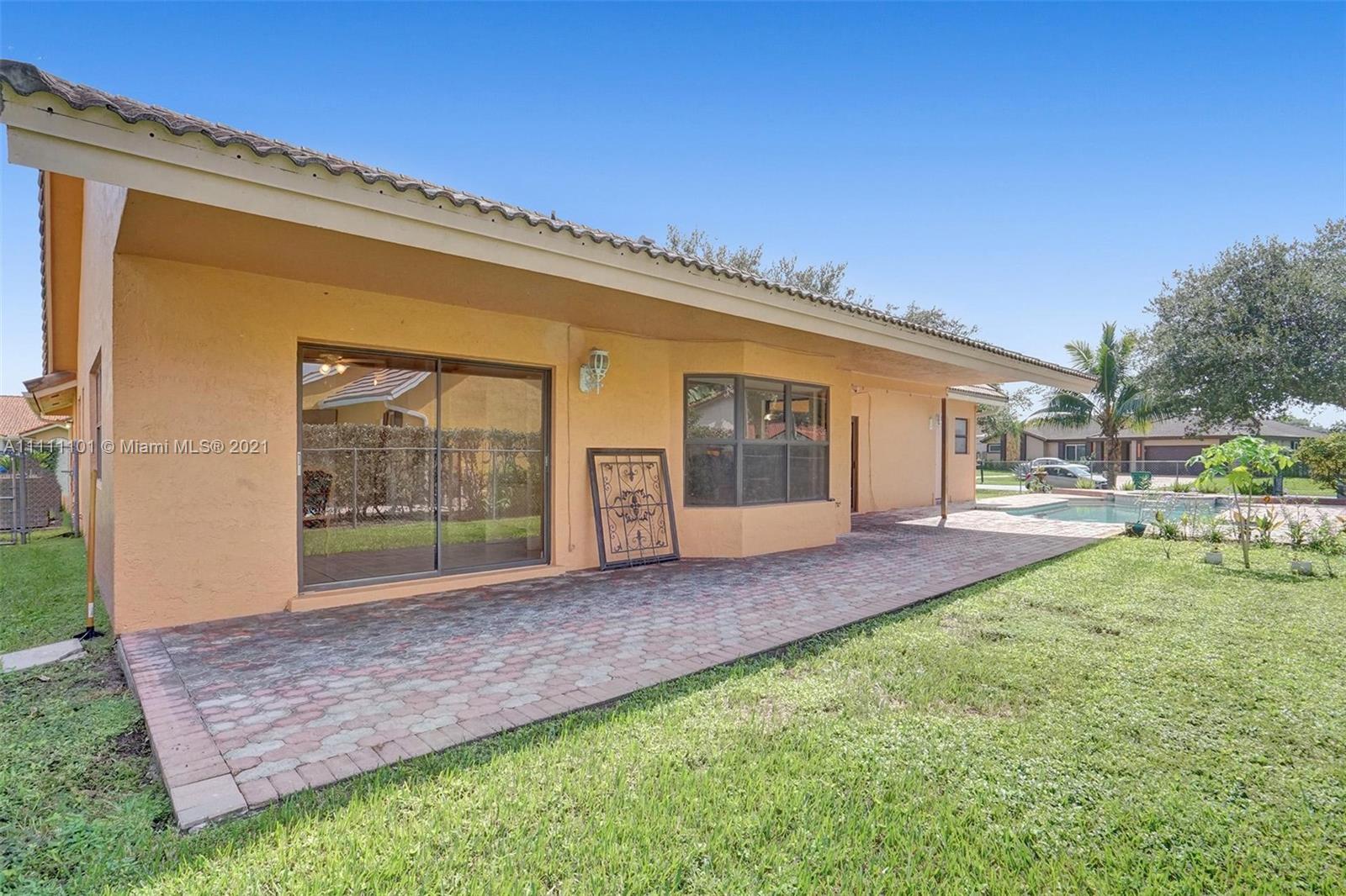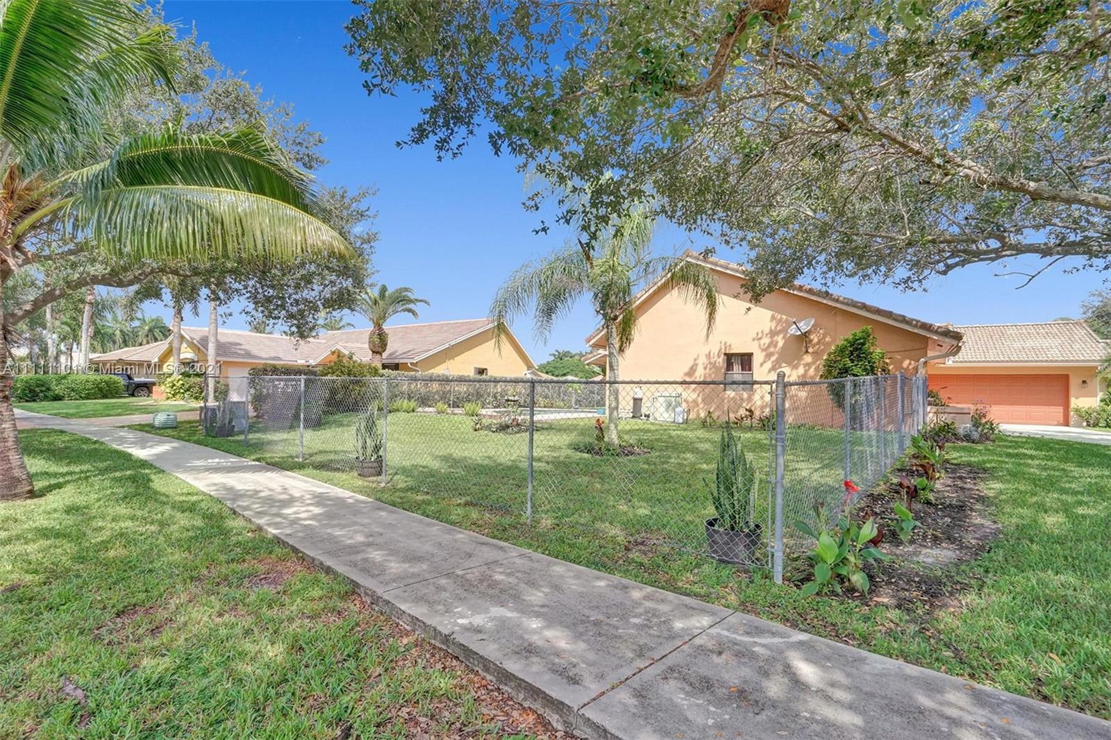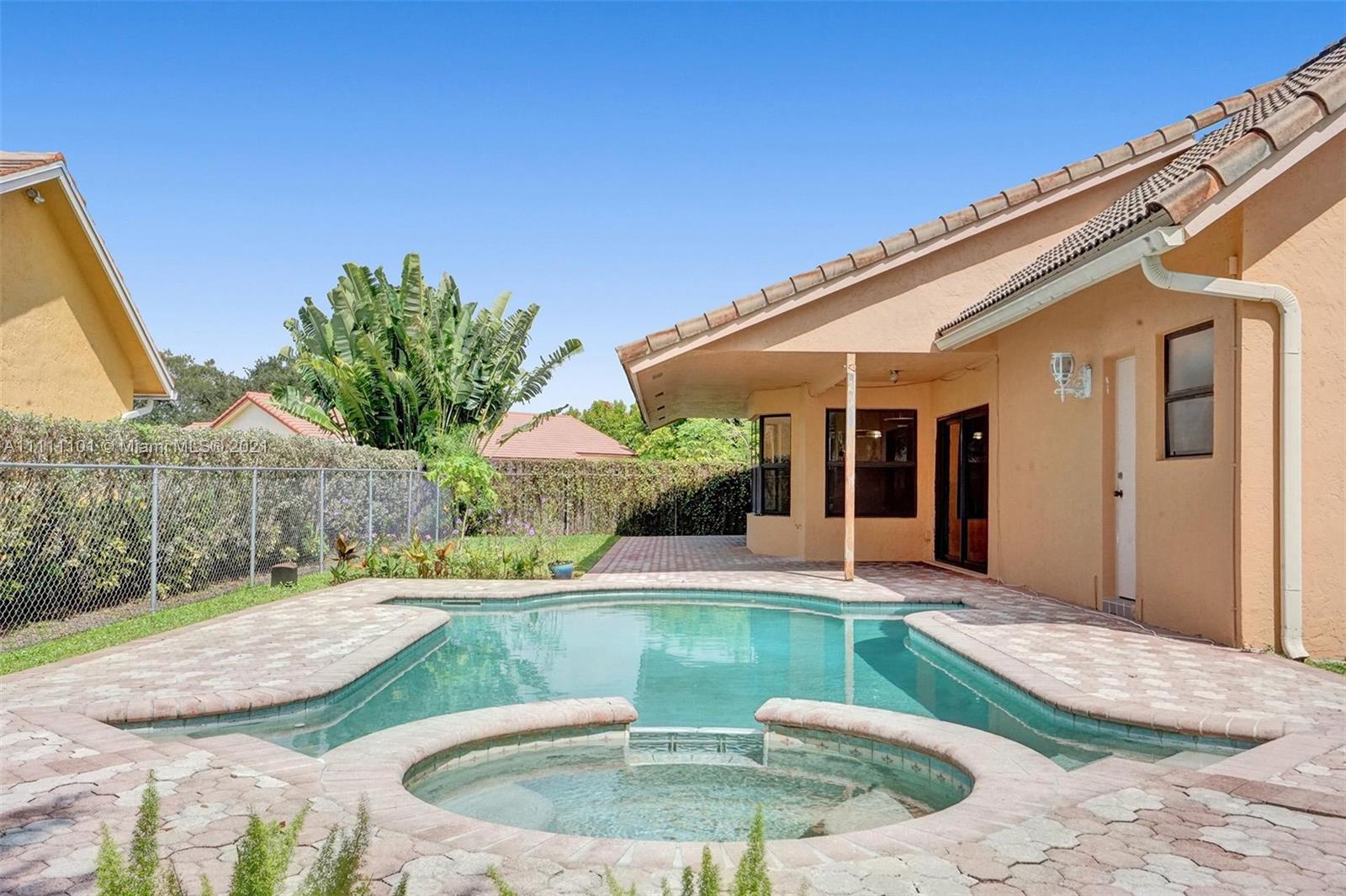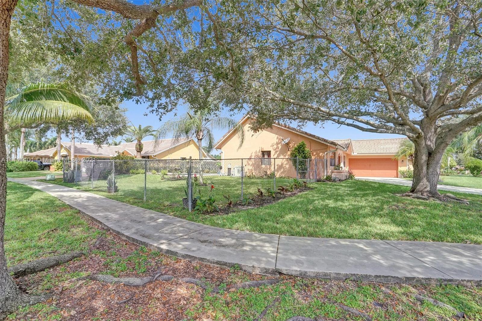 Stunning 3/2 single-family home on an oversized fenced-in corner lot in one of Davie's most desirable neighborhoods, Ivanhoe at Hawks Bluff. Feel at home pulling into your semi-circular driveway. This lovely home has the perfect layout for multi-family living with a split-bedroom floorplan and a separate in-law/guest suite. Fall in love with this bright freshly painted home. New carpet recently installed in all bedrooms. The main roof is from 2008, a new pool pump was recently installed, and the sliding door off the living room was recently upgraded to an impact door. Step outside to a beautiful backyard oasis. Entertain to your heart's delight on a covered patio leading out to an enormous backyard and refreshing pool and spa. Close to A-rated schools, shopping, dining, and I-75.