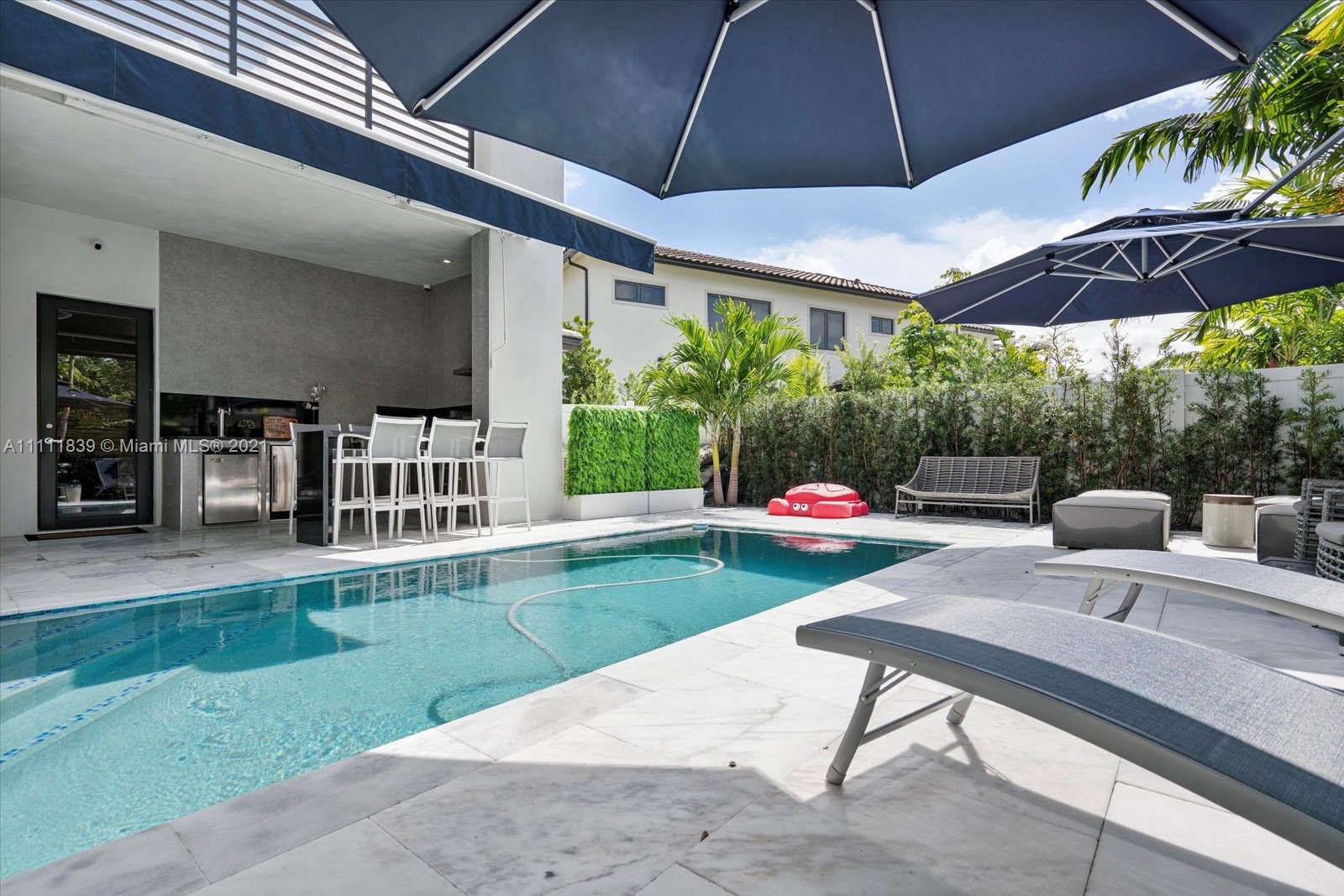 Exclusive spacious contemporary single-family home - in the heart of Downtown Doral. Corner lot with large backyard with heated pool surrounded by marble floor. Pool cover for kids safety. Electric Awning on top of the pool. Summer kitchen with Brazilian style grill, freezer and Kegarator beer dispenser. Garage transformed into an elegant office with custom cabinets- perfect for working from home! Custom made closets in every bedroom. Subzero and Wolf appliances, Italkraft imported cabinetry, Kohler faucets, gas cooktop, freestanding tub in master bathroom, high ceilings, modern lighting. State of art master bedroom with enormous bathroom and walk in closet. Electric blinds on lower floor and master bedroom. Serious inquiries only, proof of funds or mortgage pre-approval will be requested
