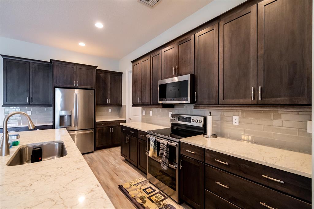 Beautiful open floor plan 6 bedroom, 4 full bathroom, 2 car garage home in the new gated community of Coral Lago. Master bedroom, located on the first floor, features a tray ceiling, with ensuite bathroom and a large walk-in closet. Additional guest bedroom located on first floor, off of entry way. Four bedrooms upstairs, each having ample closet space, that share a large loft area. Home has been freshly painted throughout in neutral colors. Kitchen has SS appliances, a large quartz kitchen island and countertops, with plenty of cabinet storage and a large pantry. Relaxing outdoor space, with extra pavers included if you want to extend the back patio area. Save yourself the hassle of new construction, this home was built in 2019, ready for you to bring your things and make it your own!