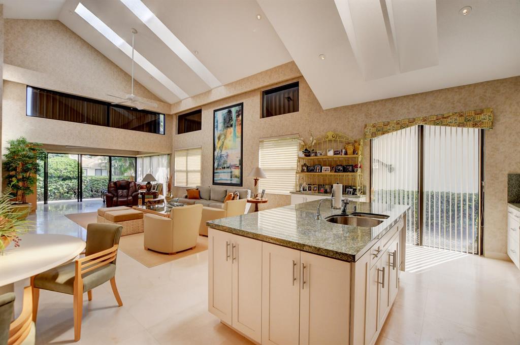 Rarely available single family home in move in condition features an open floor plan. The kitchen, dining room, living room and enclosed porch make a spacious living area. Limestone floors, marble and granite countertops, stainless steel appliances, and electric shades that cover the high windows are some of the extras.Decorator contemporary furnishings enhance the home. and are included in the sale. There is a brick patio that over looks the lake. Available for season! Enjoy all that Boca West Country Club has to offer!