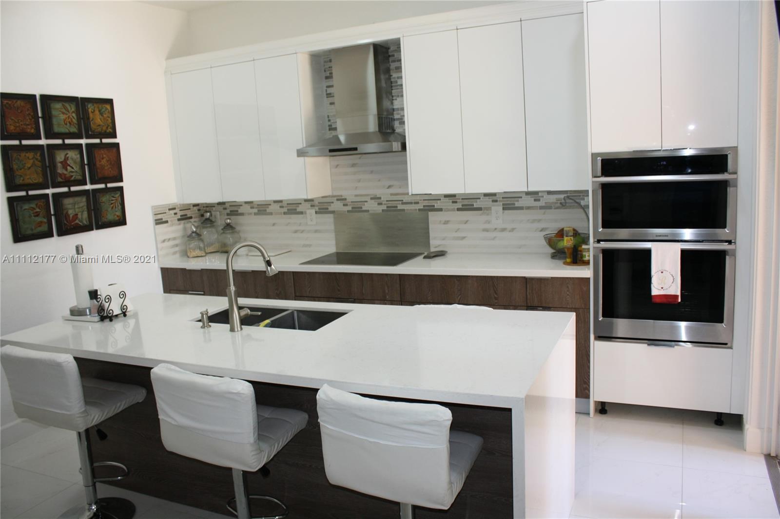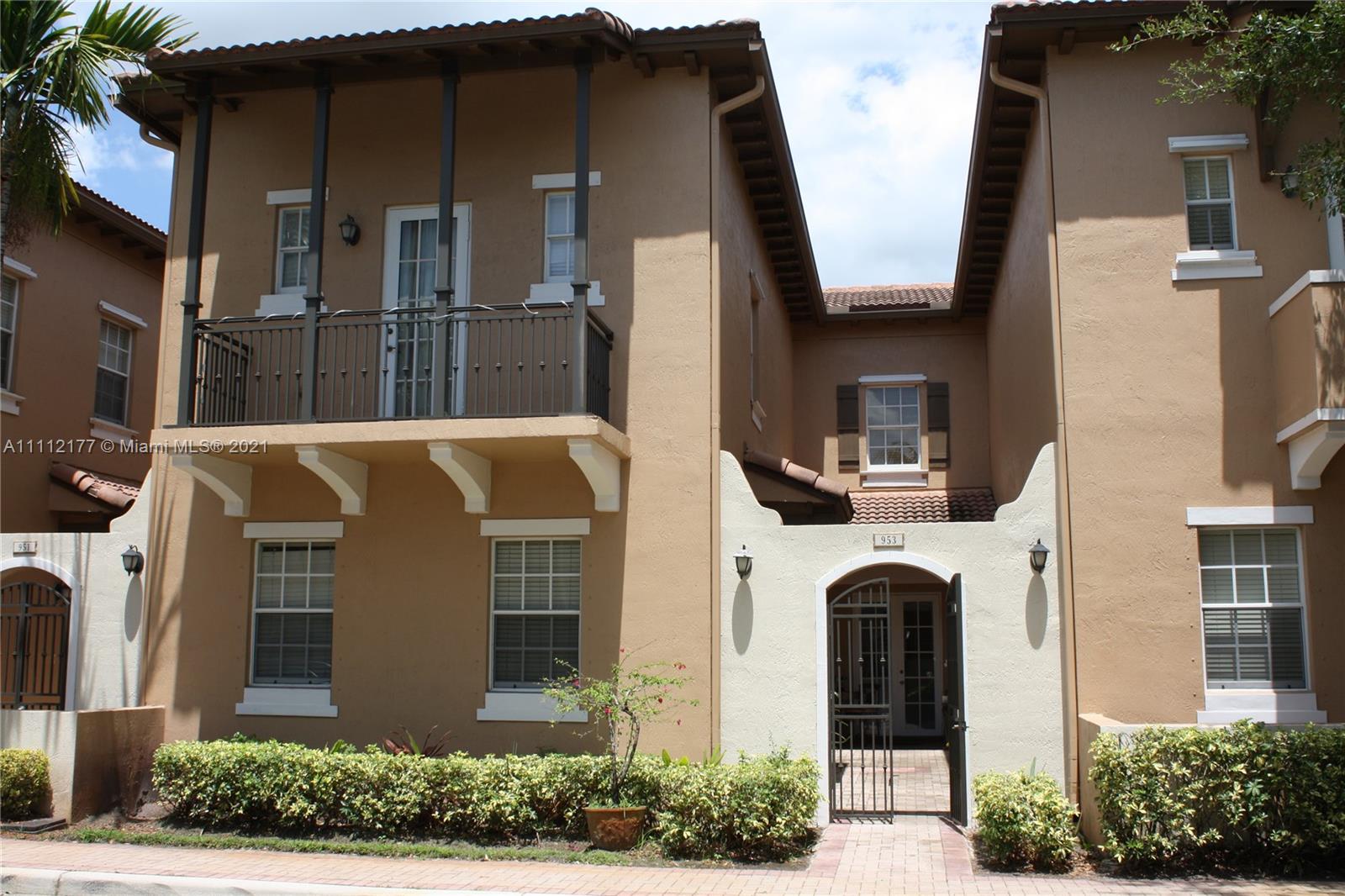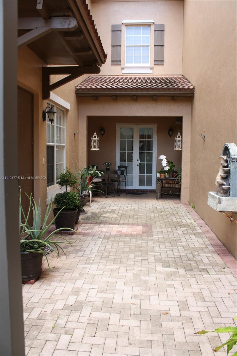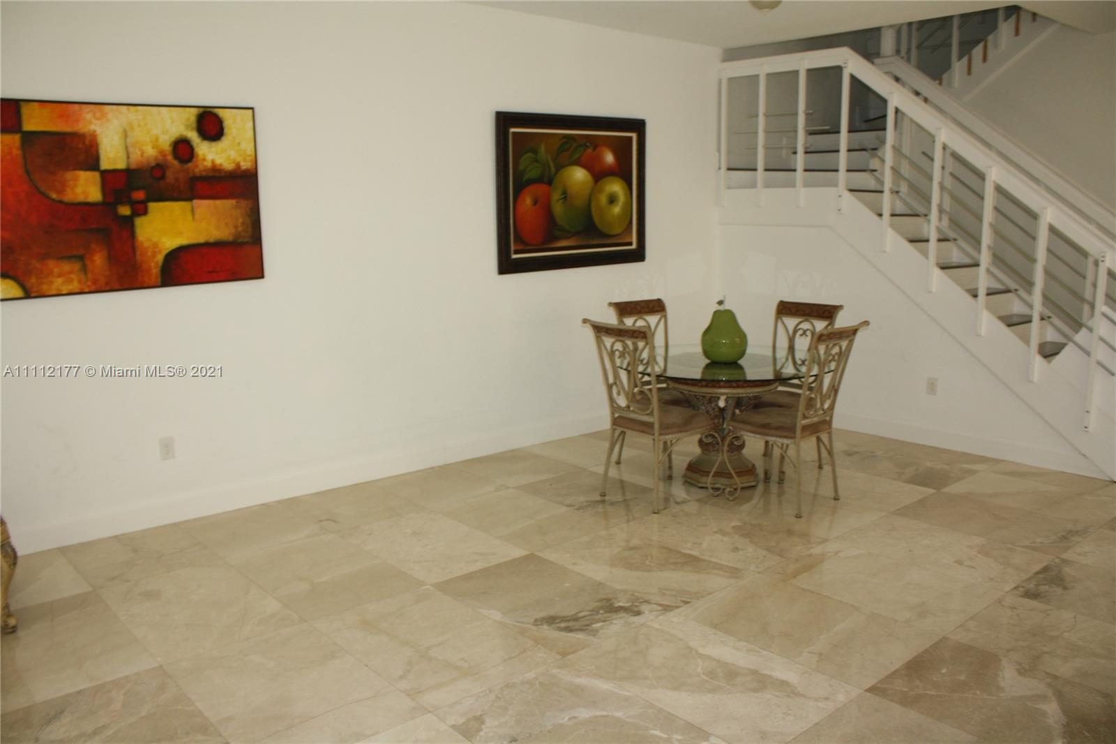 Beautiful townhouse has 4 bedrooms (loft was converted to a fourth bedroom) and 3 bathrooms. It is fully remodeled. Comes with marble flooring on the first floor and wood flooring on the second floor. Kitchen has been fully upgraded. Master bedroom has his and hers walk-in closet and nice walkout balcony. Also comes with one full bathroom and bedroom on the first floor with its private entrance. This is a gated community with 24 hour manned security and has a resort style clubhouse.