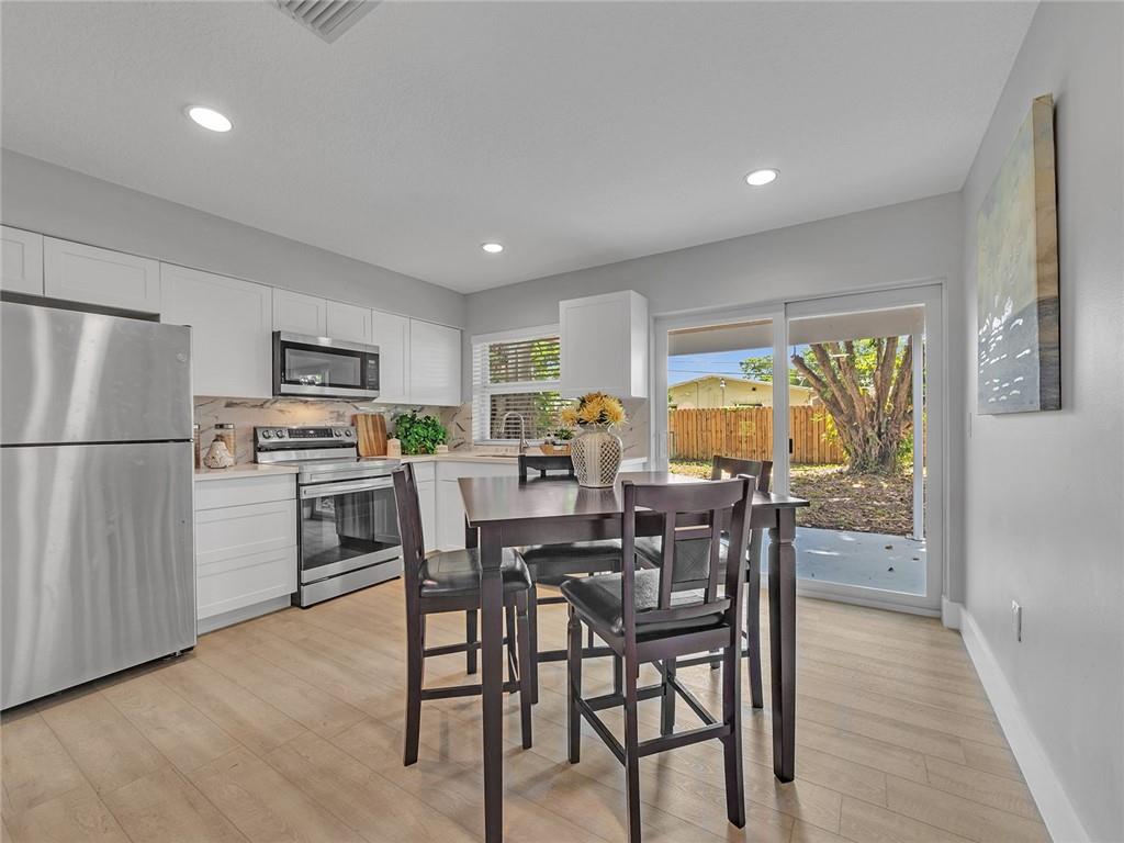 This unbelievable home has everything on every wish list, and it is ready for your first time homebuyer, or couples starting a family or even downsizing. Perfect 2 bedroom, 1 bathroom, 1 car garage home with too many upgrades to fit in the remarks. You have to see in person. Besides the obvious gorgeous water resistant vinyl flooring throughout, the amazing kitchen with soft closing white wood shaker cabinets, quartz countertop, new stainless steel appliances, beautiful updated bathroom and new fixtures all around, the big ticket items are also included, with new roof, impact windows and doors, a/c, water heater, updated electrical and plumbing (pvc), and much much more. This one will fly.