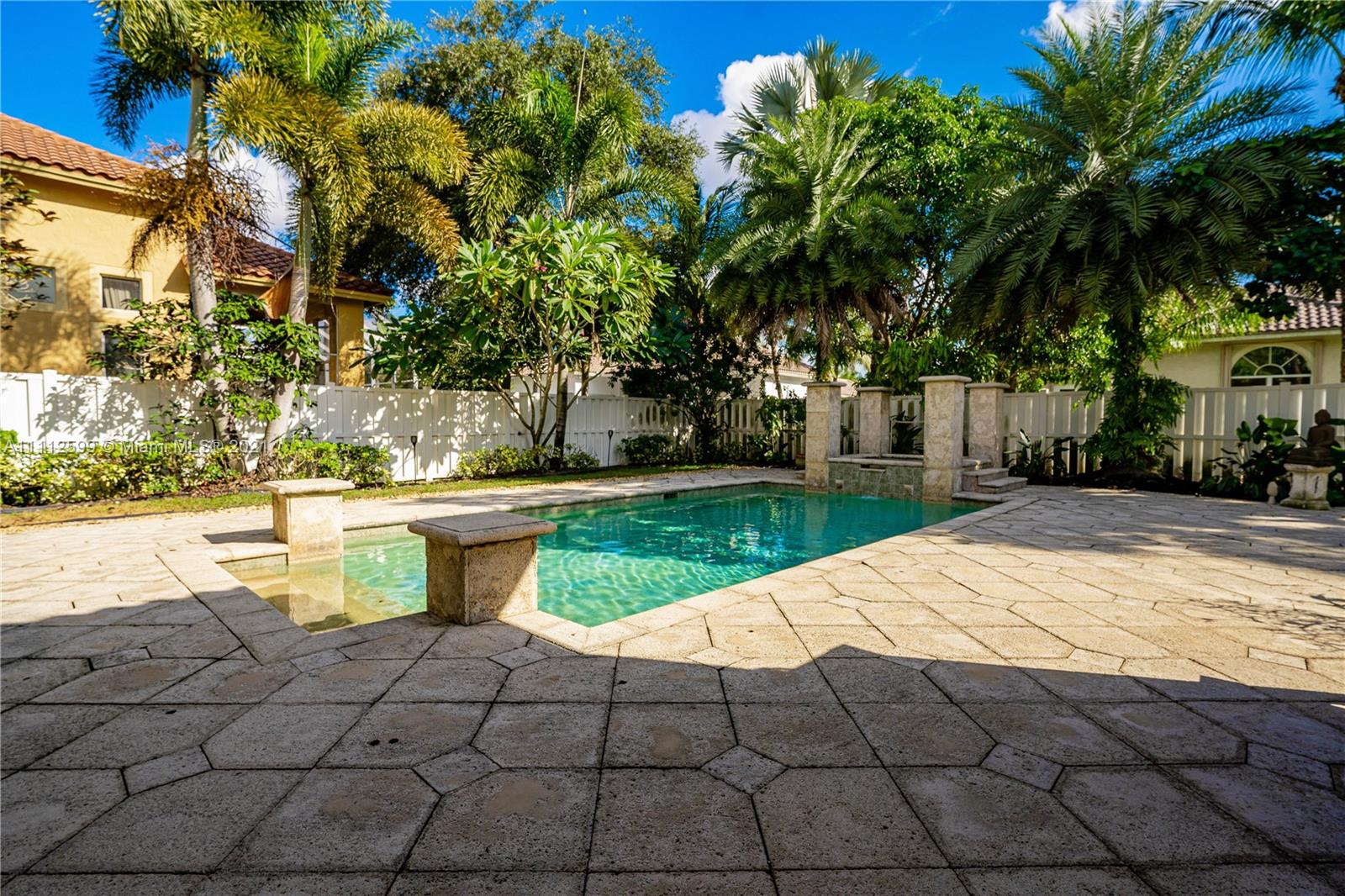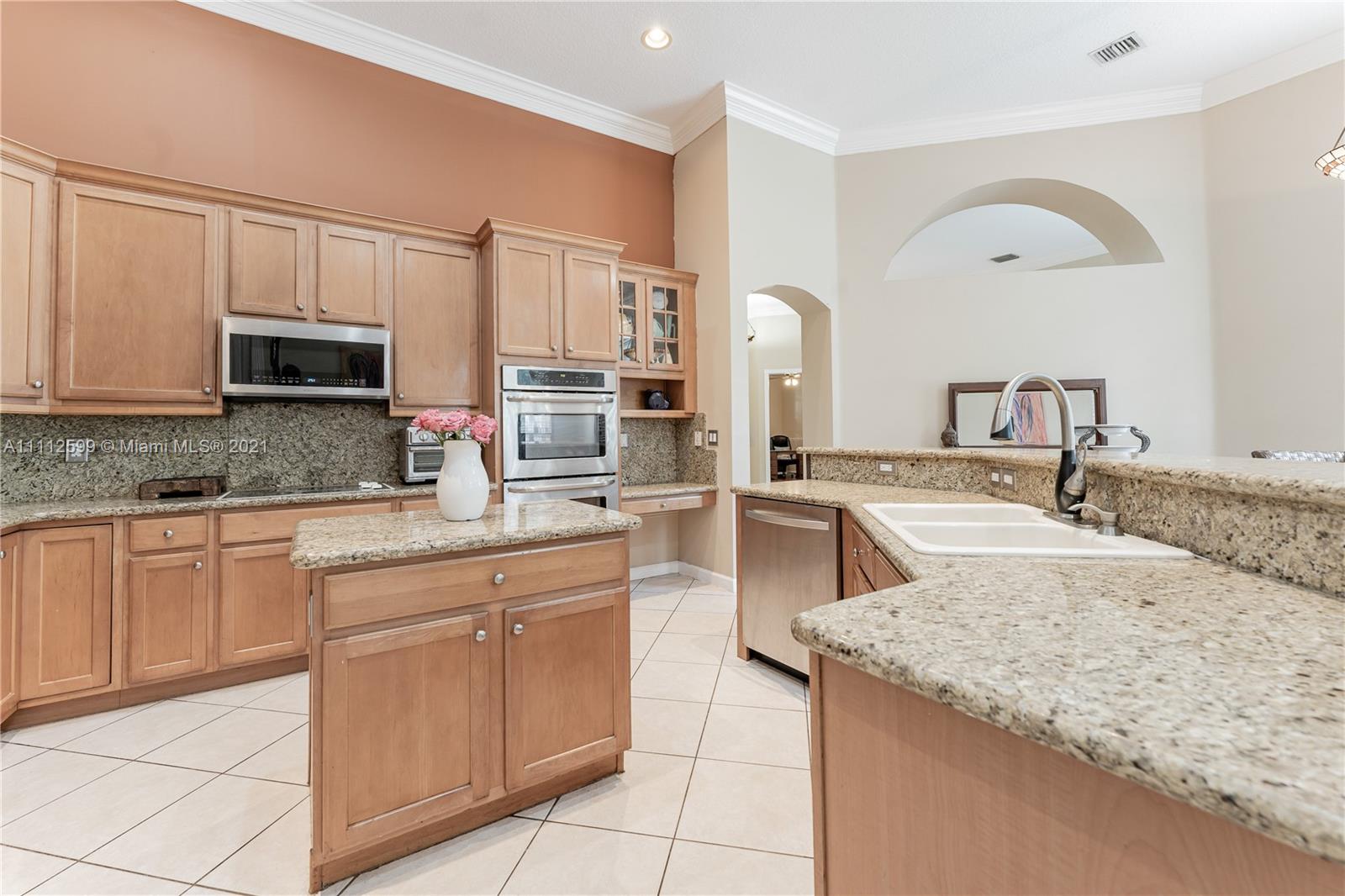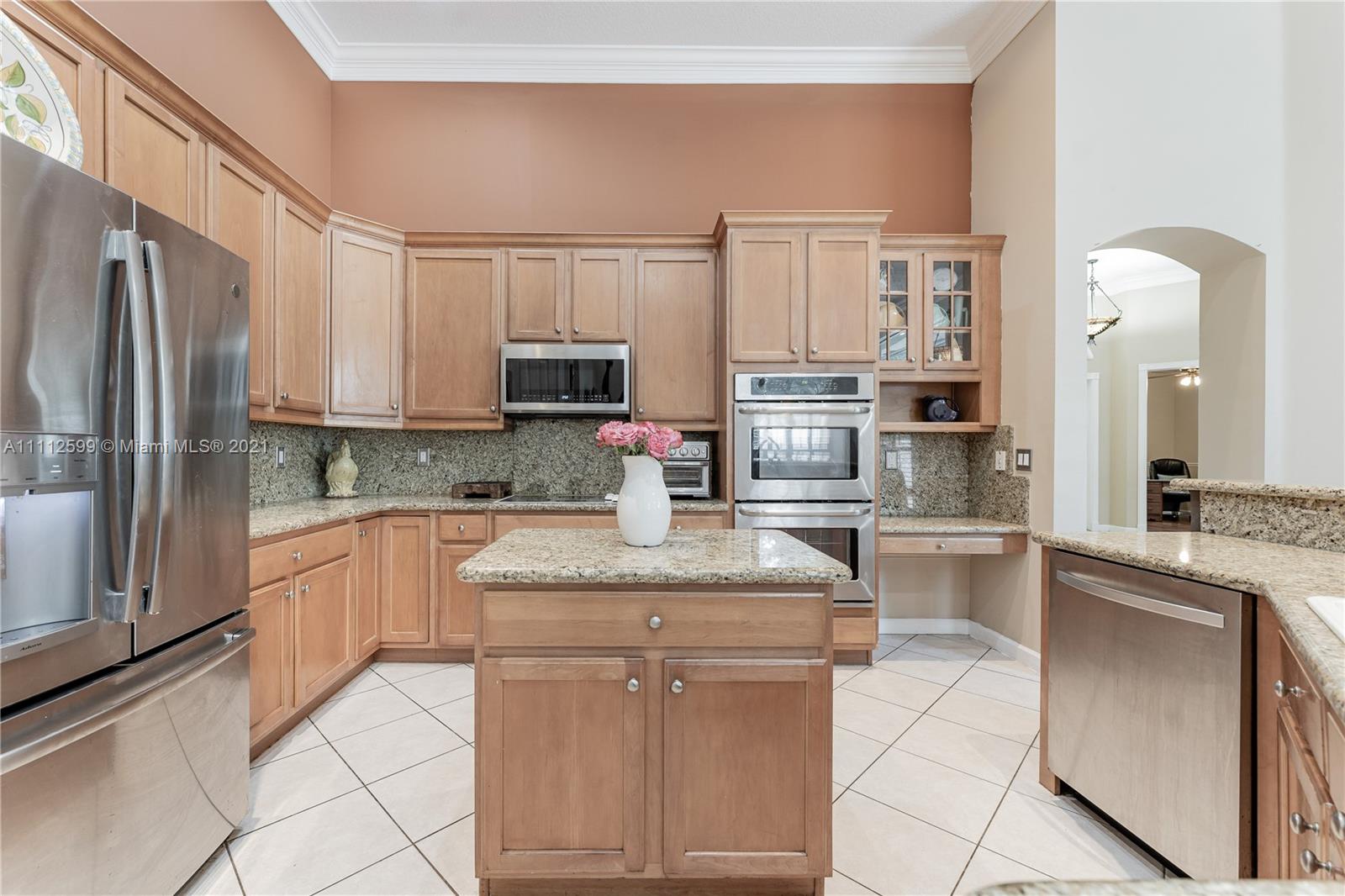 BEAUTIFUL LENNOX MODEL! THIS TRIPLE SPLIT ONE STORY POOL HOME HAS 5 BEDROOMS 3 BATHROOMS & 3 CAR GARAGE. NICELY UPDATED KITCHEN WITH GRANITE COUNTERTOPS, STAINLESS APPLIANCES & CUSTOM WOOD CABINETS. THIS HOME FEATURES TILE FLOORING THROUGHT MOST OF THE HOME AND WOOD FLOORING IN 3 OF THE 5 BEDROOMS. IT HAS HIGH CEILINGS, LARGE LIVING, DINING AND FAMILY ROOMS. BEAUTIFUL WOOD SHUTTER STYLE BLINDS IN THE MAIN AREAS. MASTER BEDROOM HAS HIS & HERS WALK-IN CLOSETS, SPACIOUS MASTER BATHROOM WITH ROMAN TUB. THE HOME HAS LARGE FENCED YARD, LARGE PATIO AND ACCORDION SHUTTERS! HOA FEE INCLUDES INTERNET, CABLE, ALARM, 24 HR SECURITY. THE COMMUNITY HAS CLUBHOUSE, GYM, HEATED POOL, TENNIS AND BASKETBALL COURTS. A+SCHOOL DISTRICT.